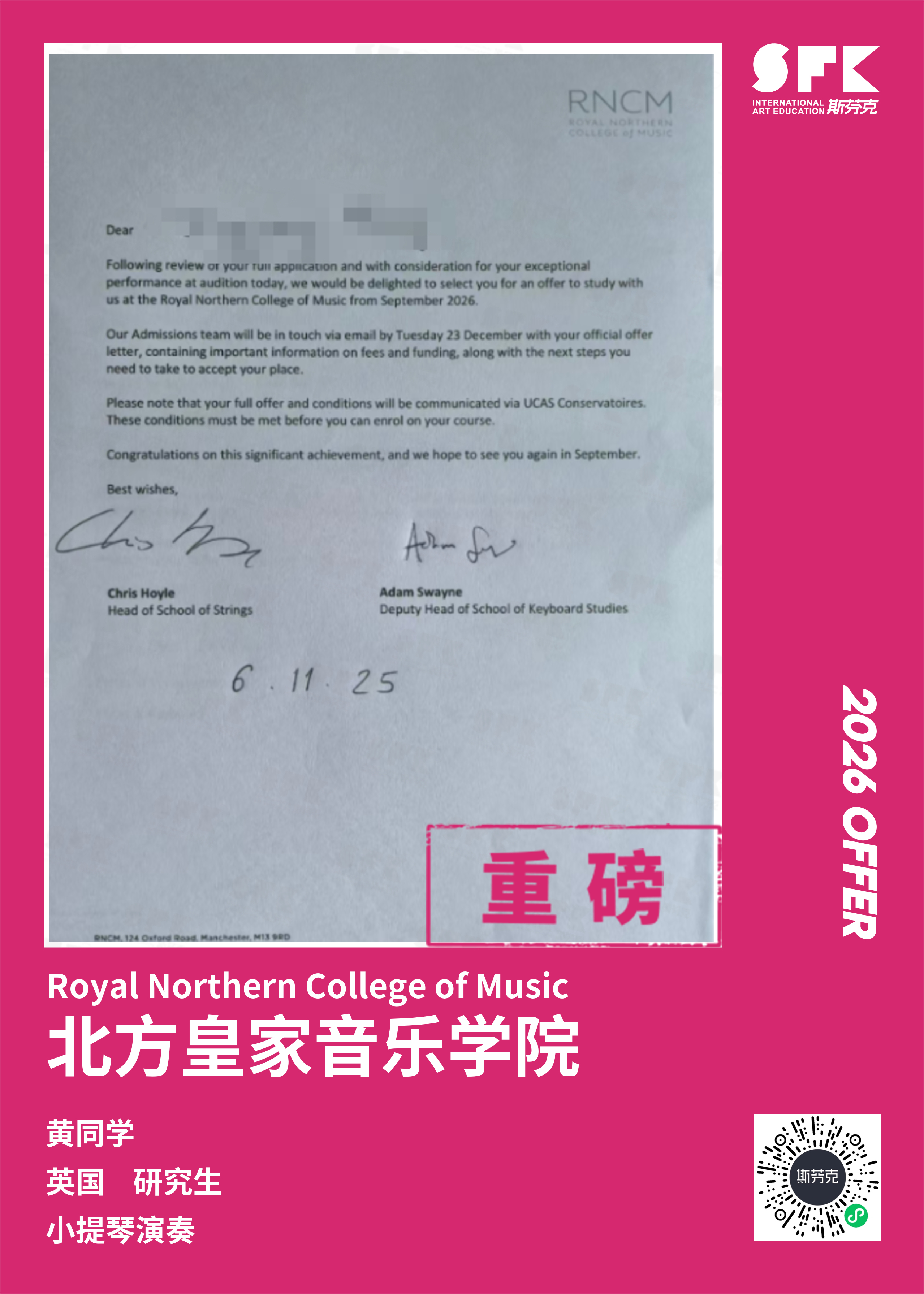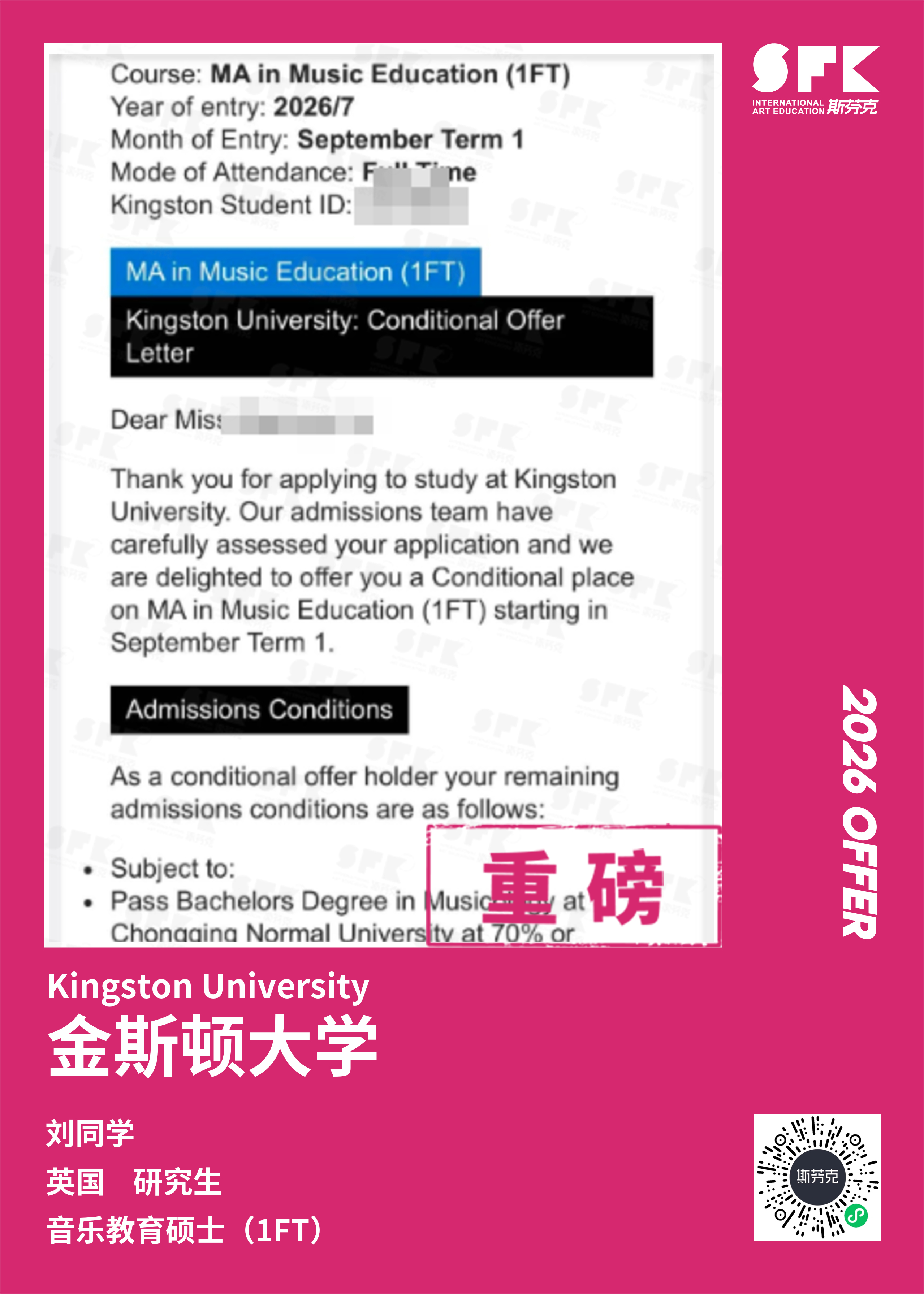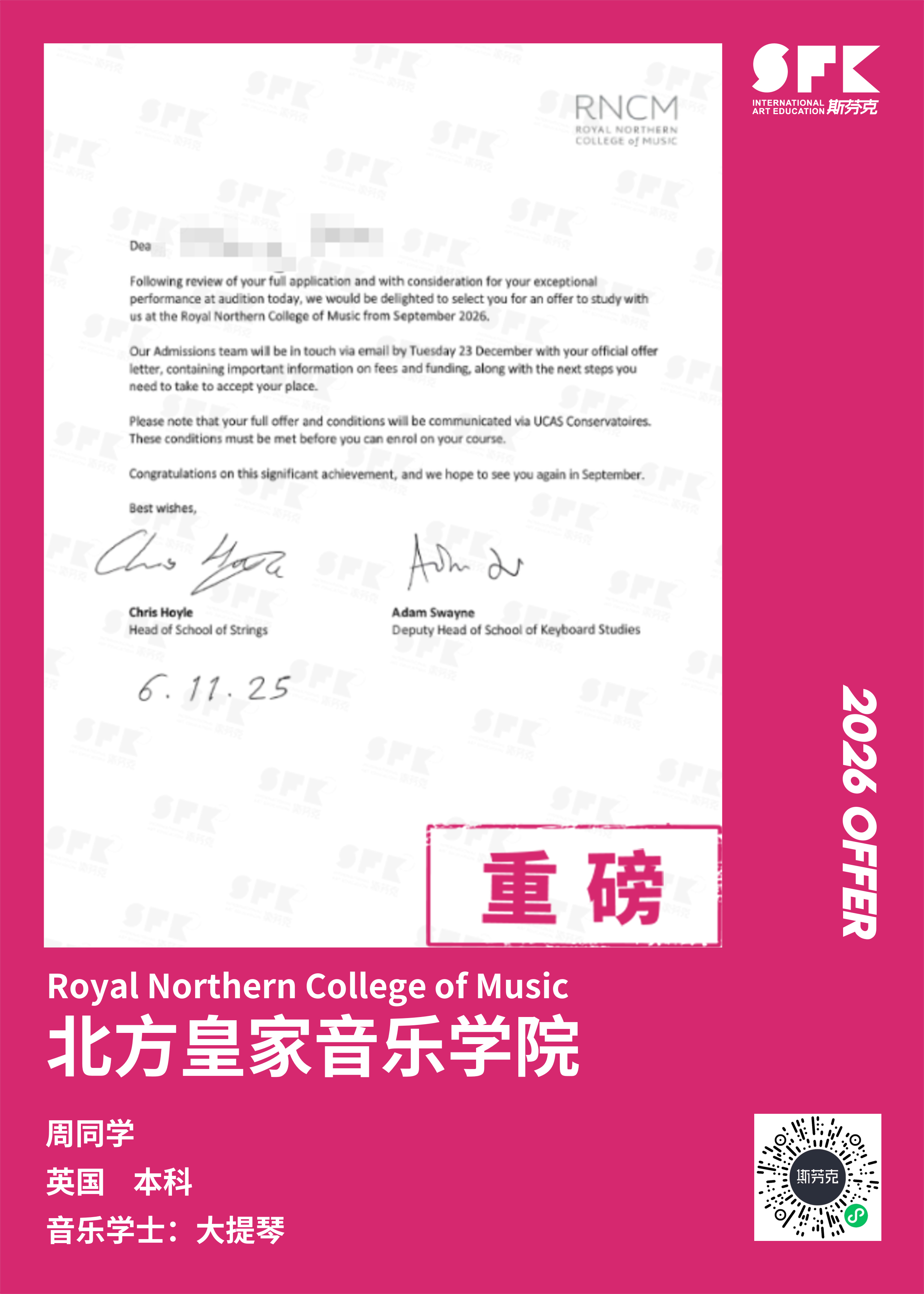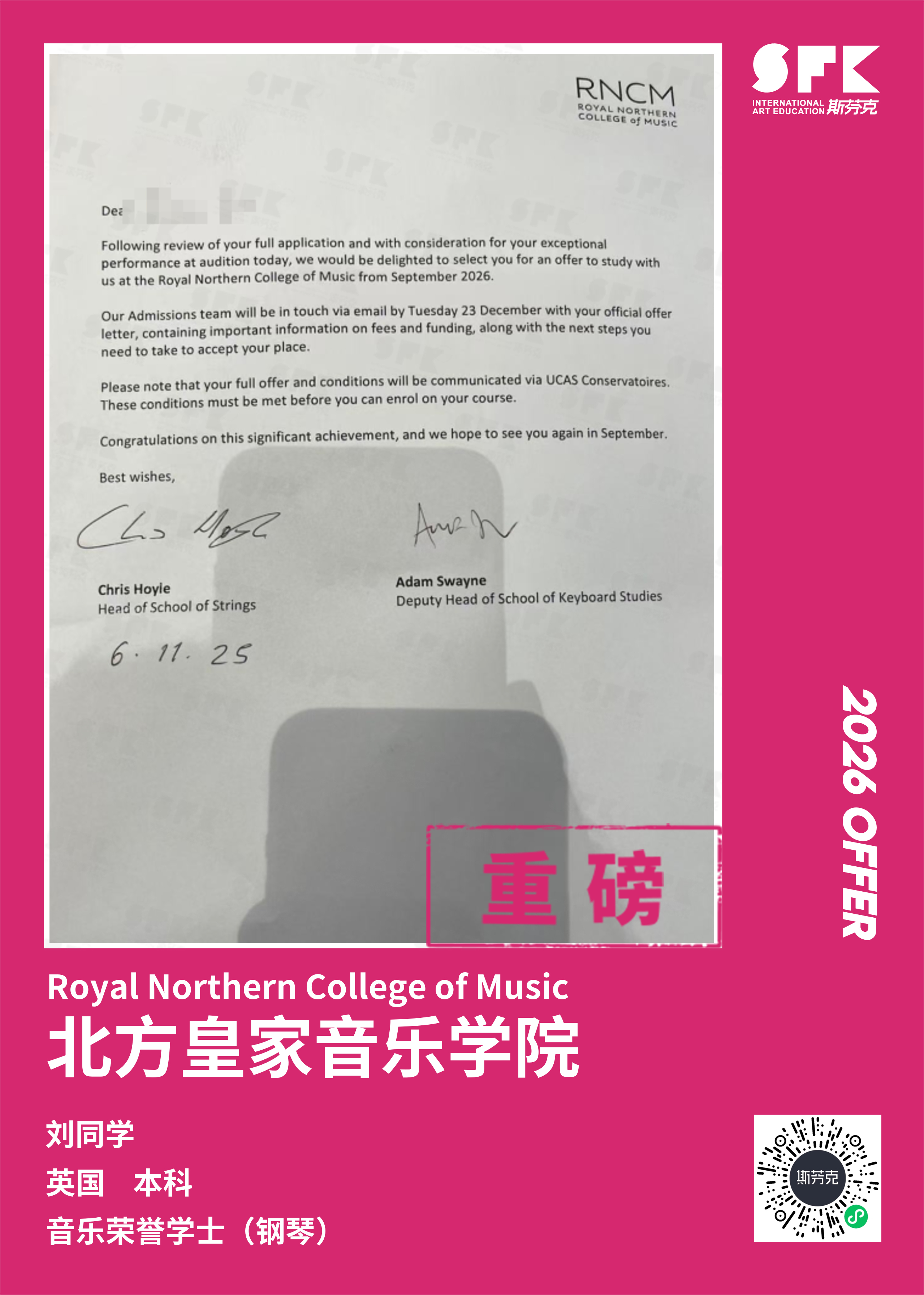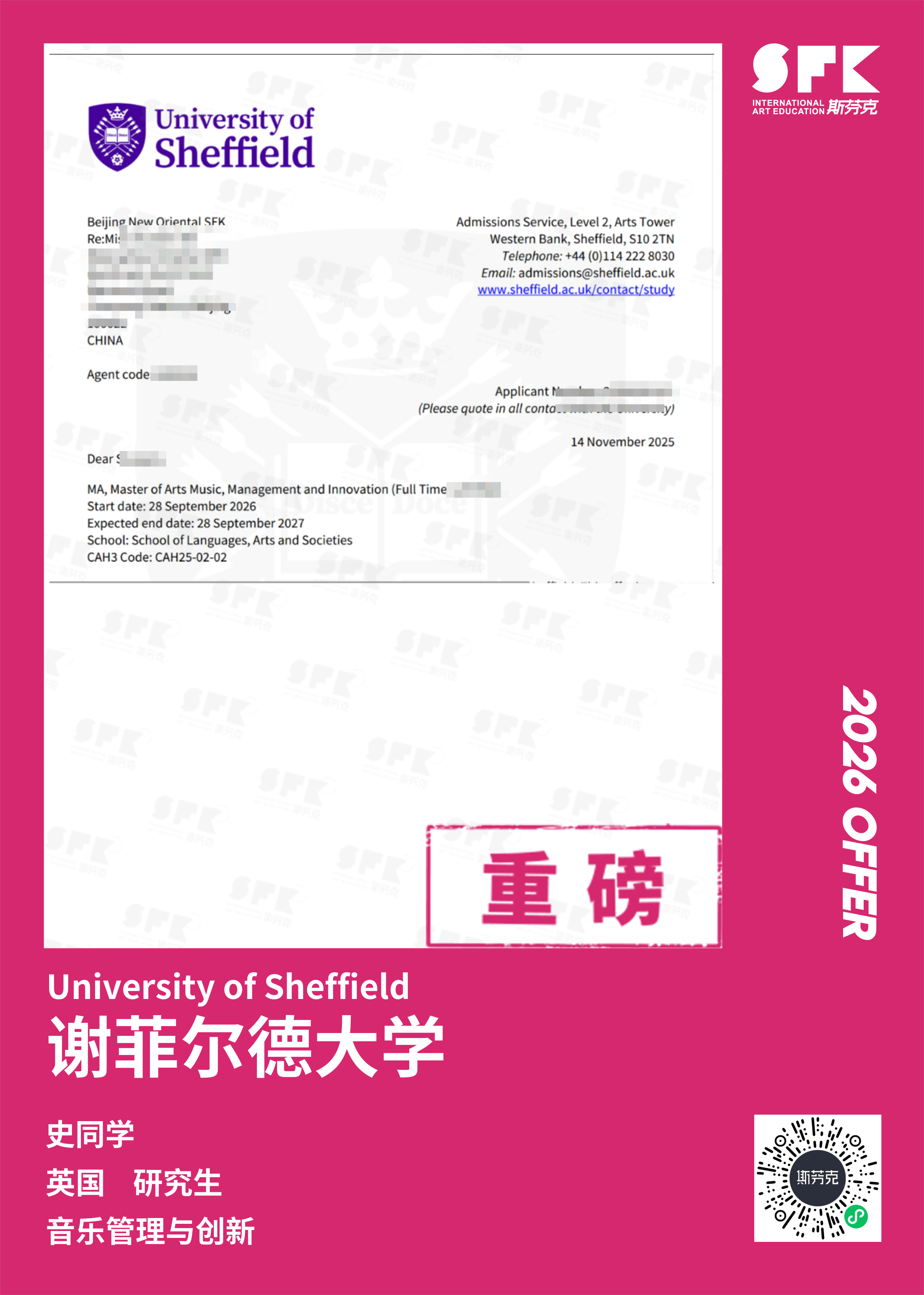 斯芬克音乐已帮助学员获得越来越多的国外音乐院校Offer