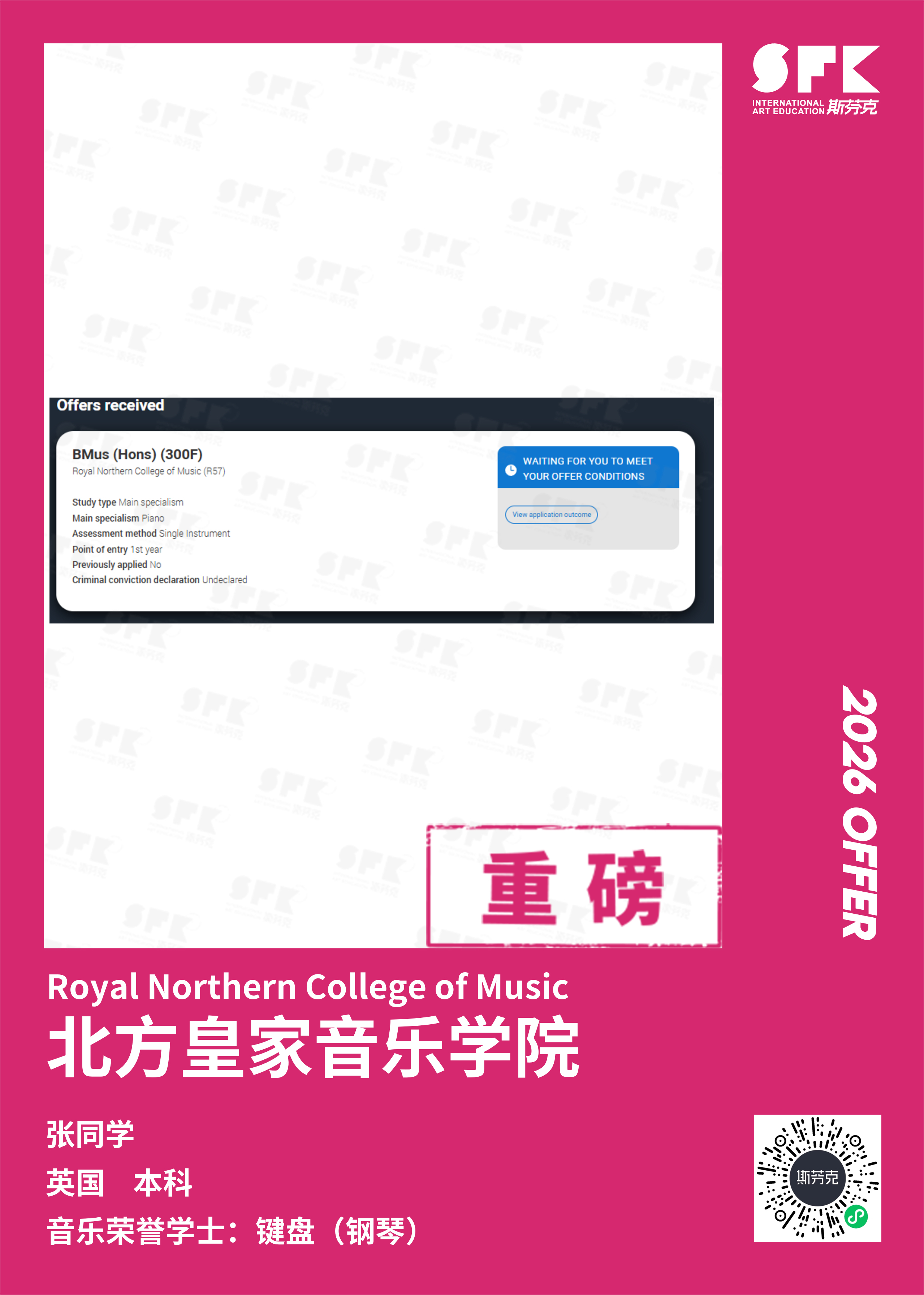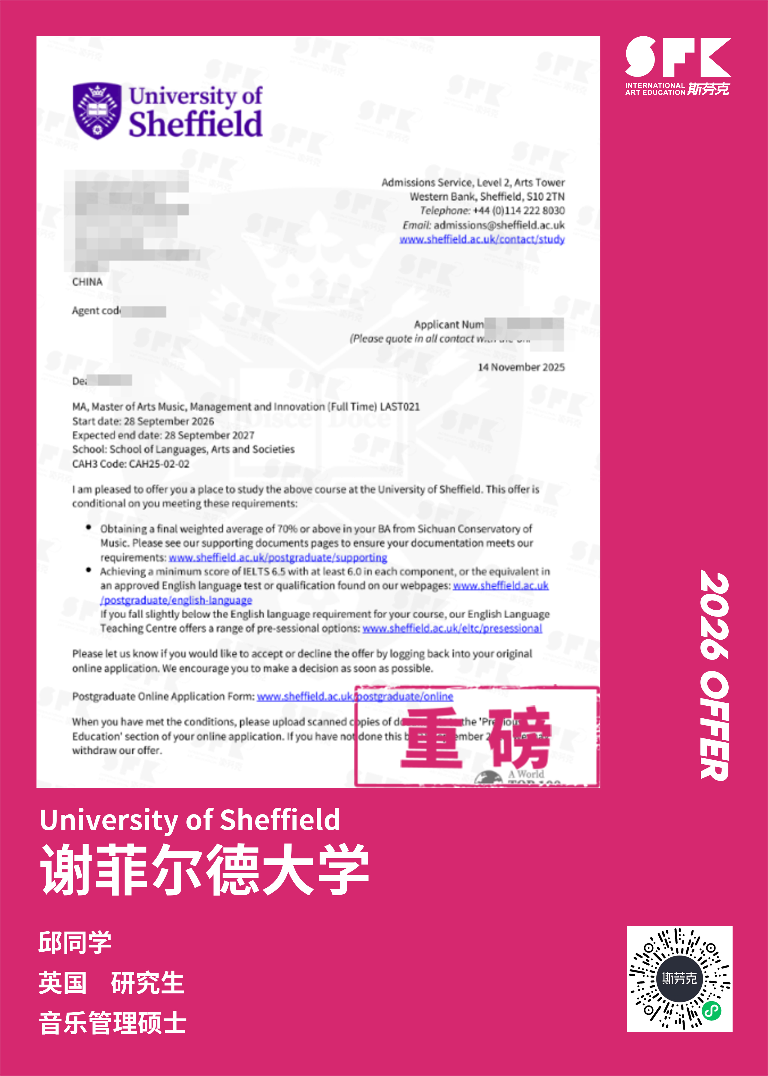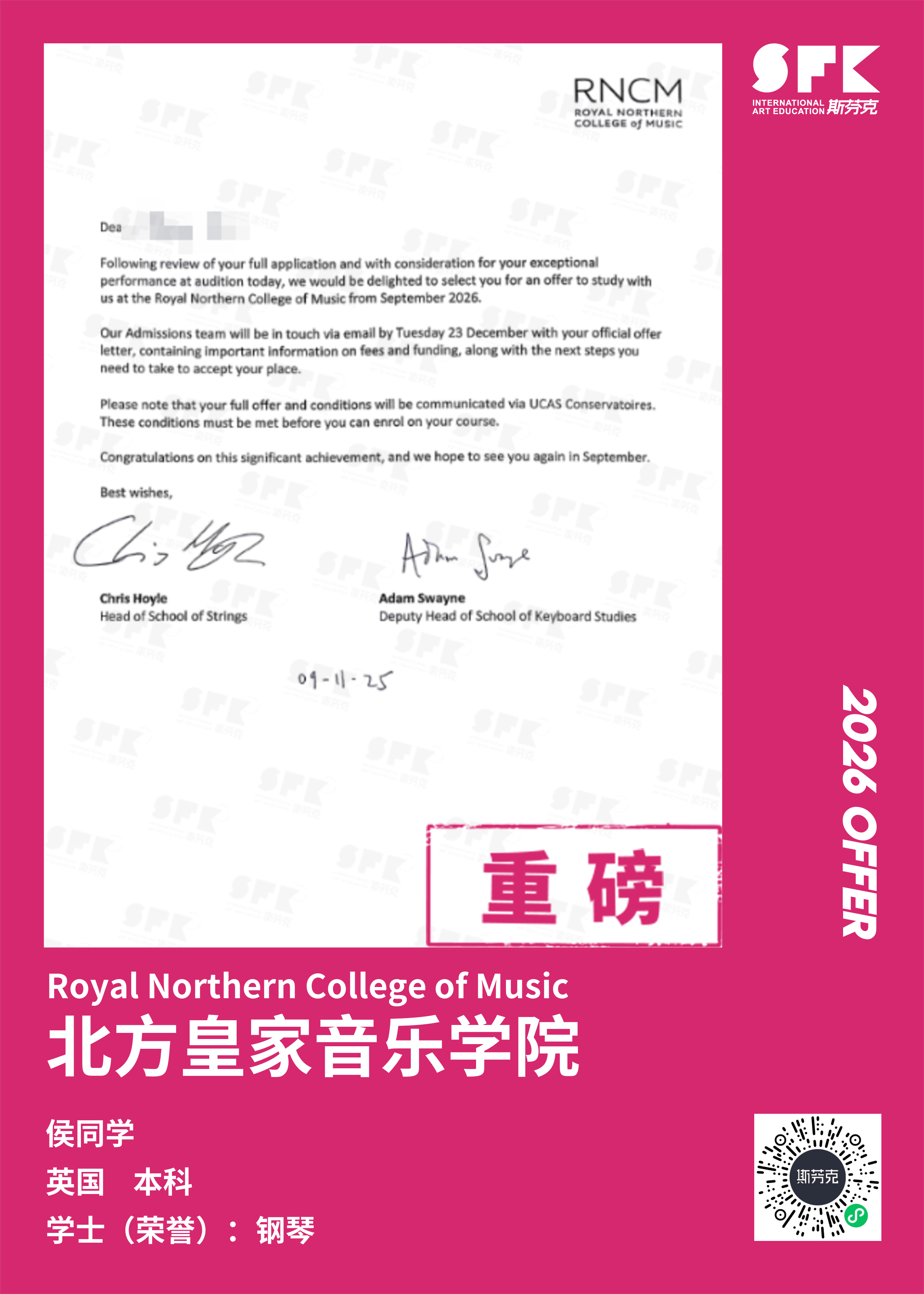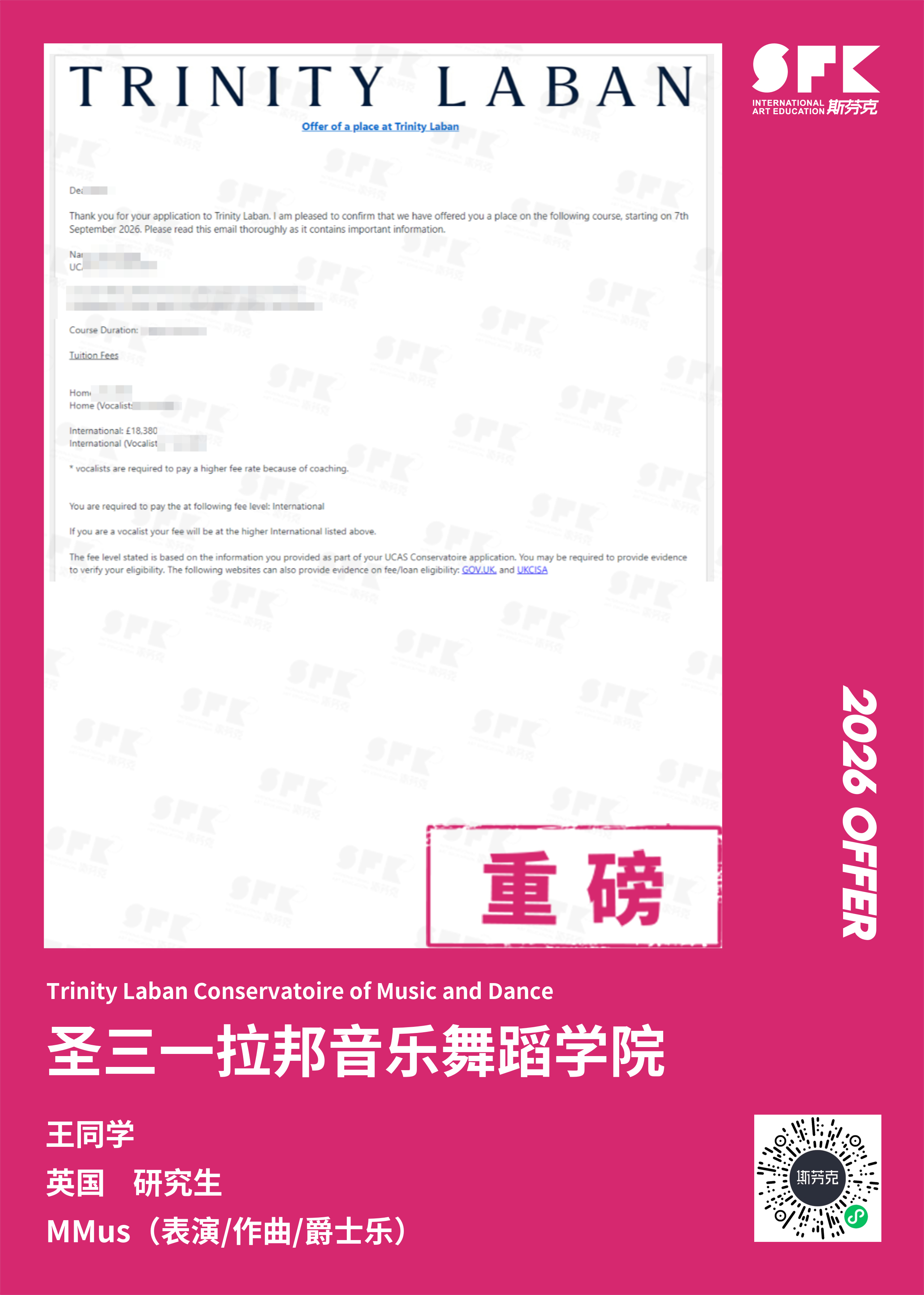 斯芬克音乐已帮助学员获得越来越多的国外音乐院校Offer