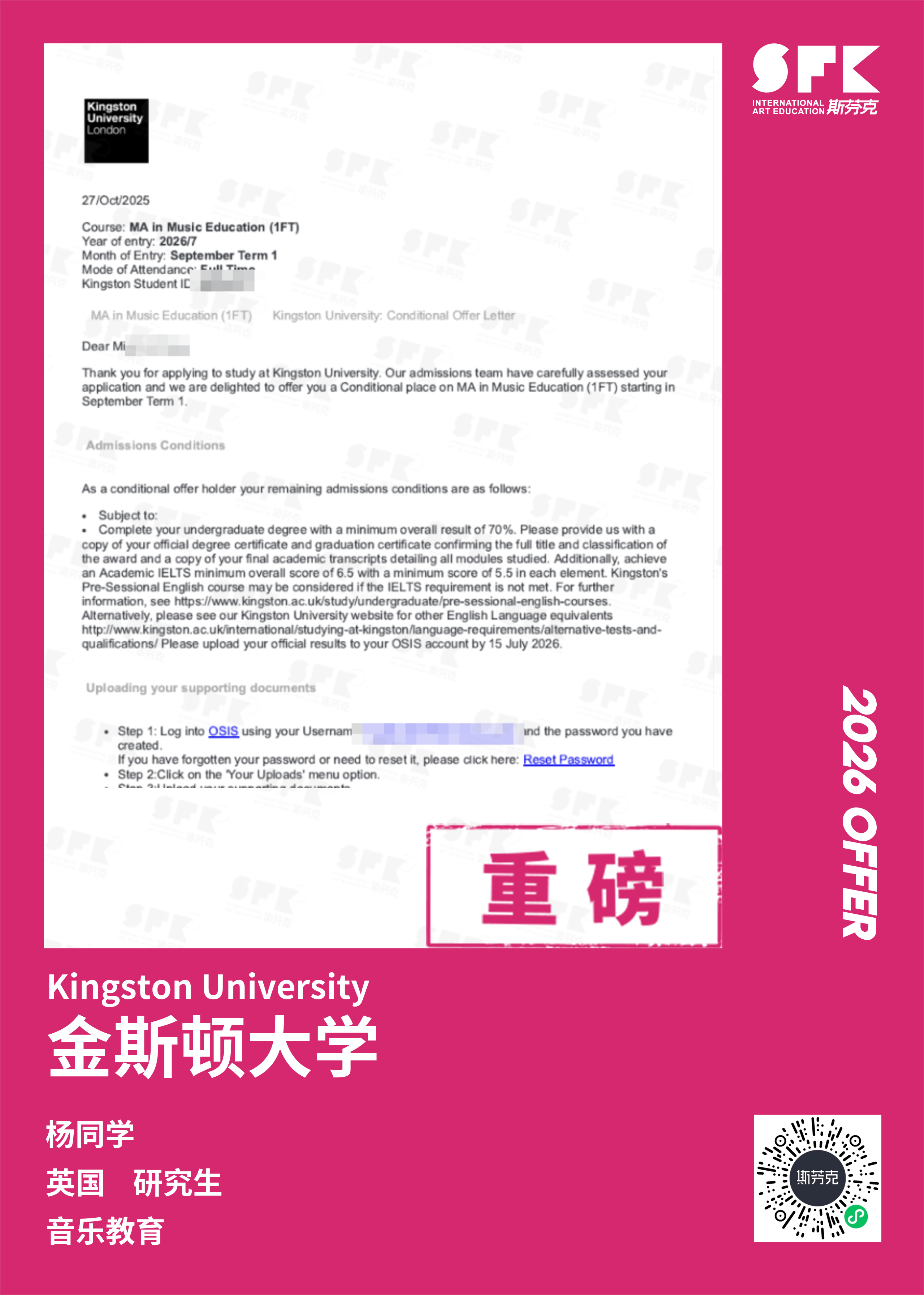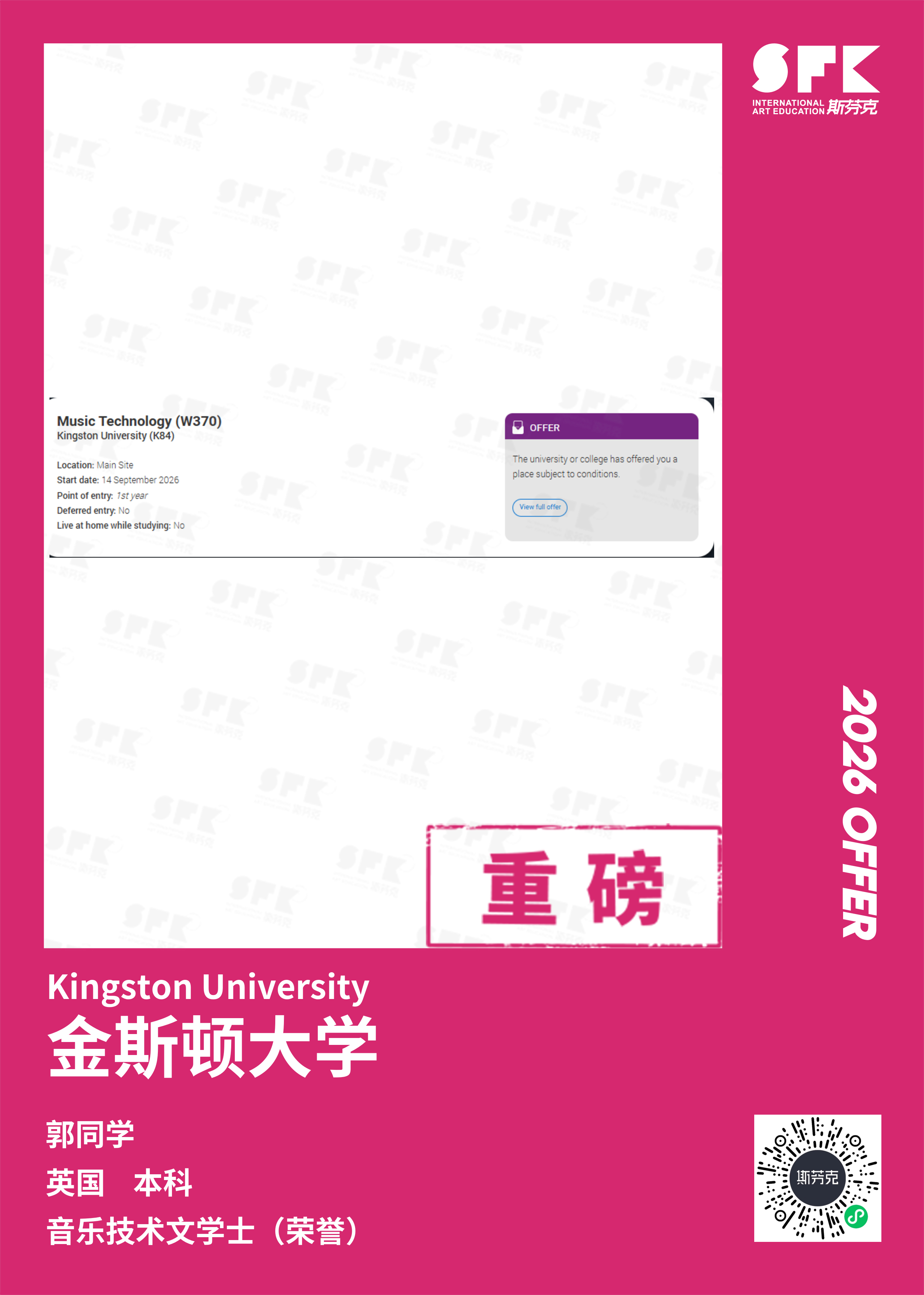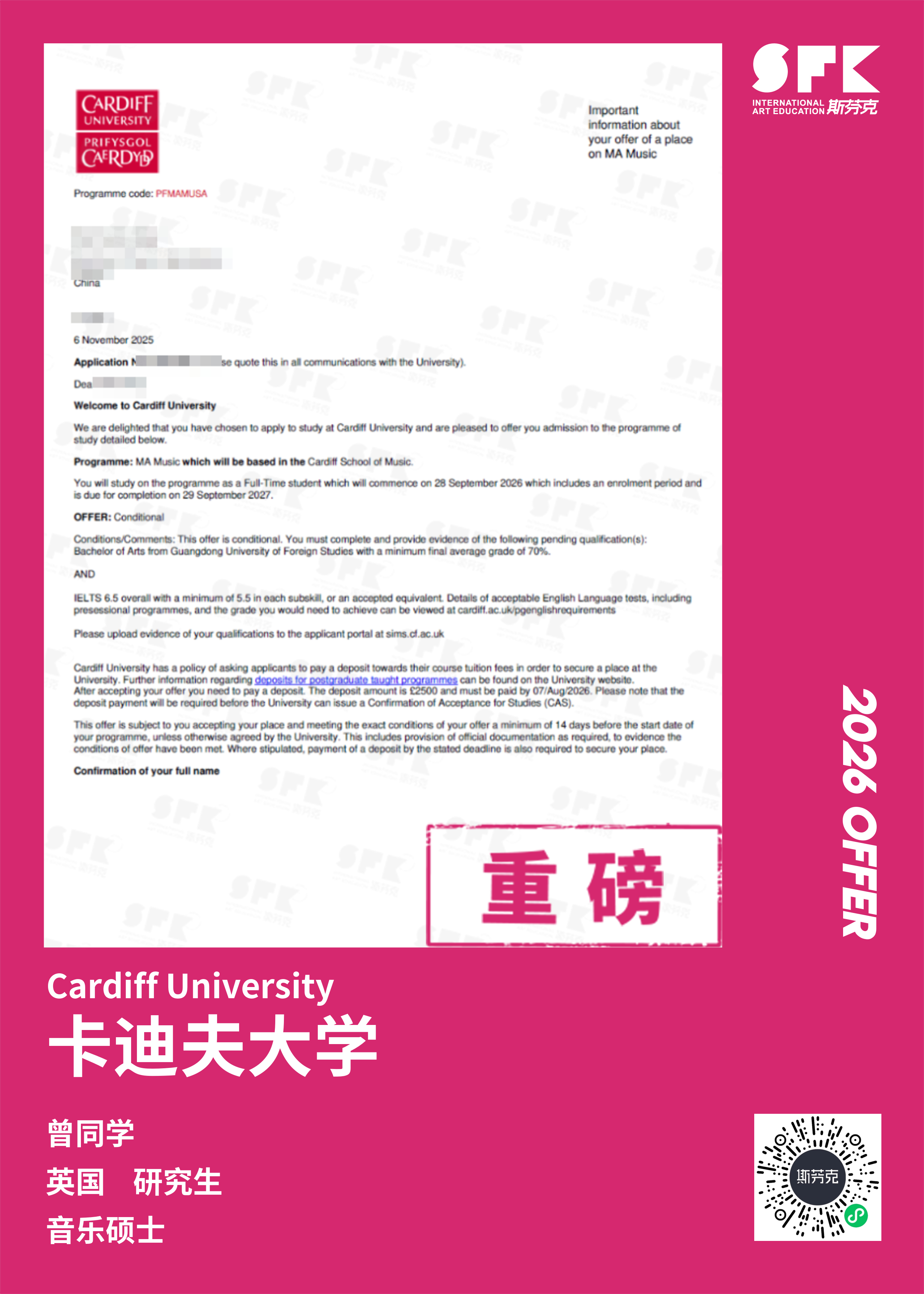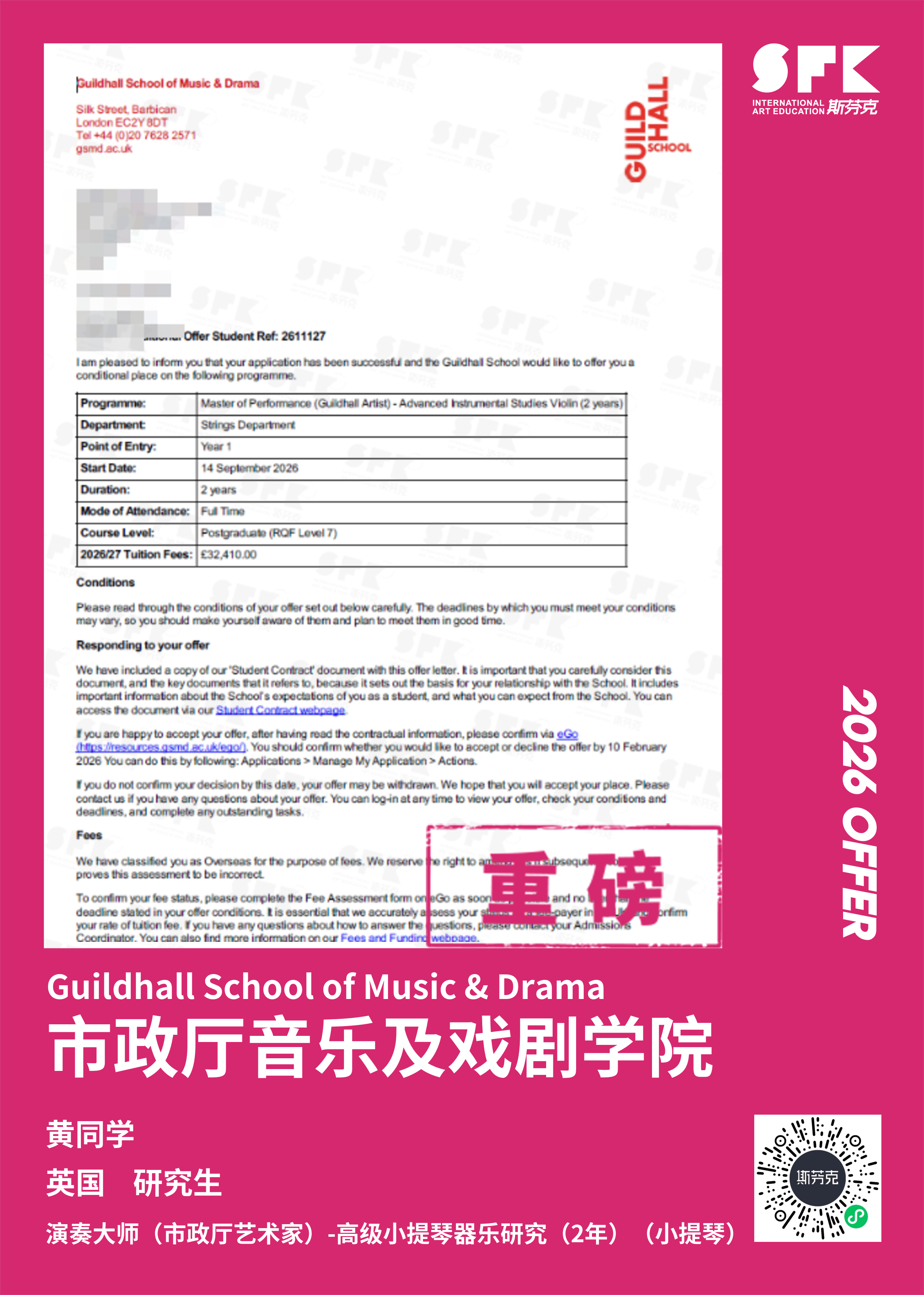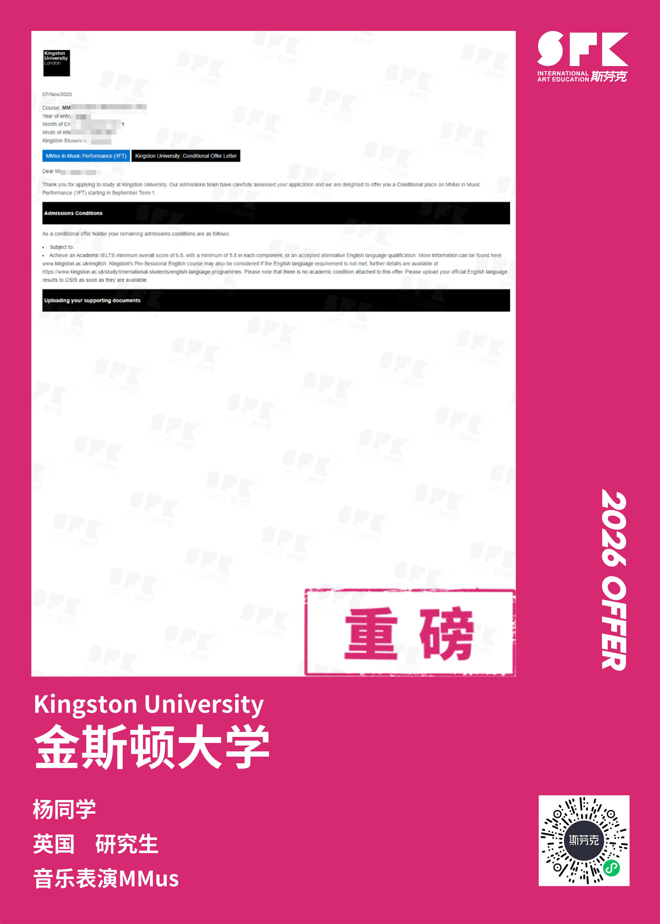 斯芬克音乐已帮助学员获得越来越多的国外音乐院校Offer