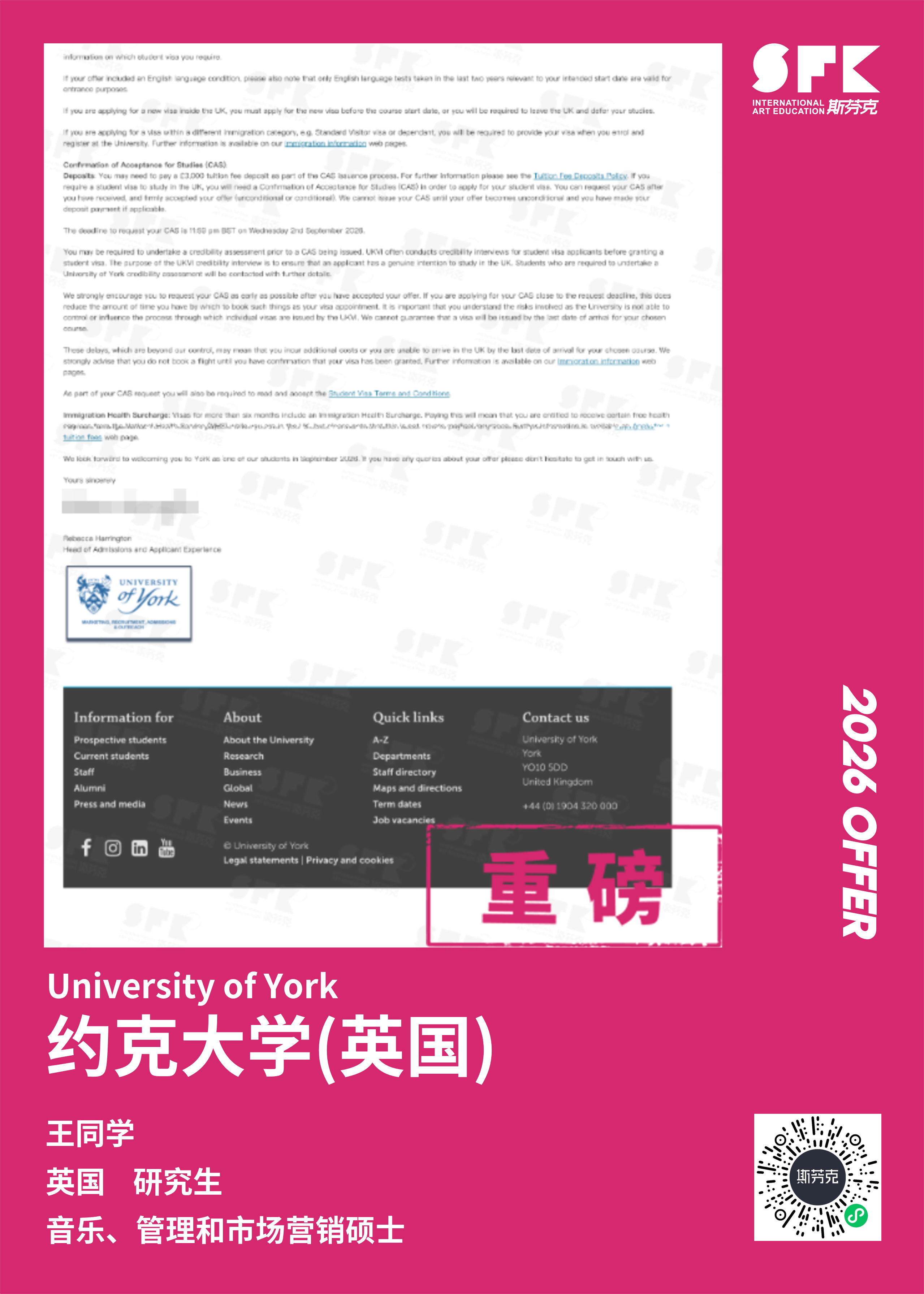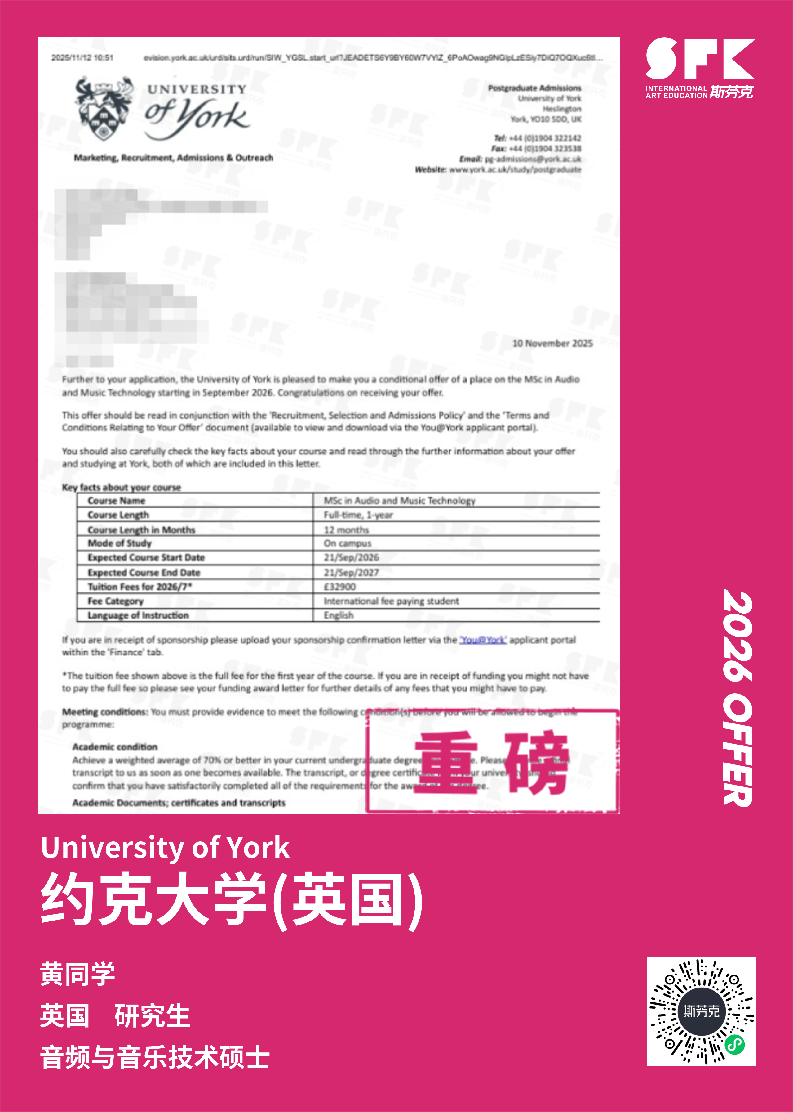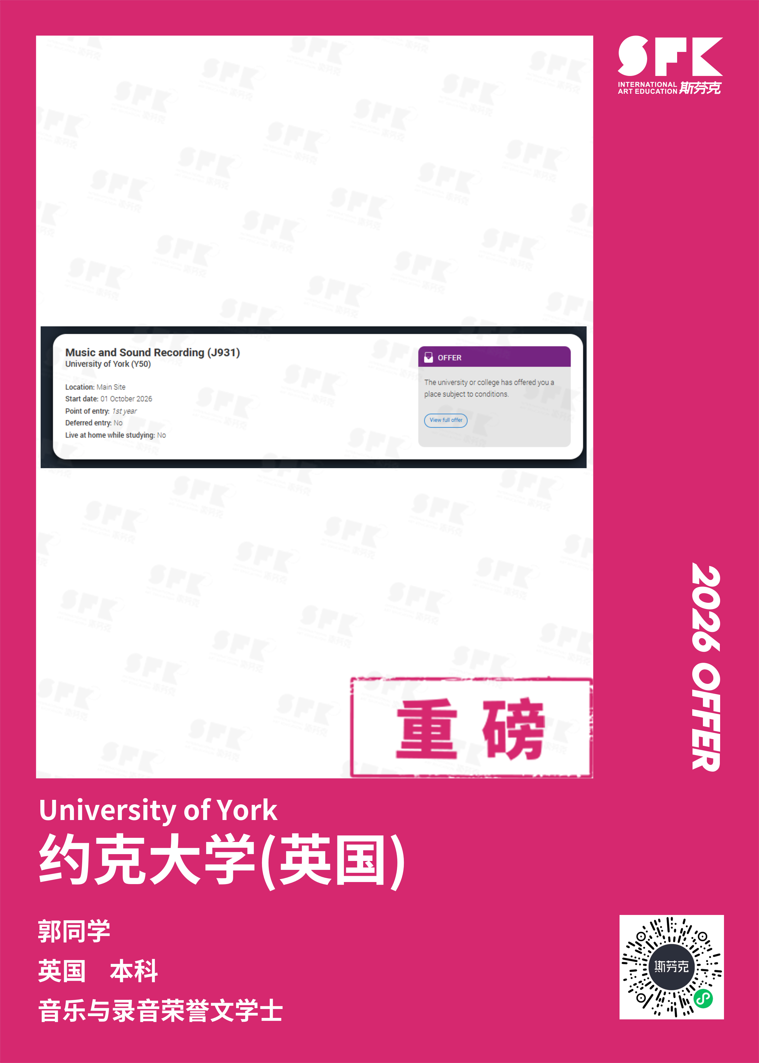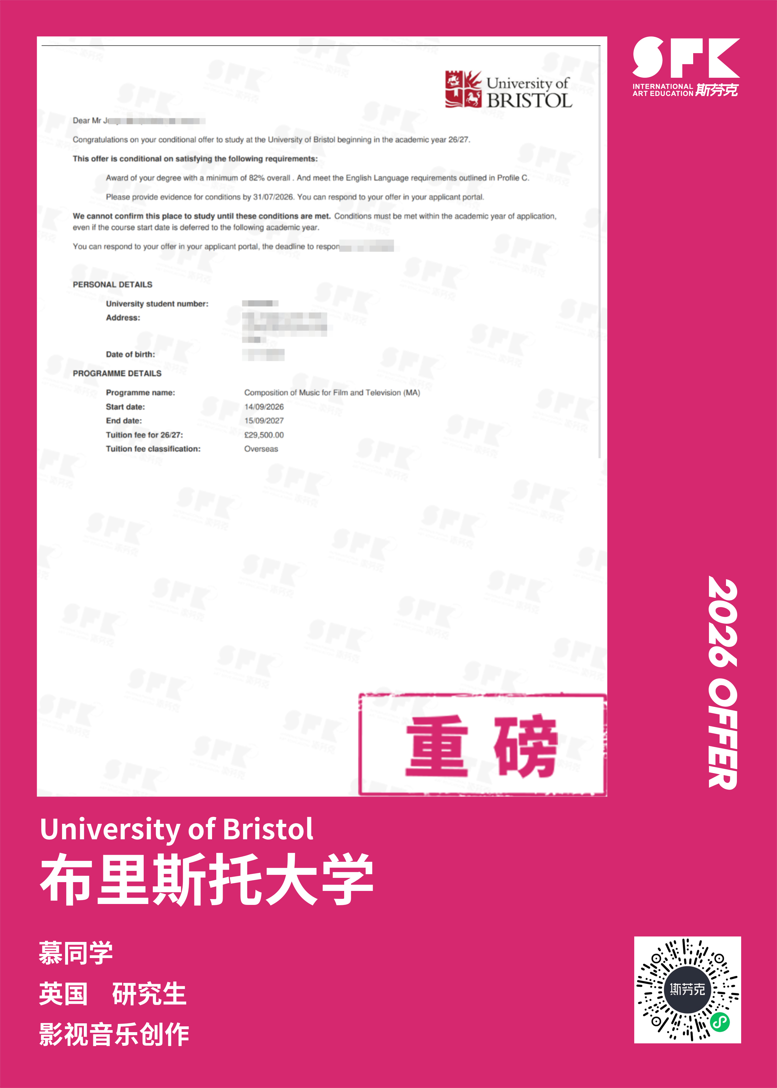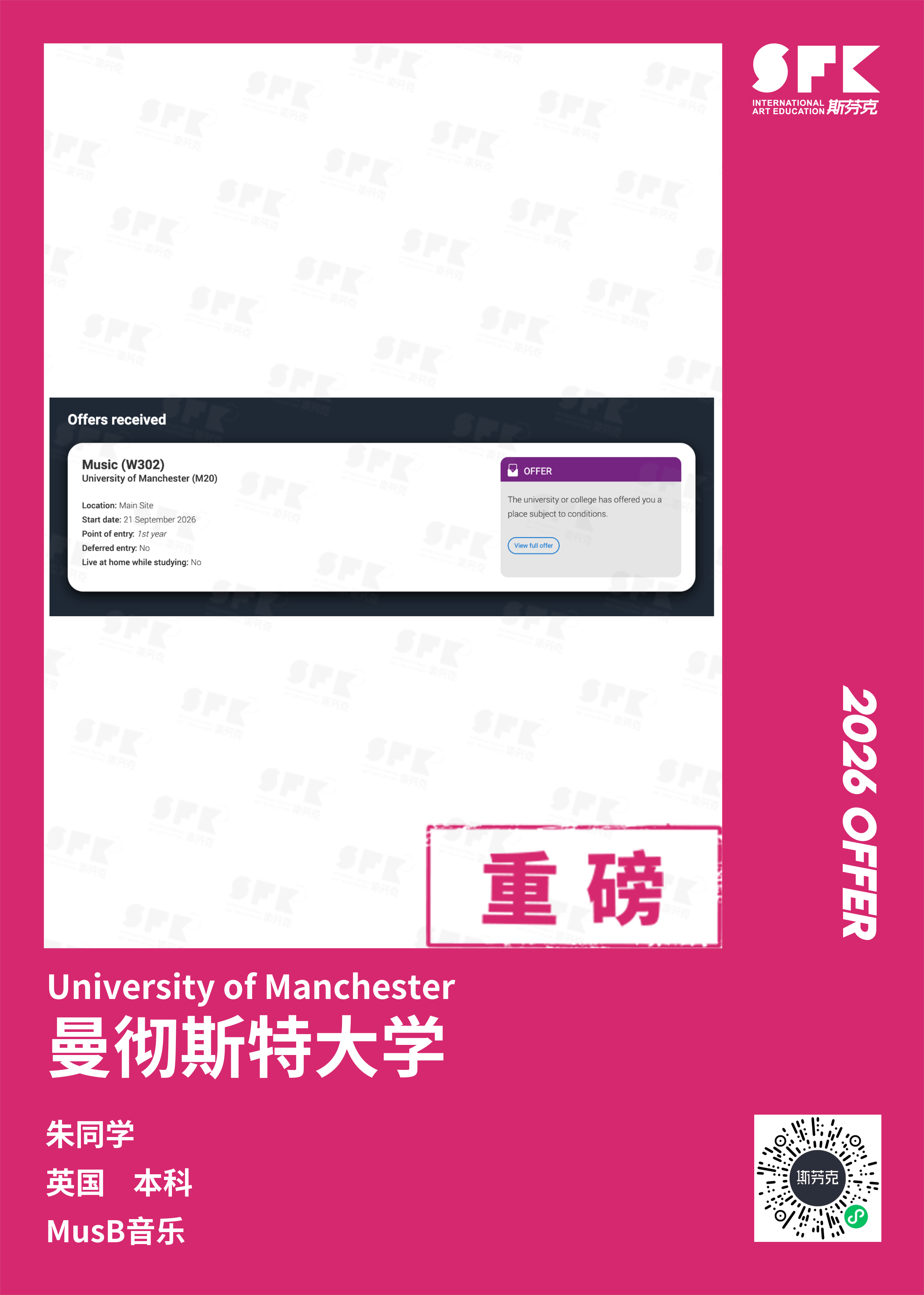 斯芬克音乐已帮助学员获得越来越多的国外音乐院校Offer