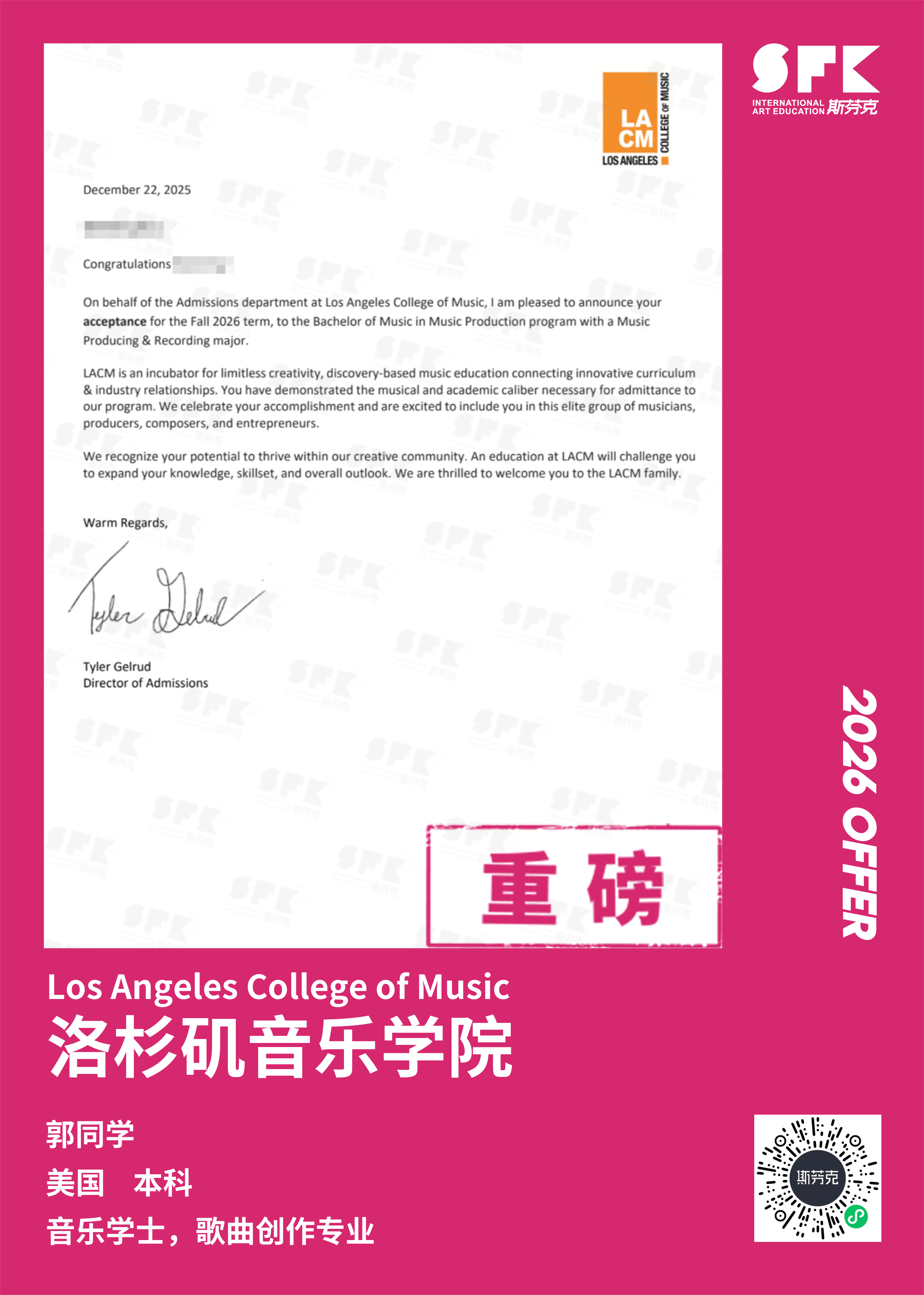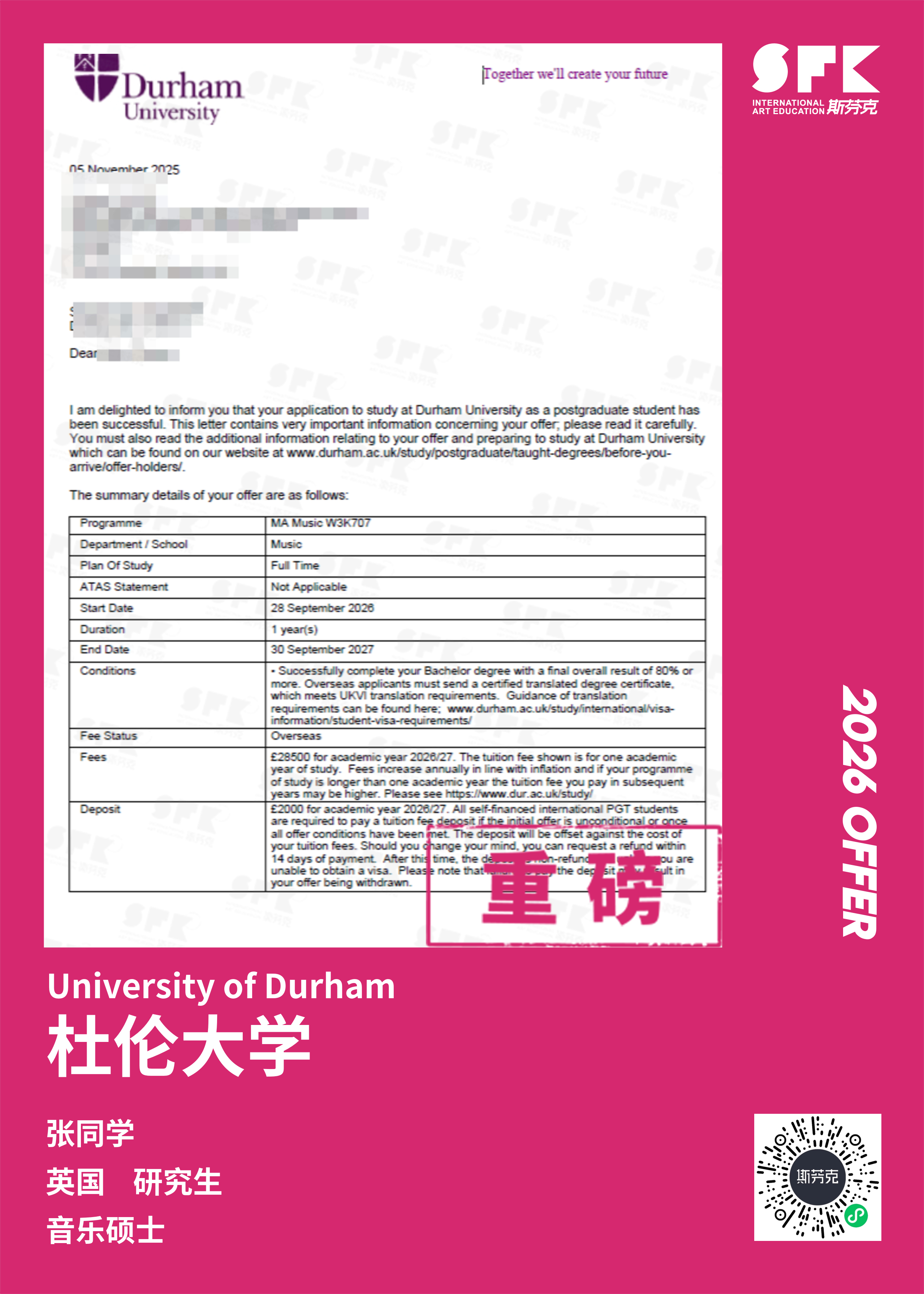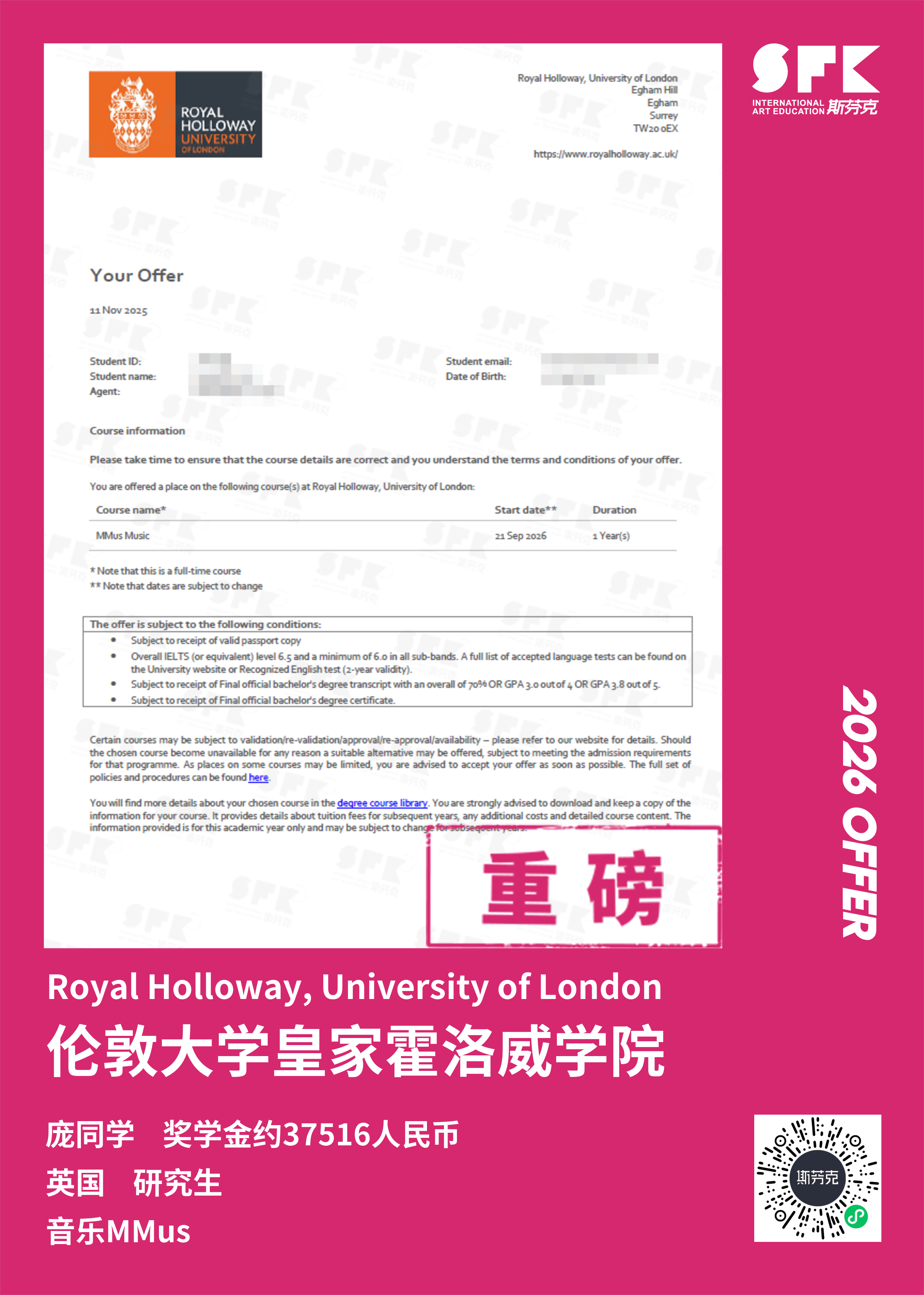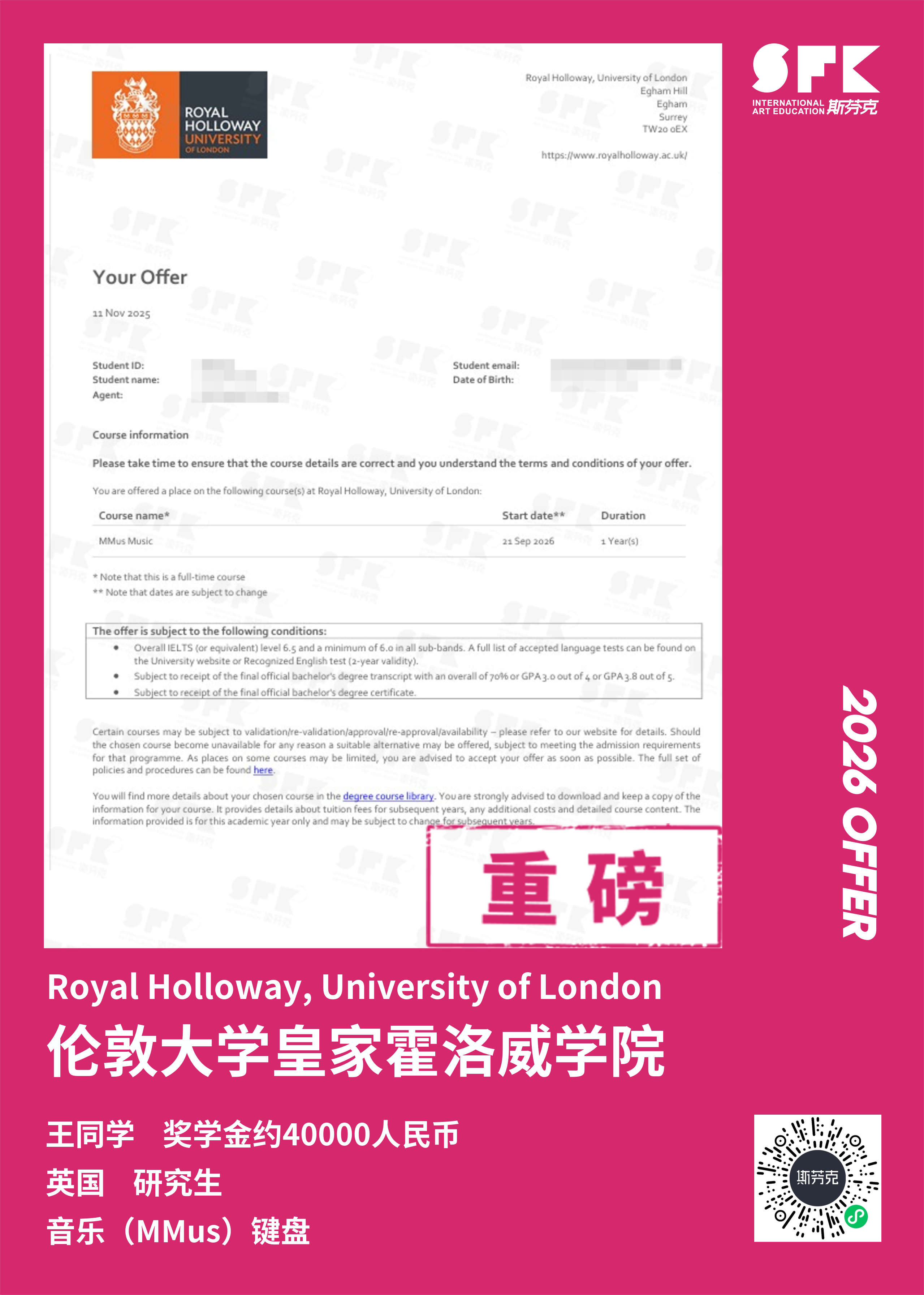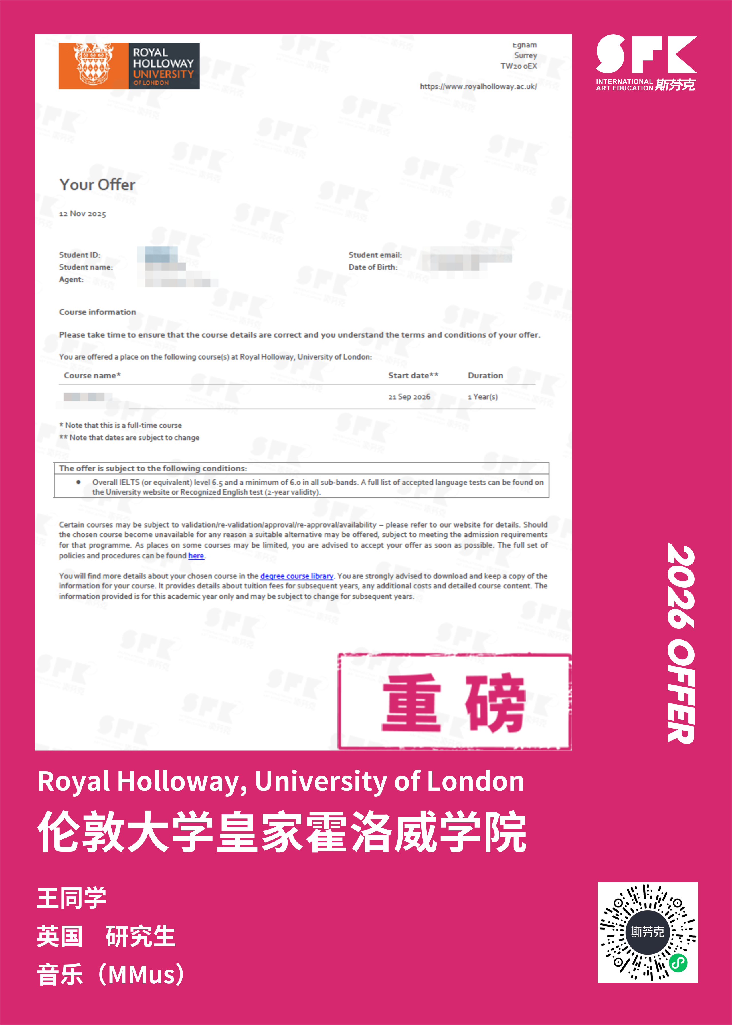斯芬克音乐已帮助学员获得越来越多的国外音乐院校Offer