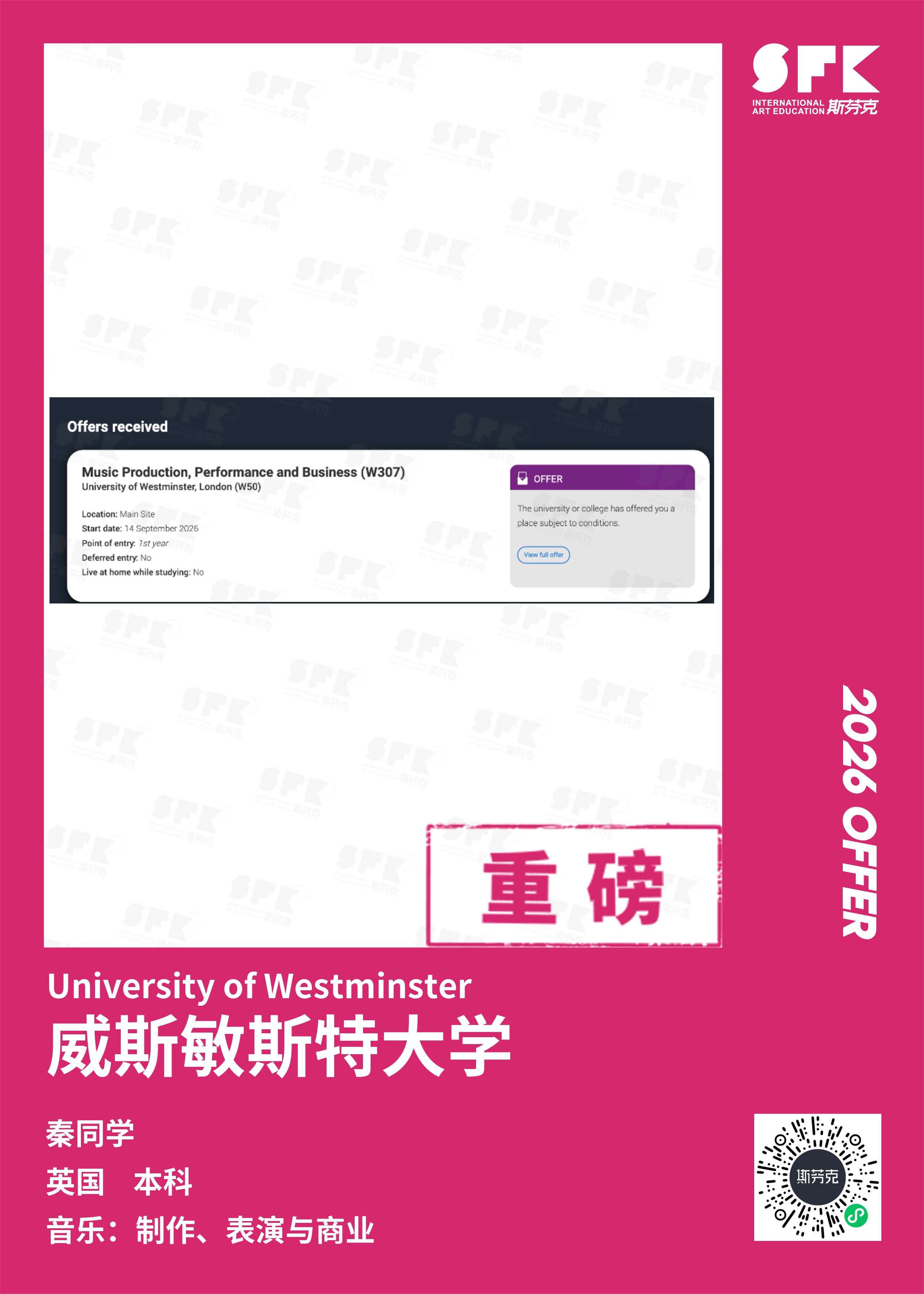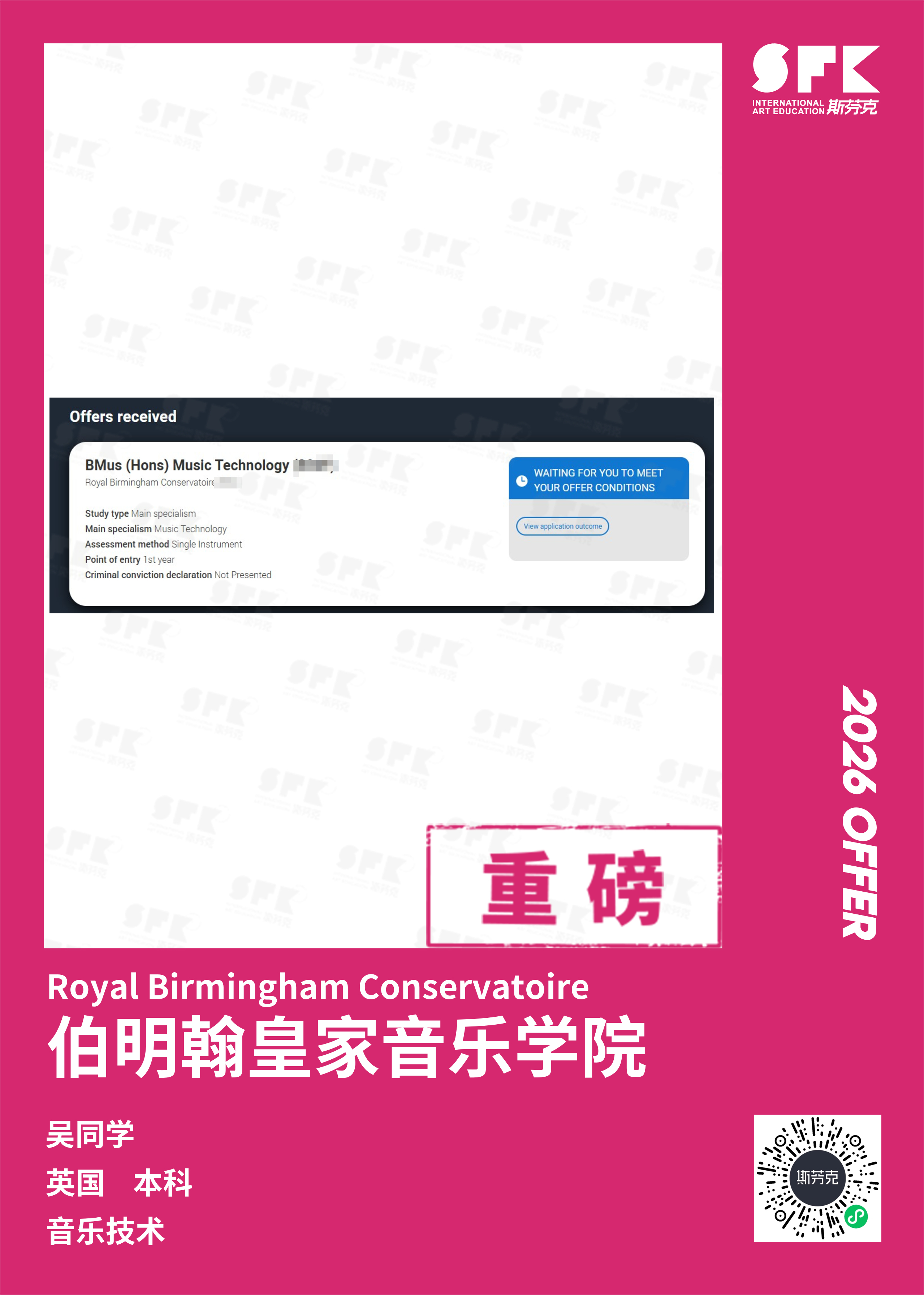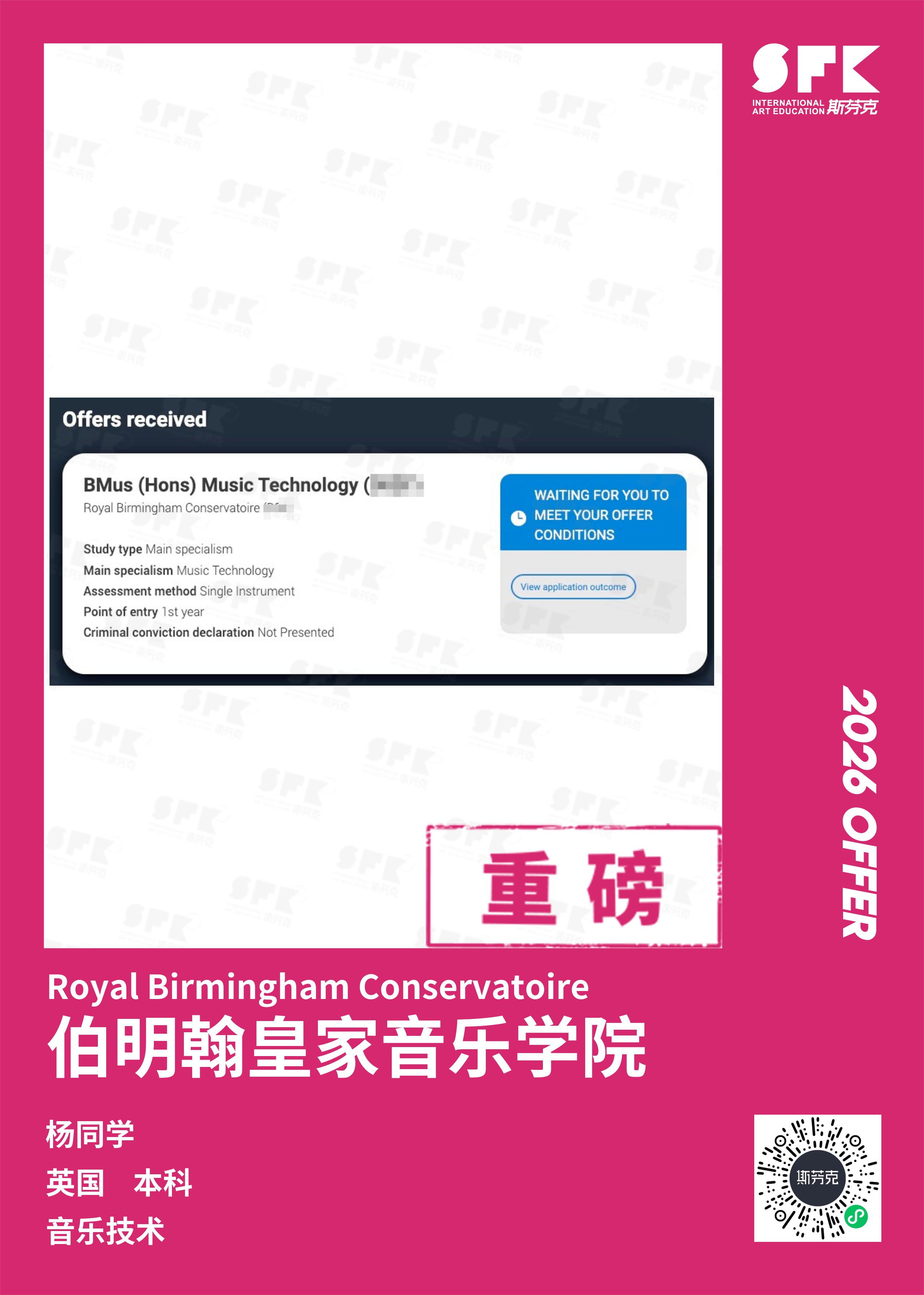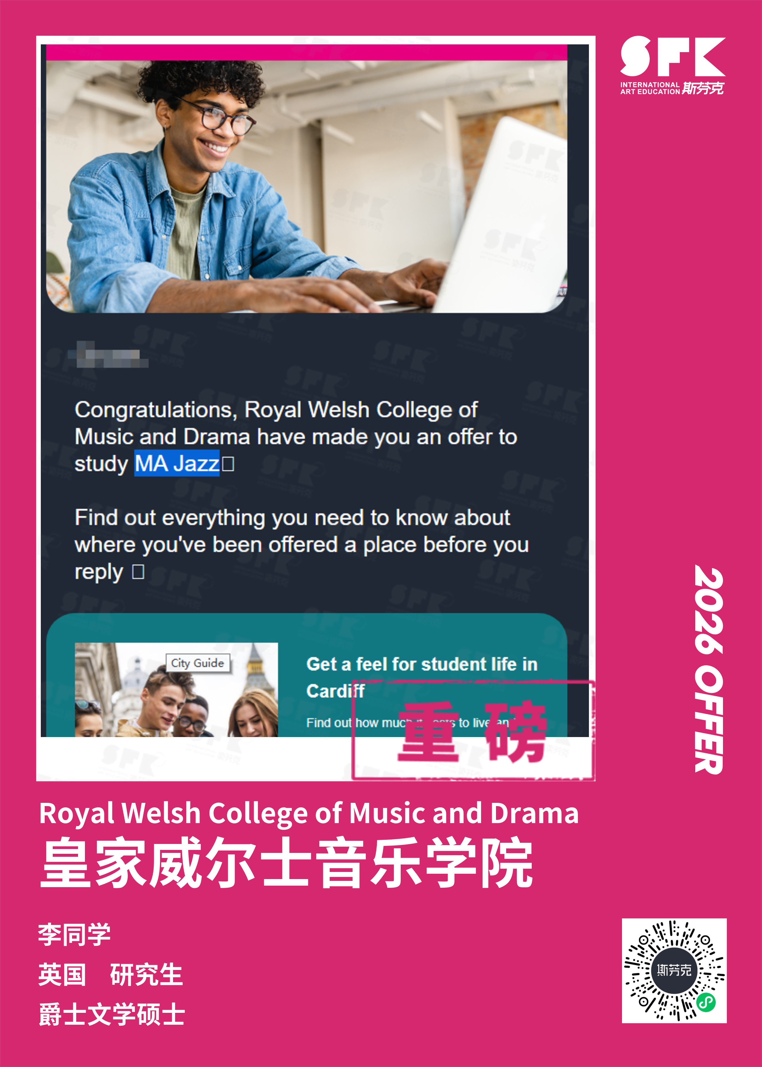 斯芬克音乐已帮助学员获得越来越多的国外音乐院校Offer