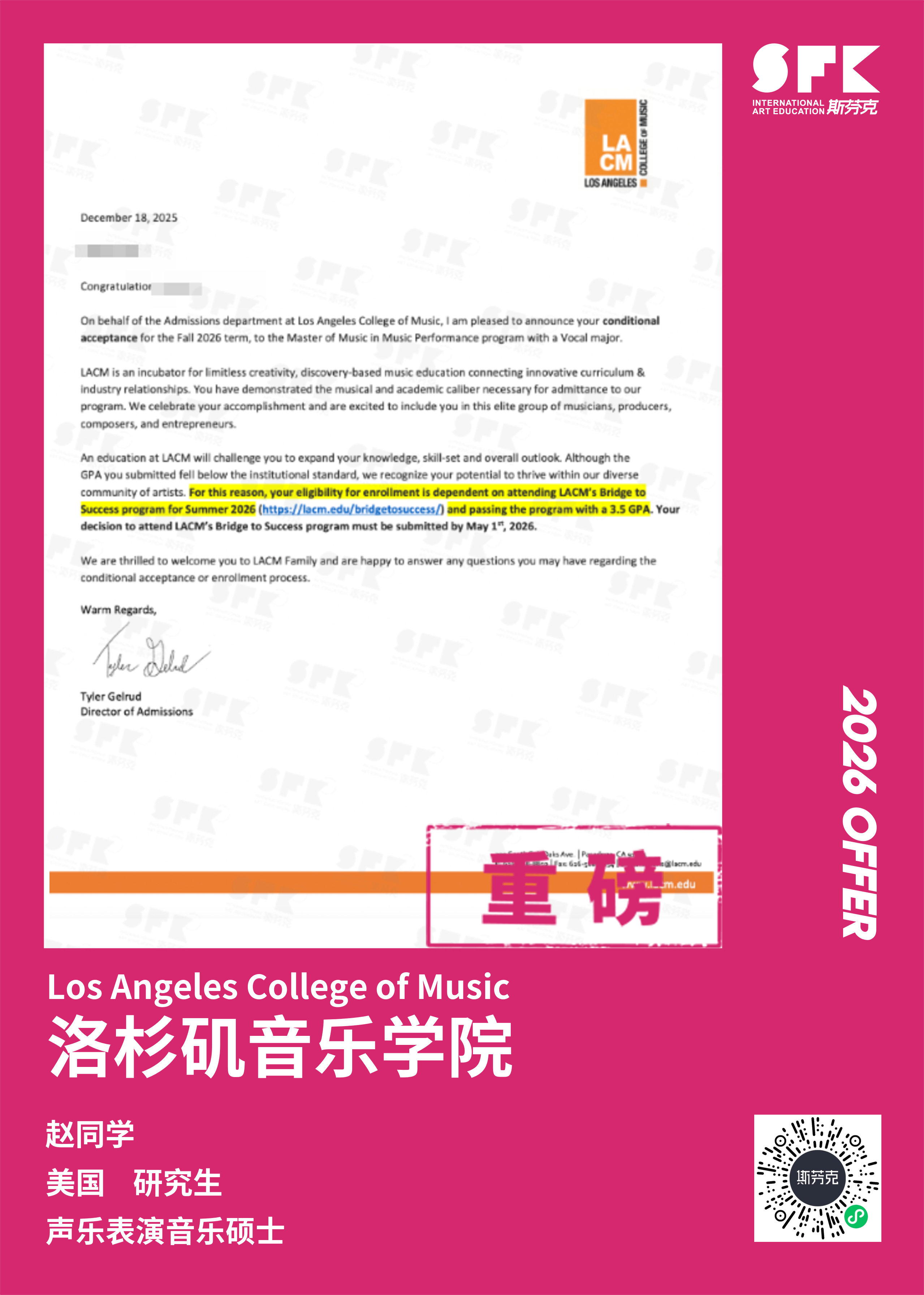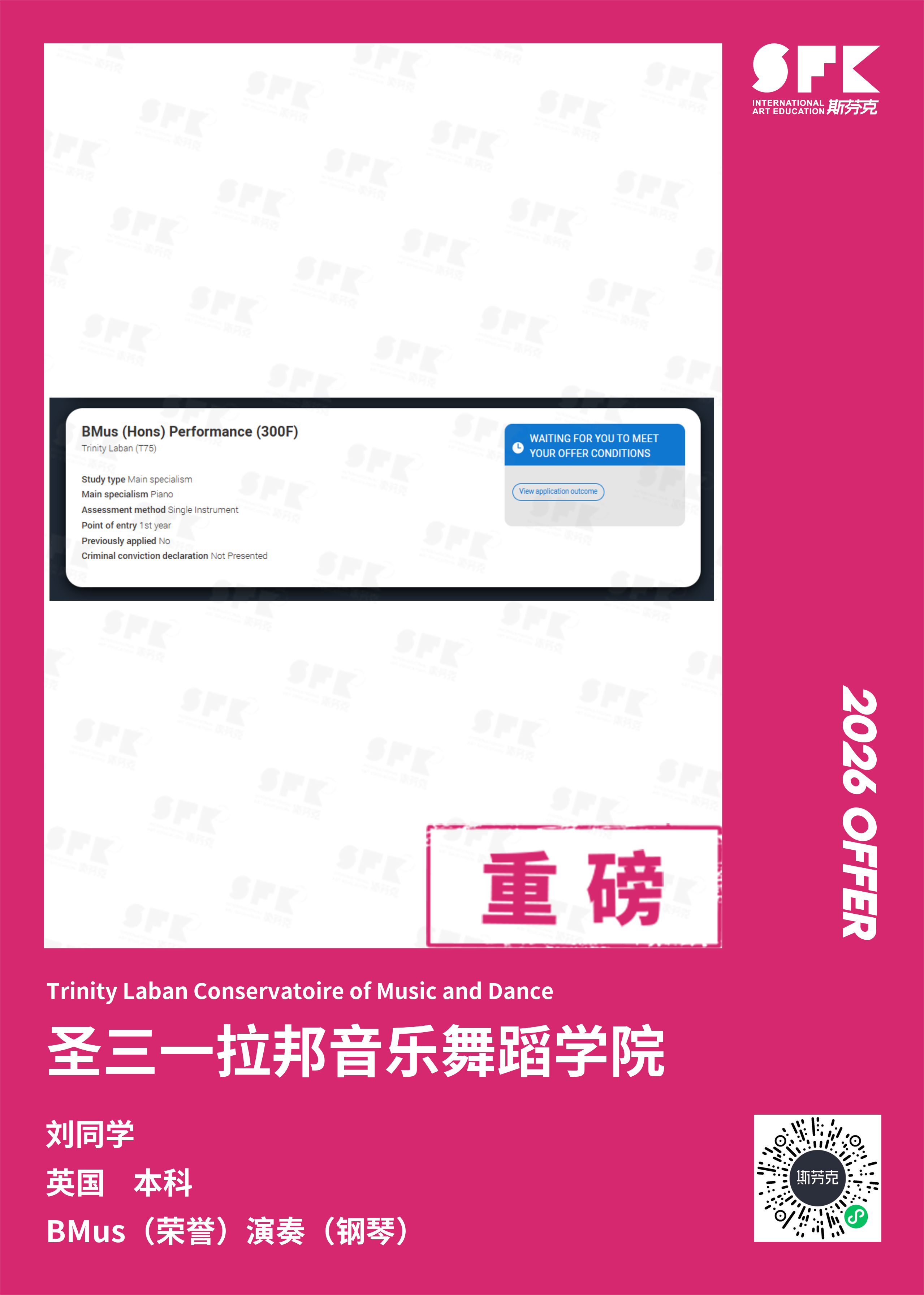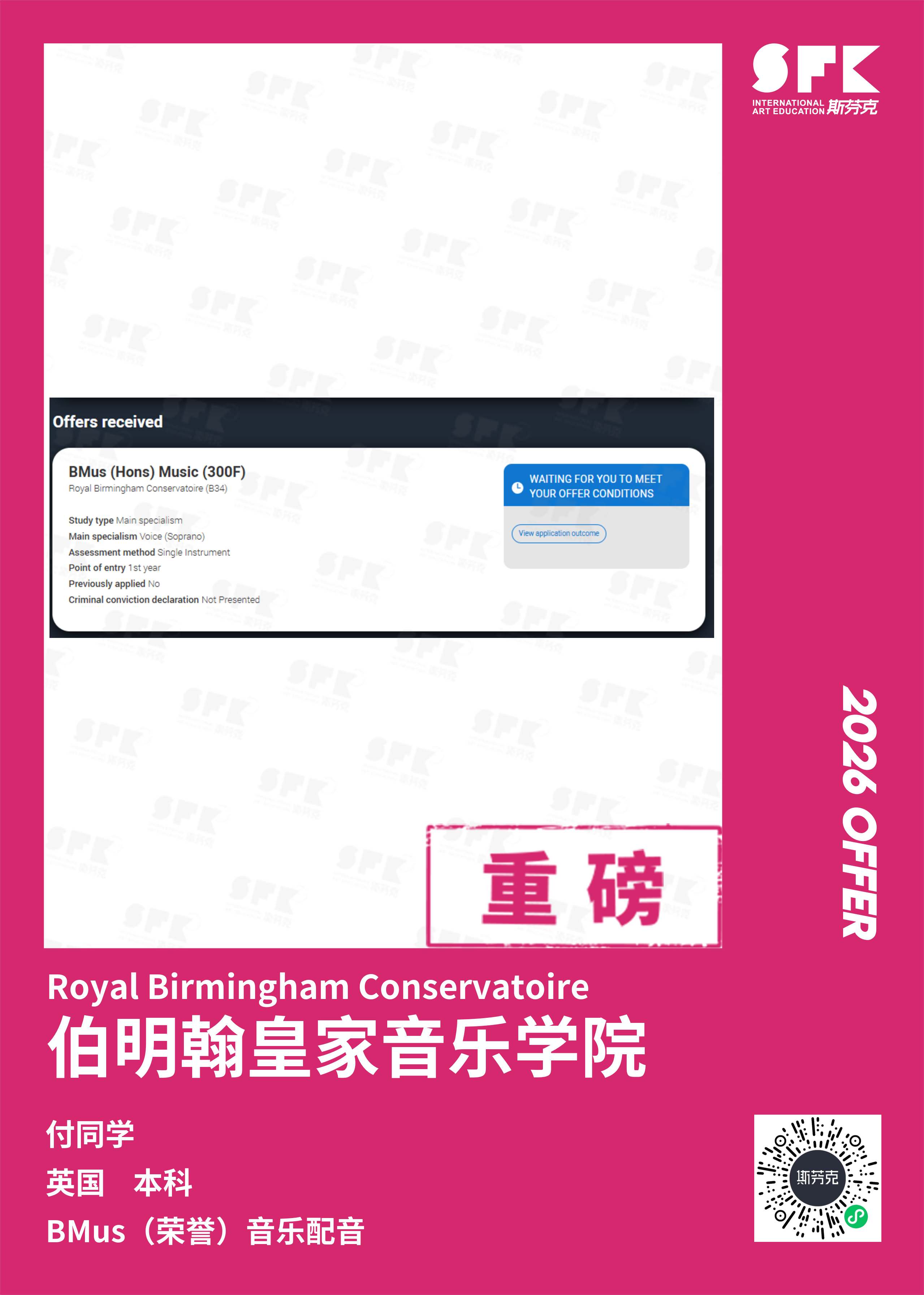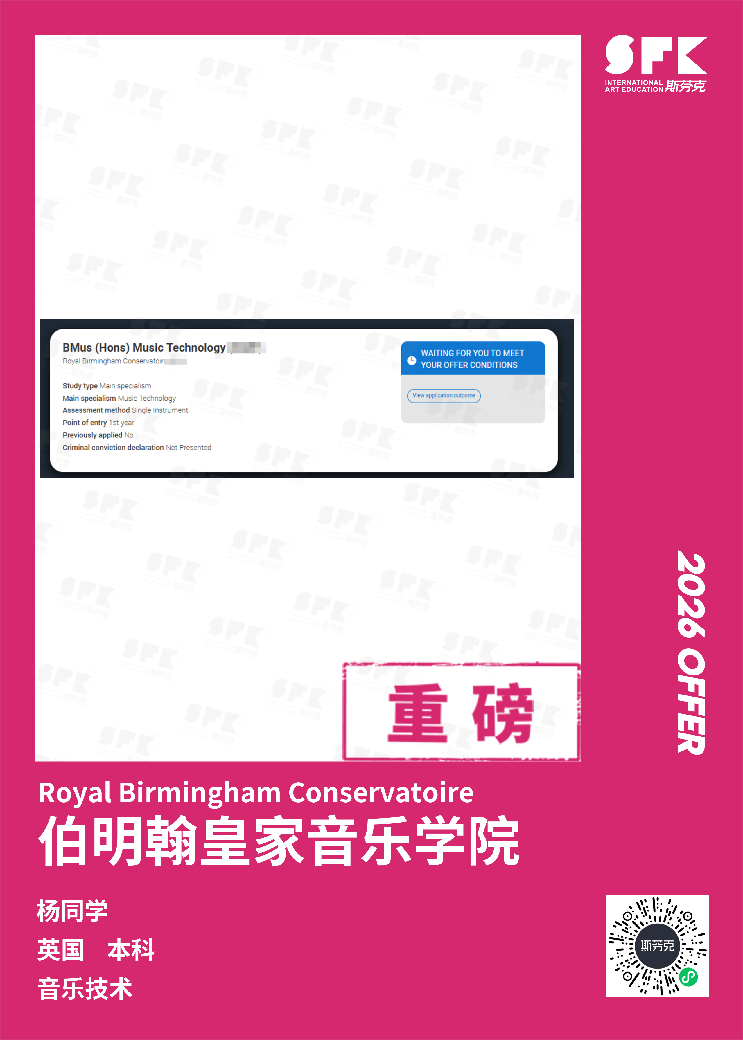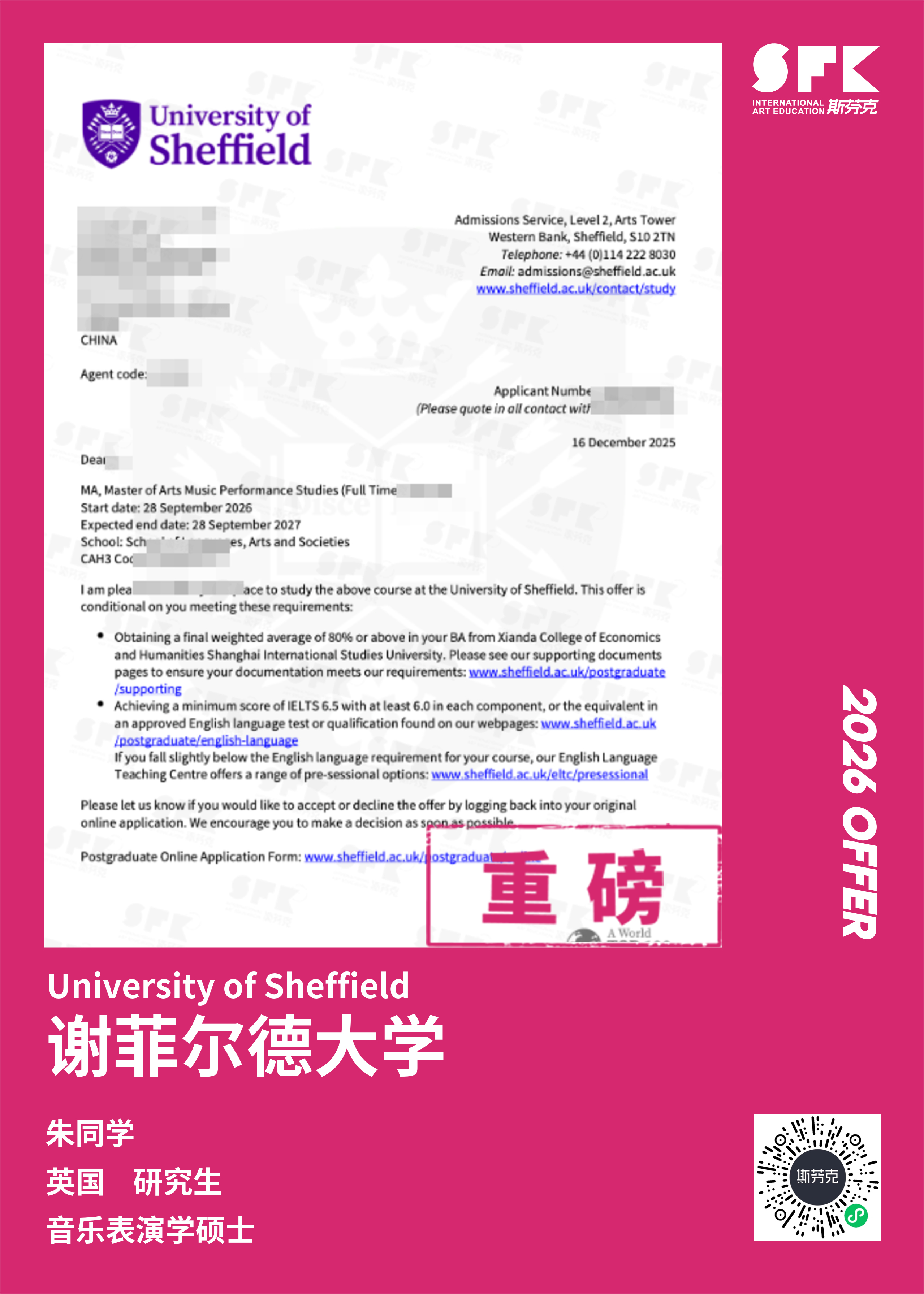 斯芬克音乐已帮助学员获得越来越多的国外音乐院校Offer