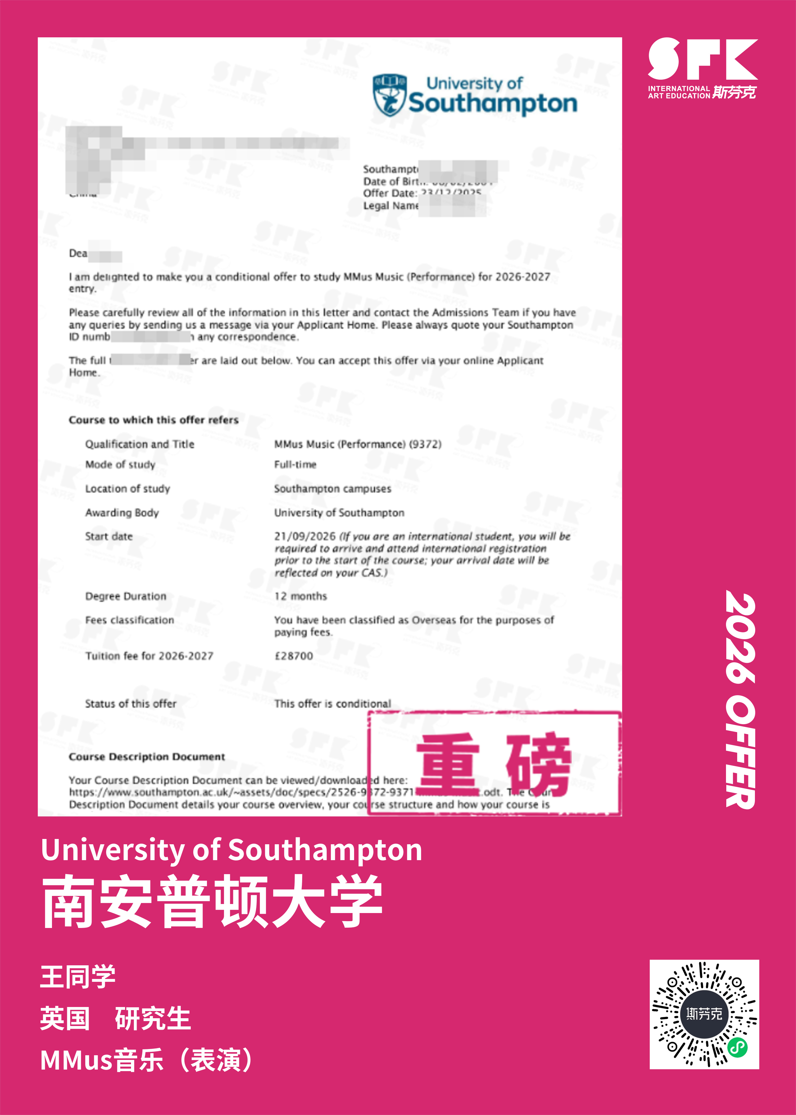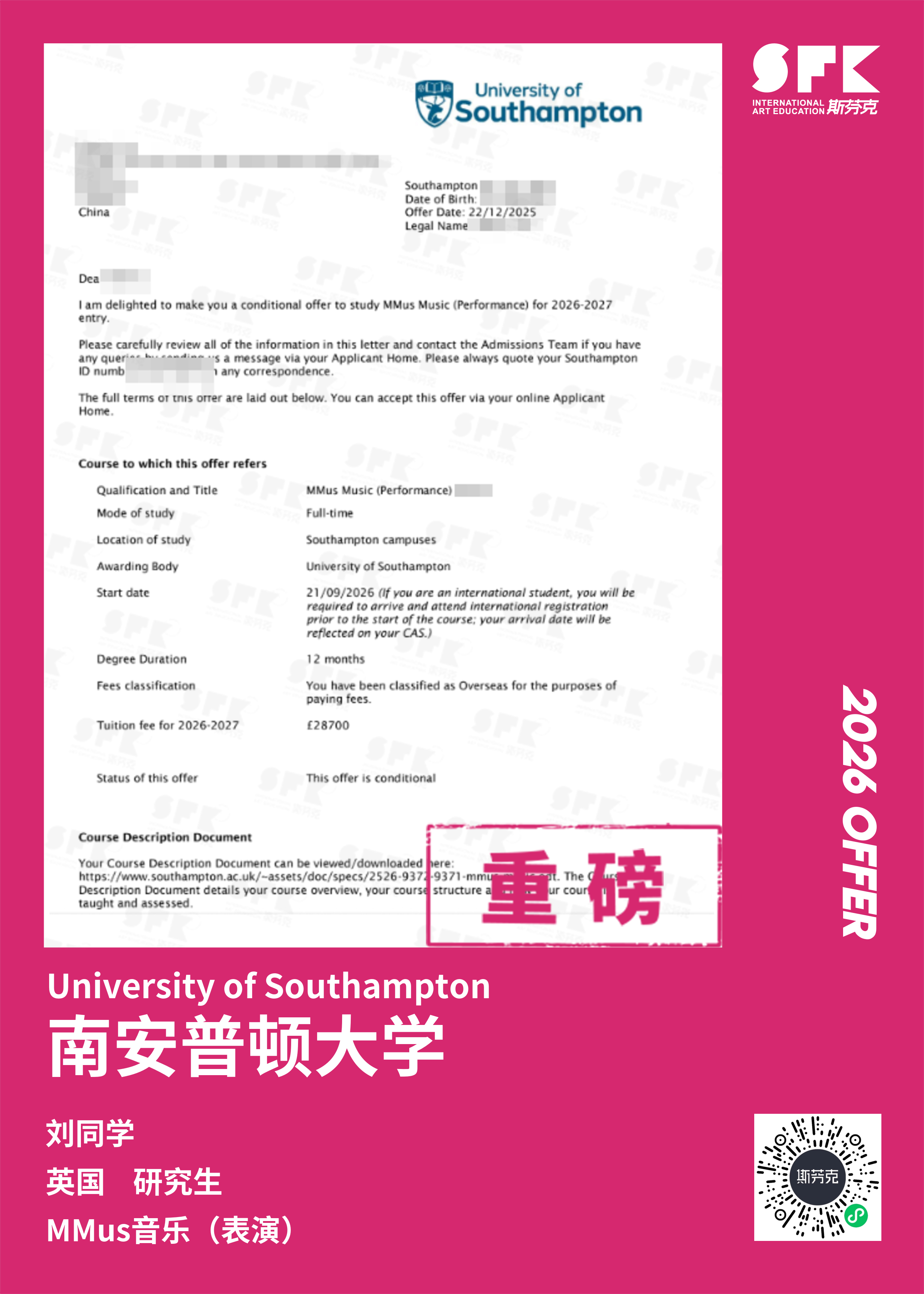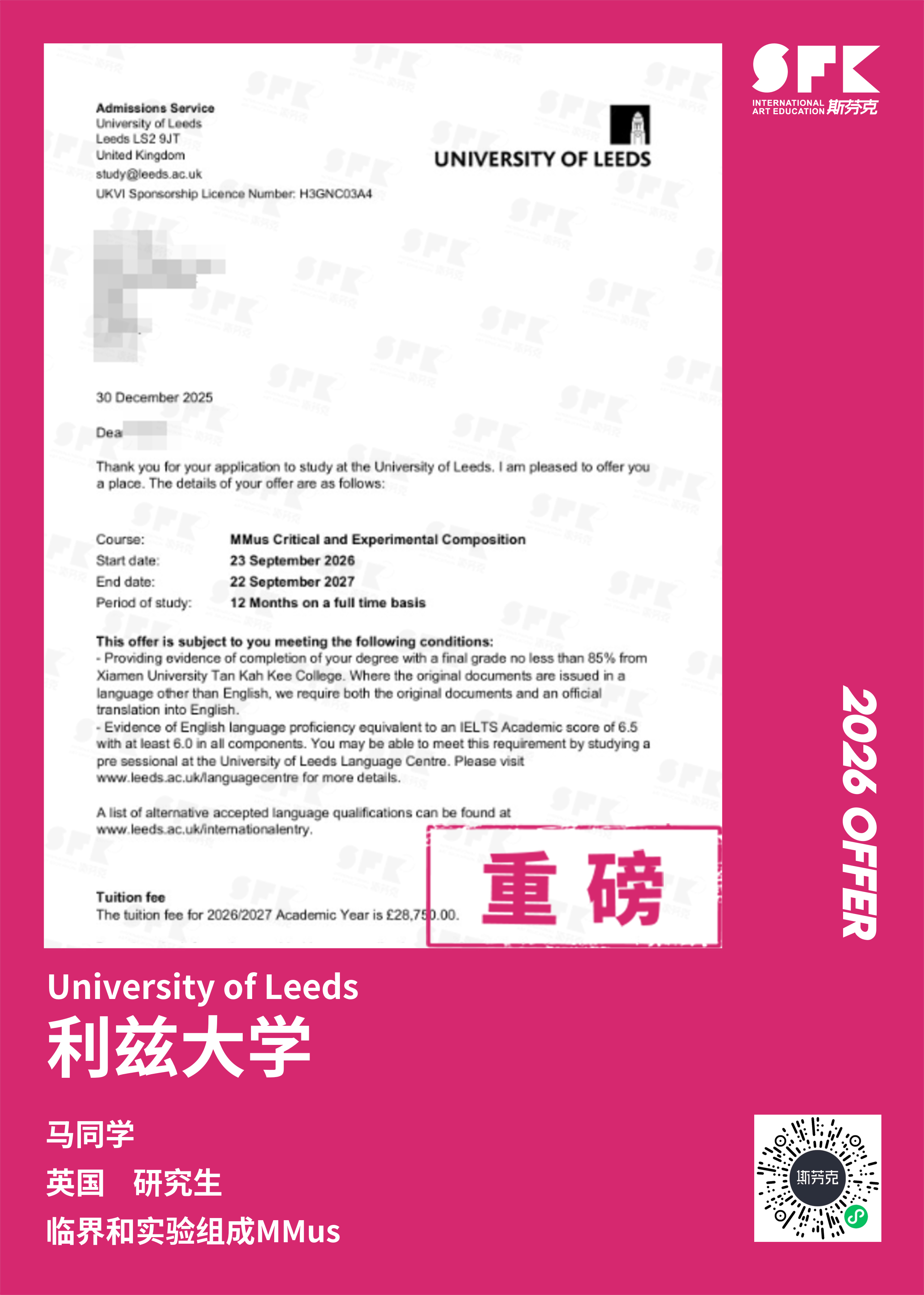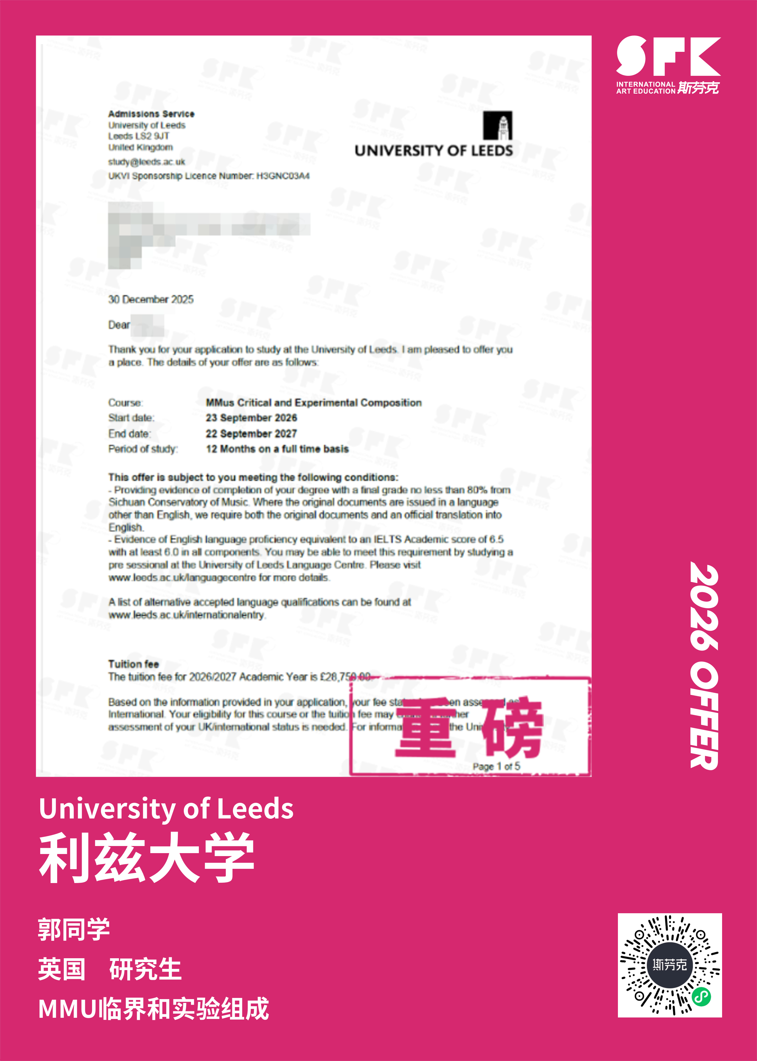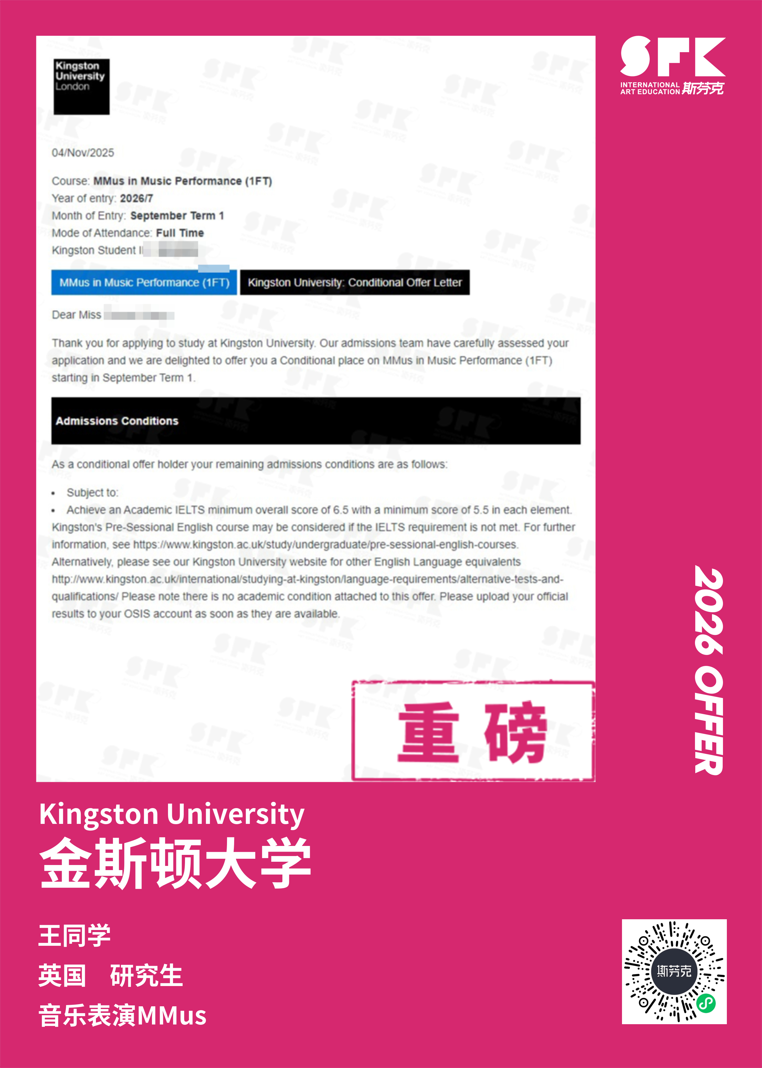斯芬克音乐已帮助学员获得越来越多的国外音乐院校Offer