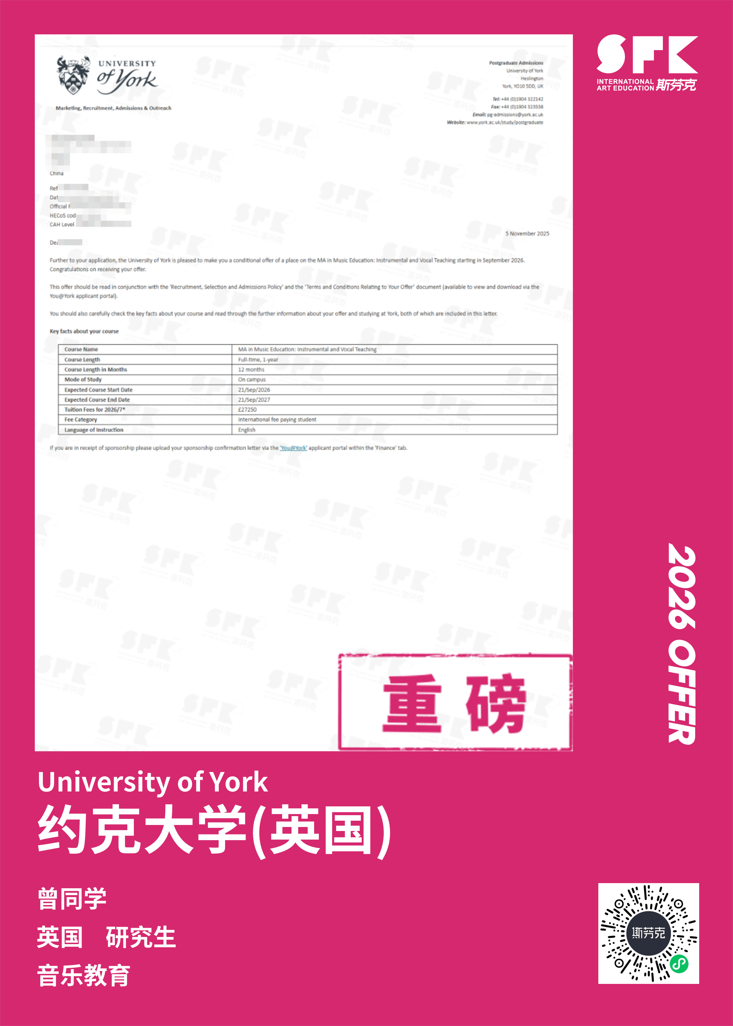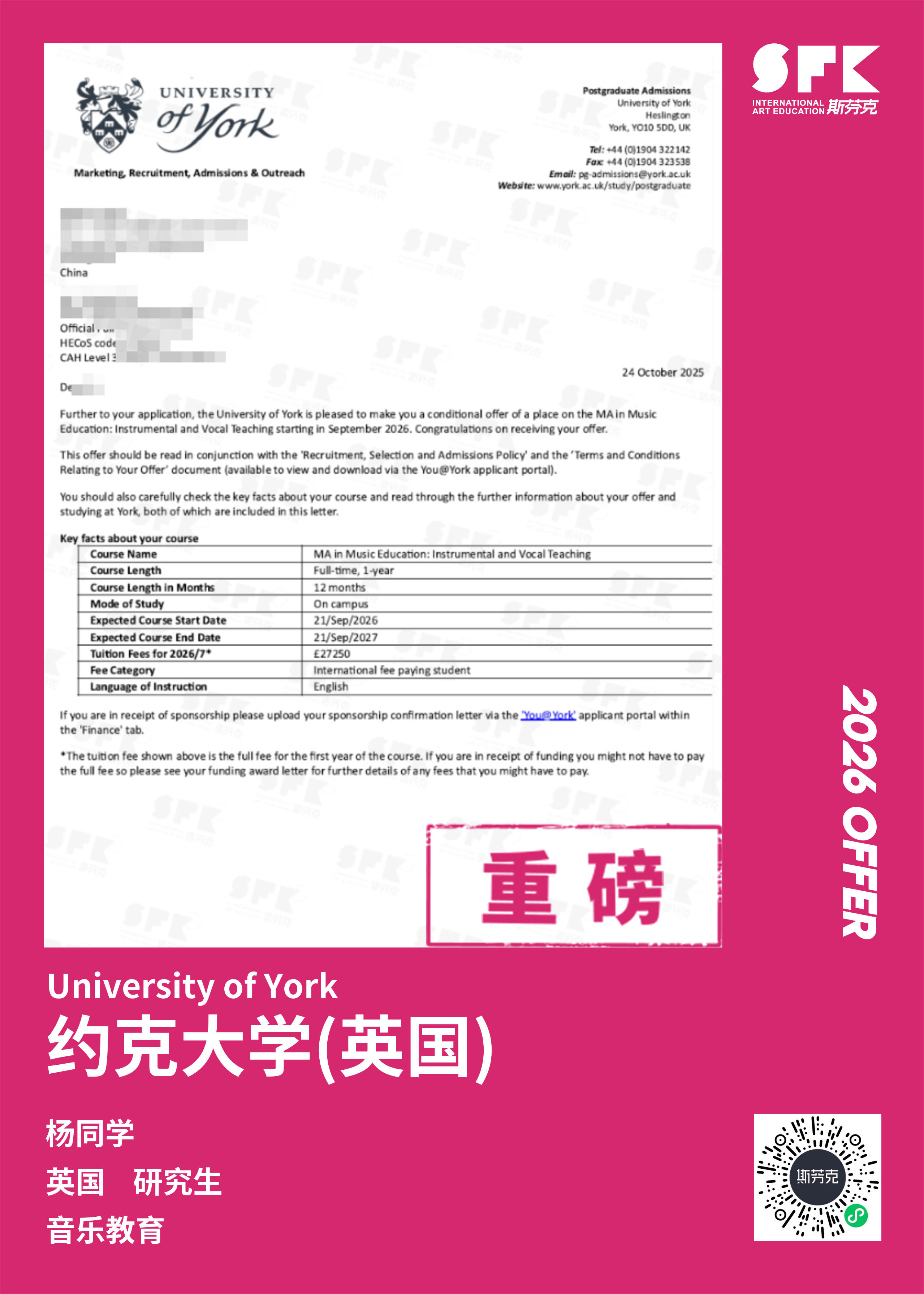 斩获约翰霍普金斯大学、耶鲁大学、西北大学、纽约大学等综合大U音乐学院Offer