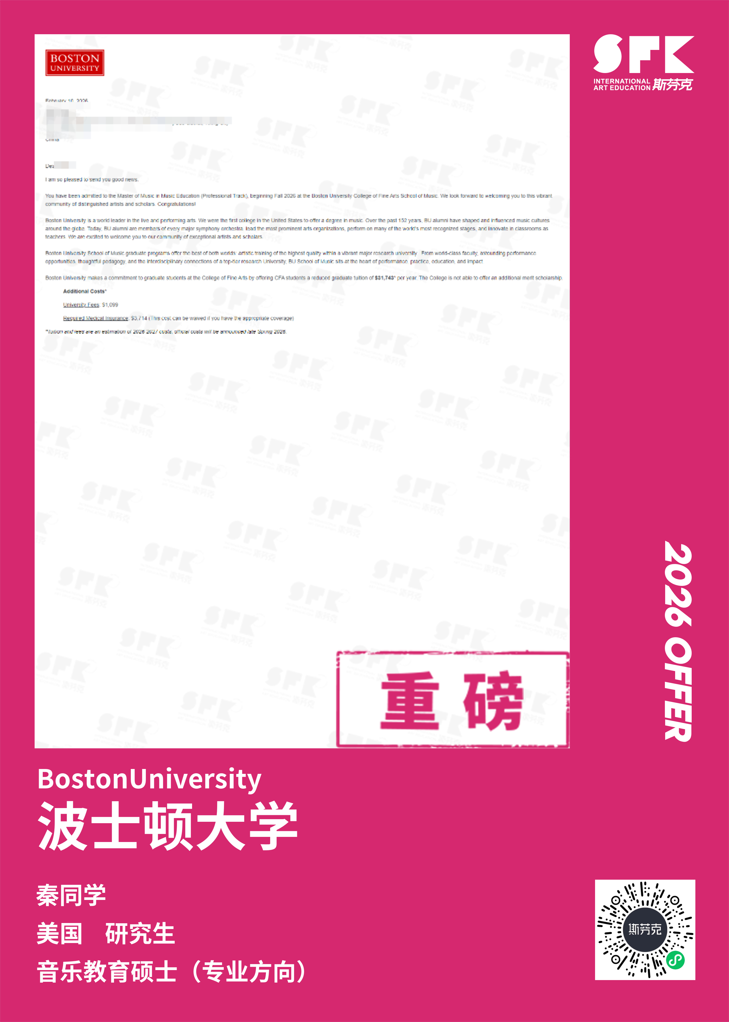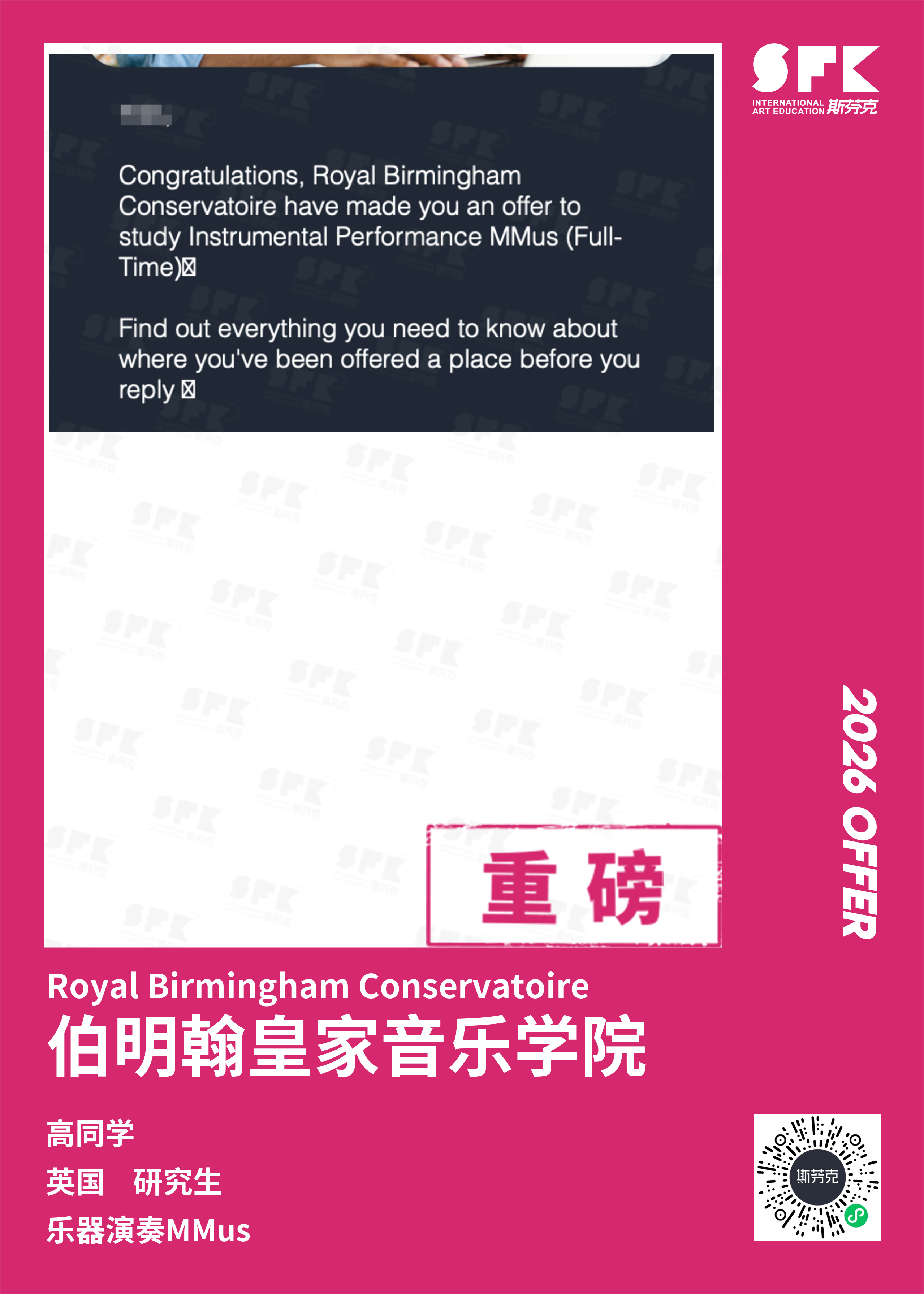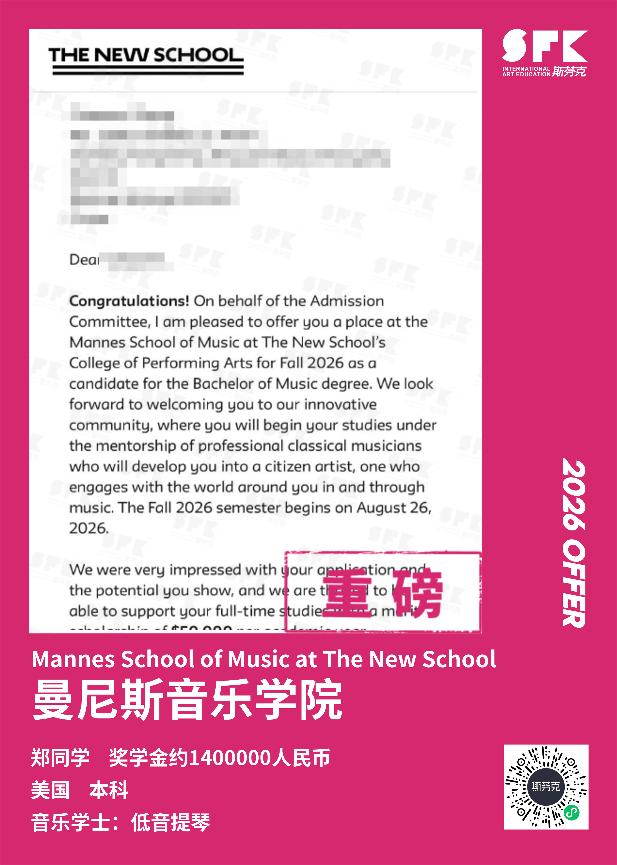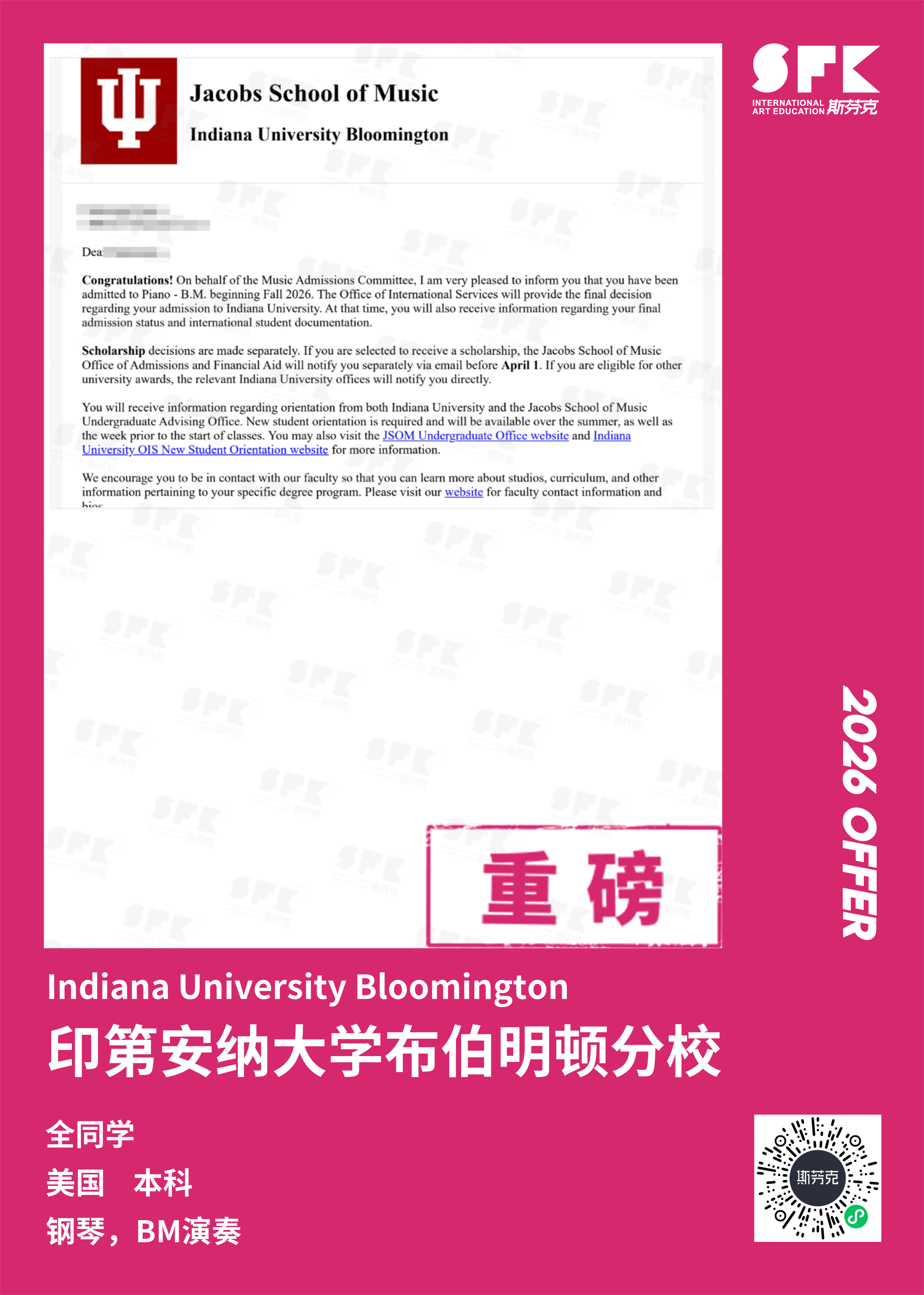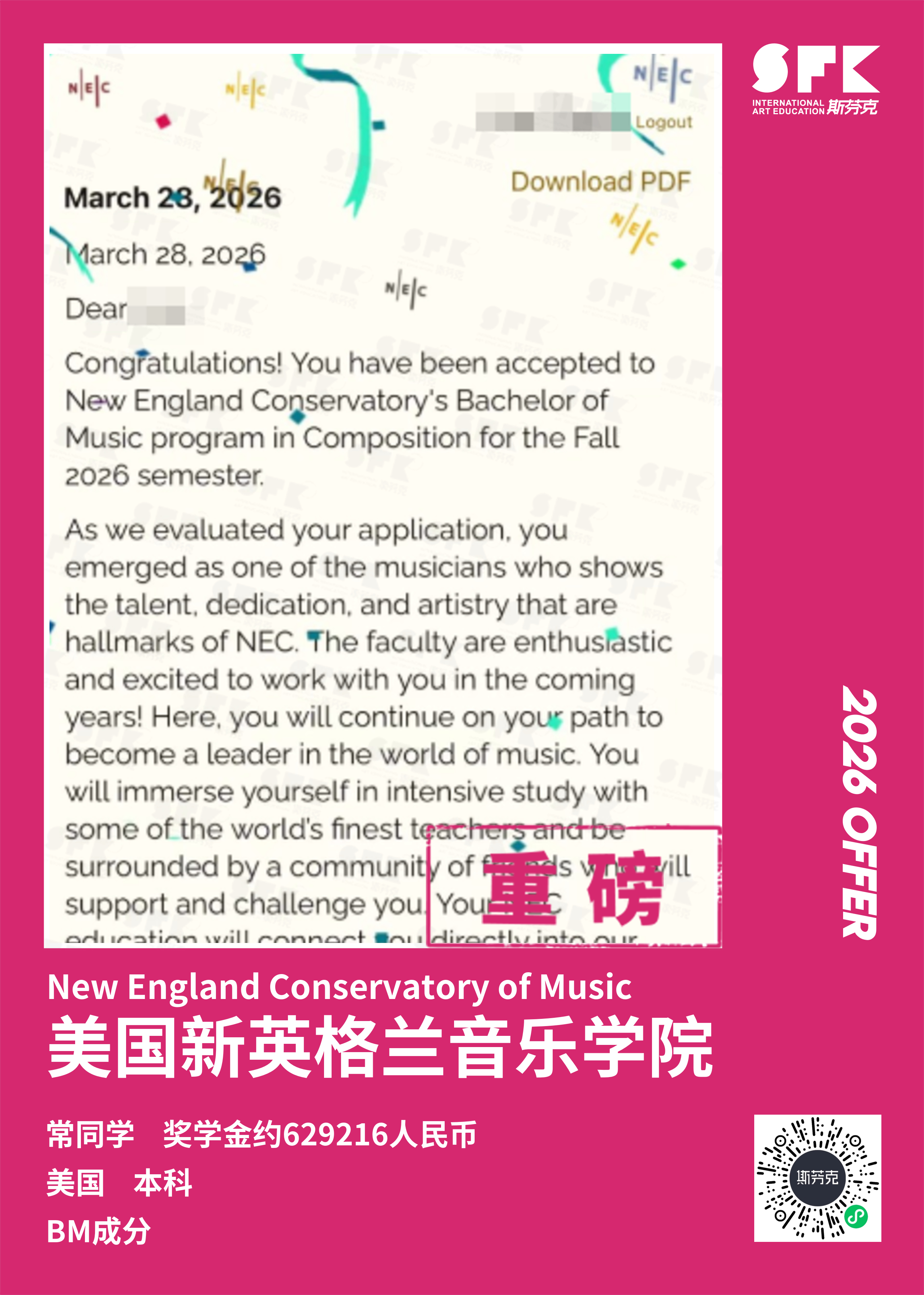 斯芬克音乐已帮助学员获得越来越多的国外音乐院校Offer