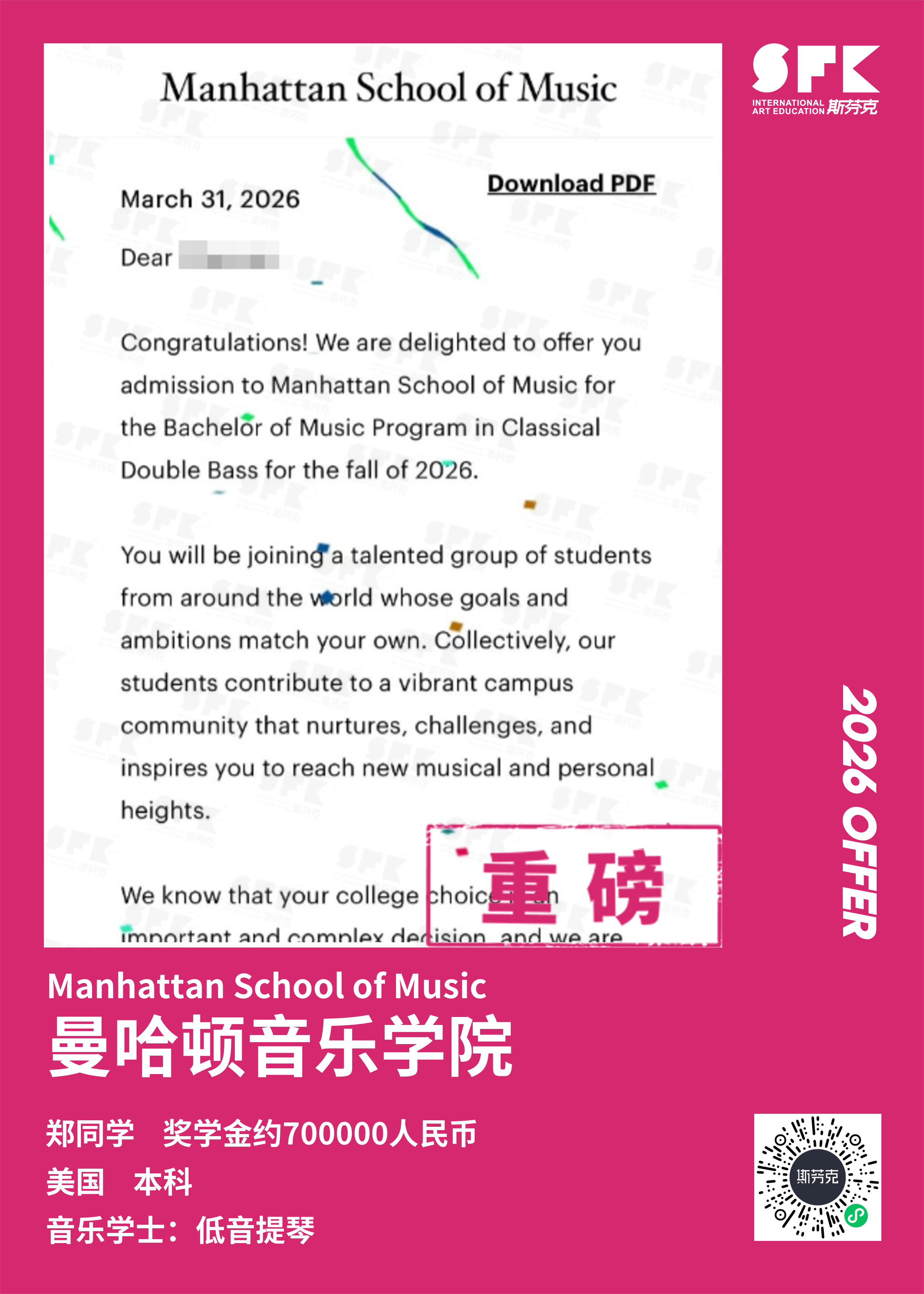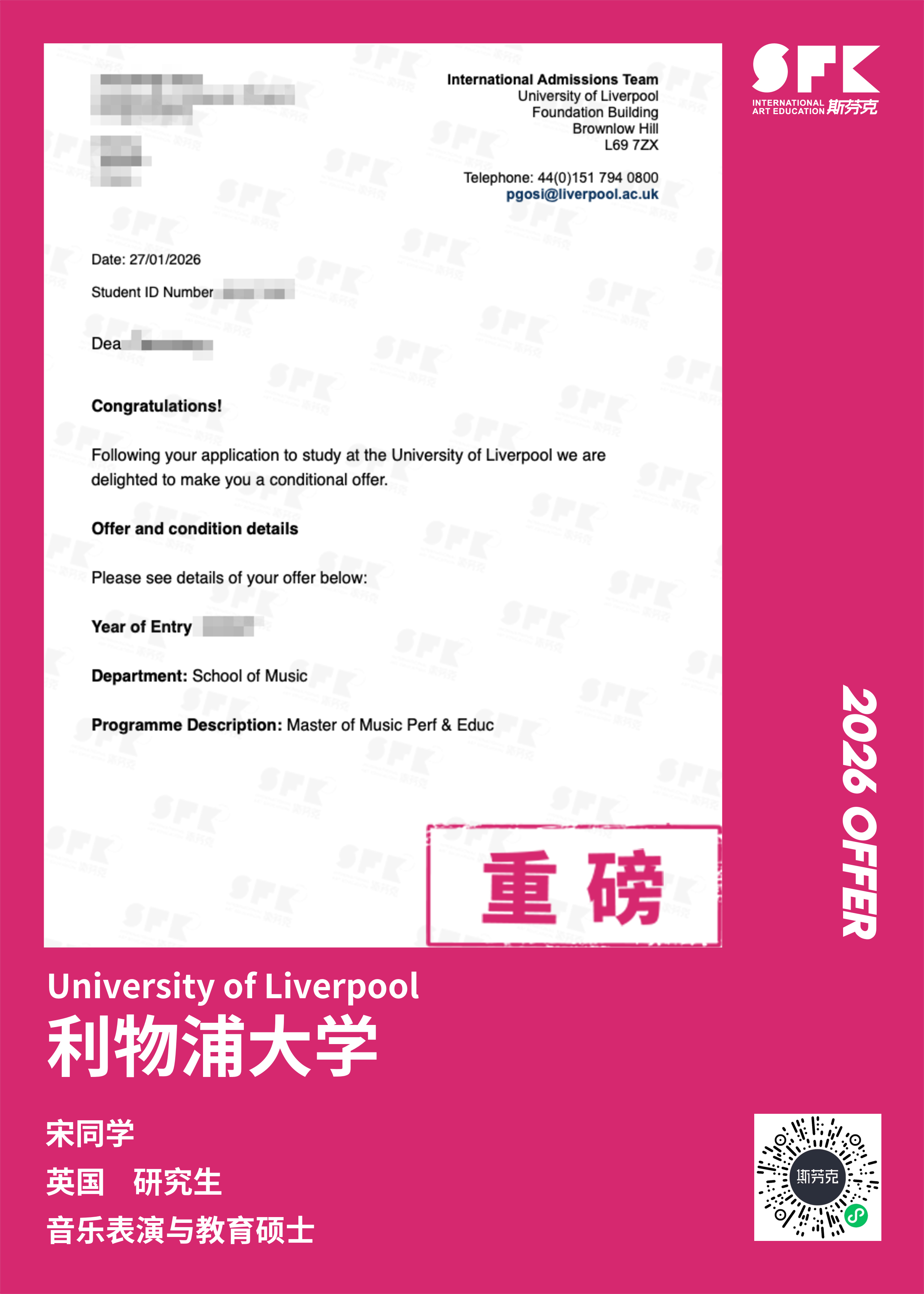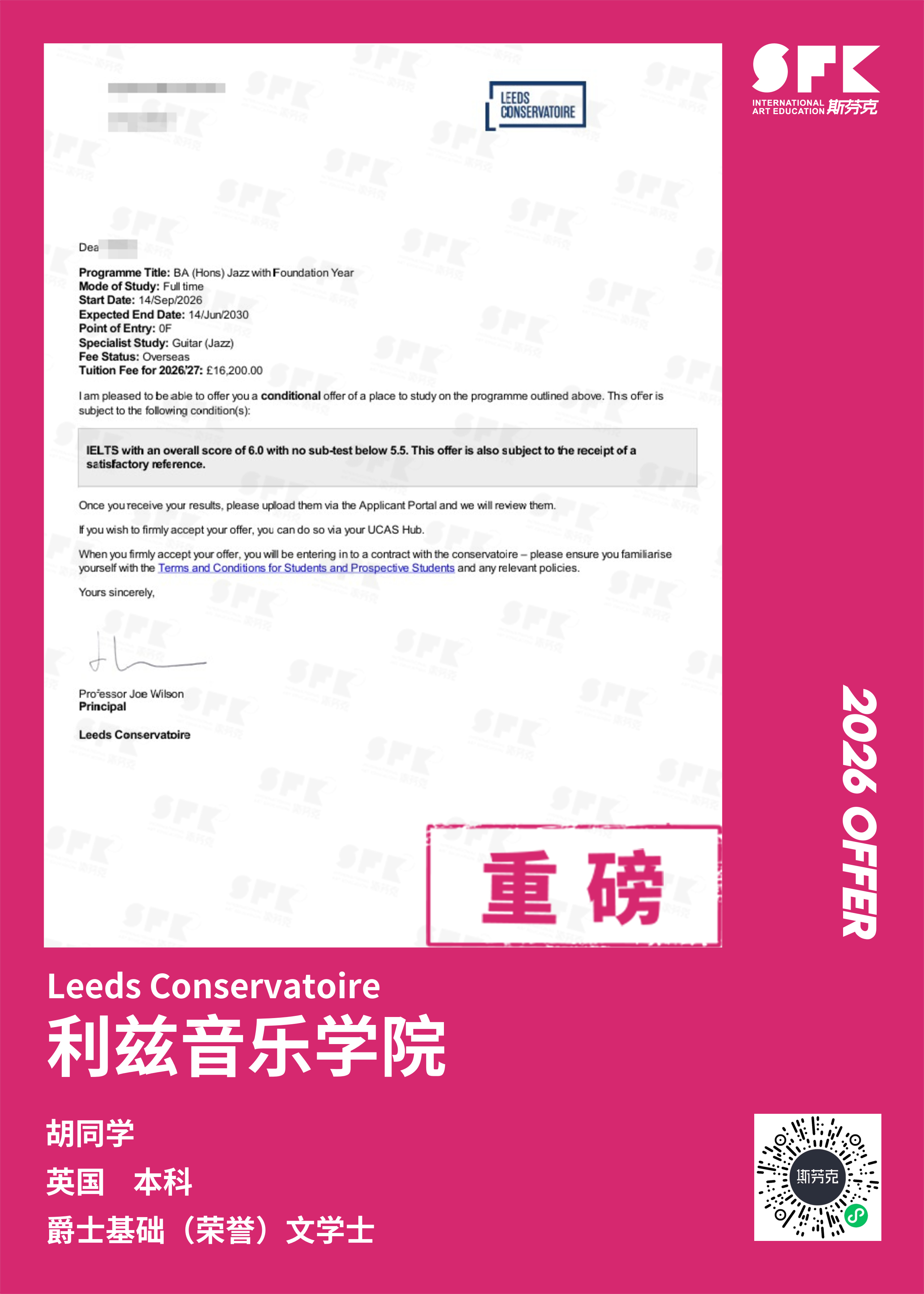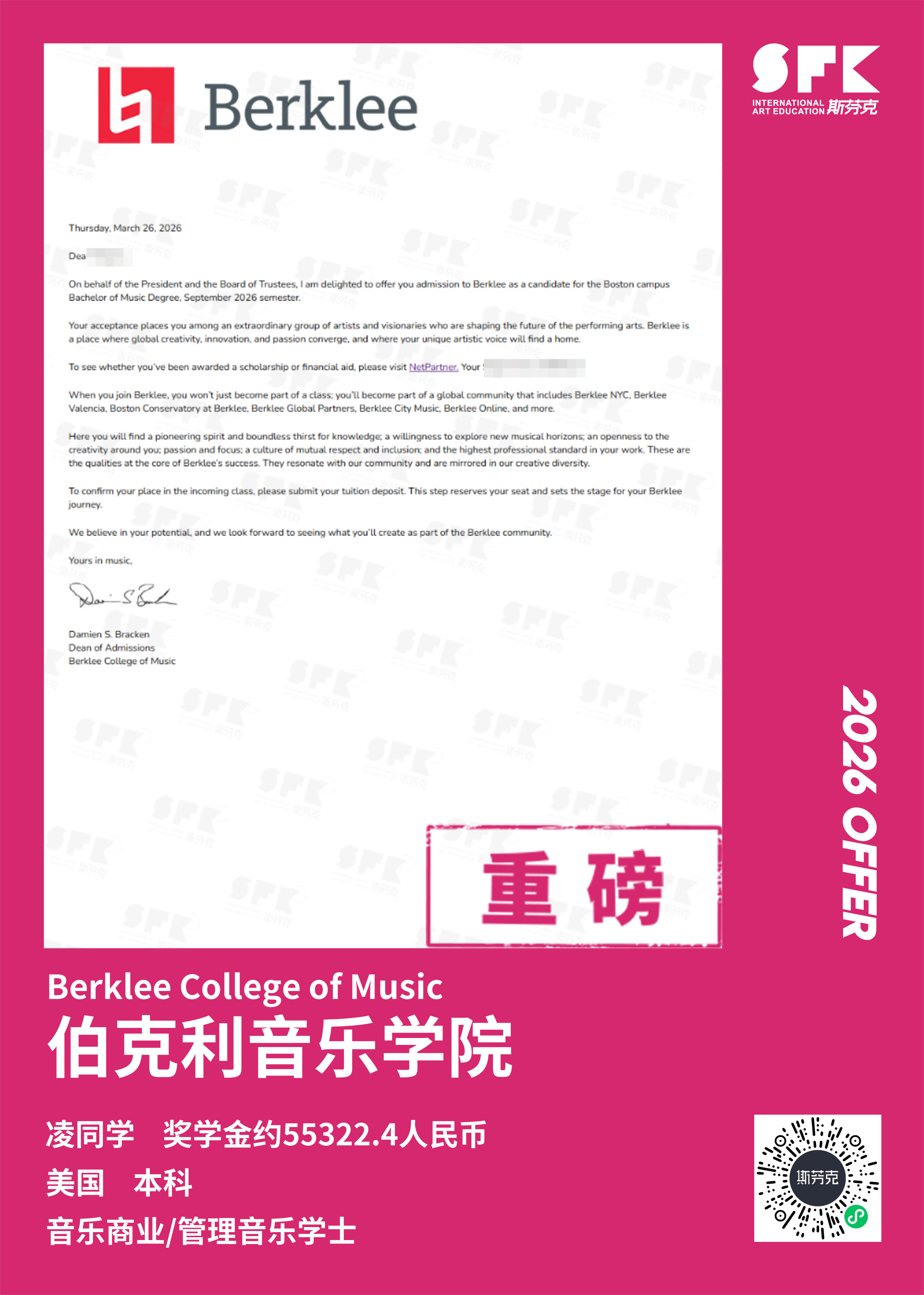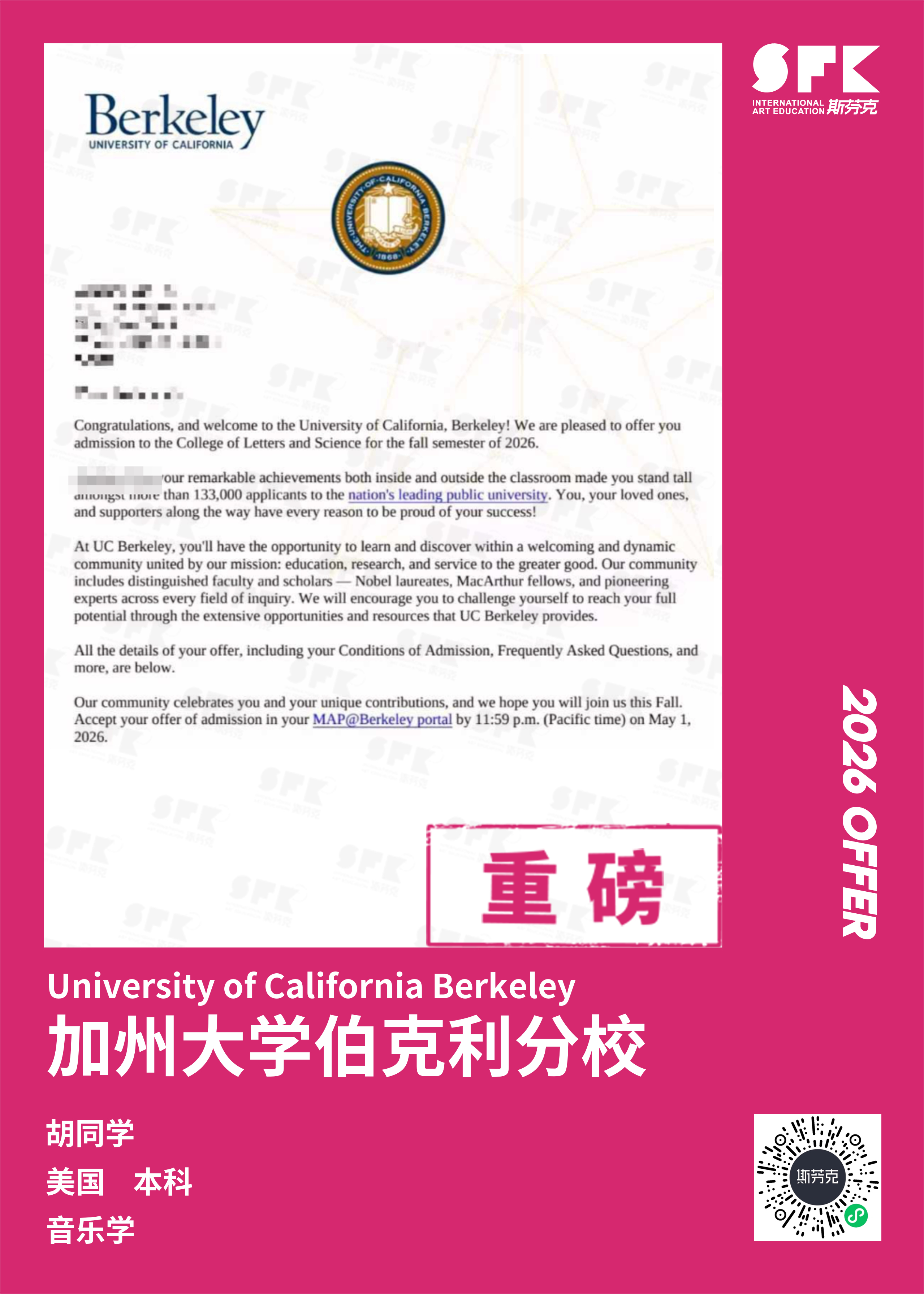 斯芬克音乐已帮助学员获得越来越多的国外音乐院校Offer