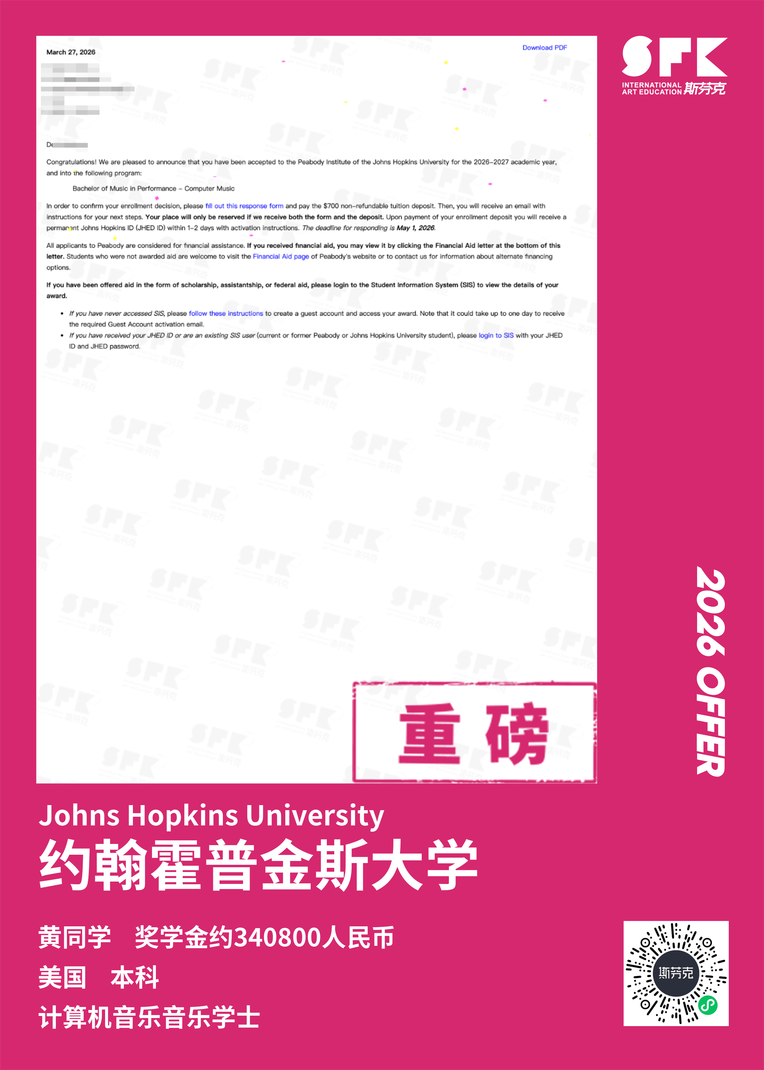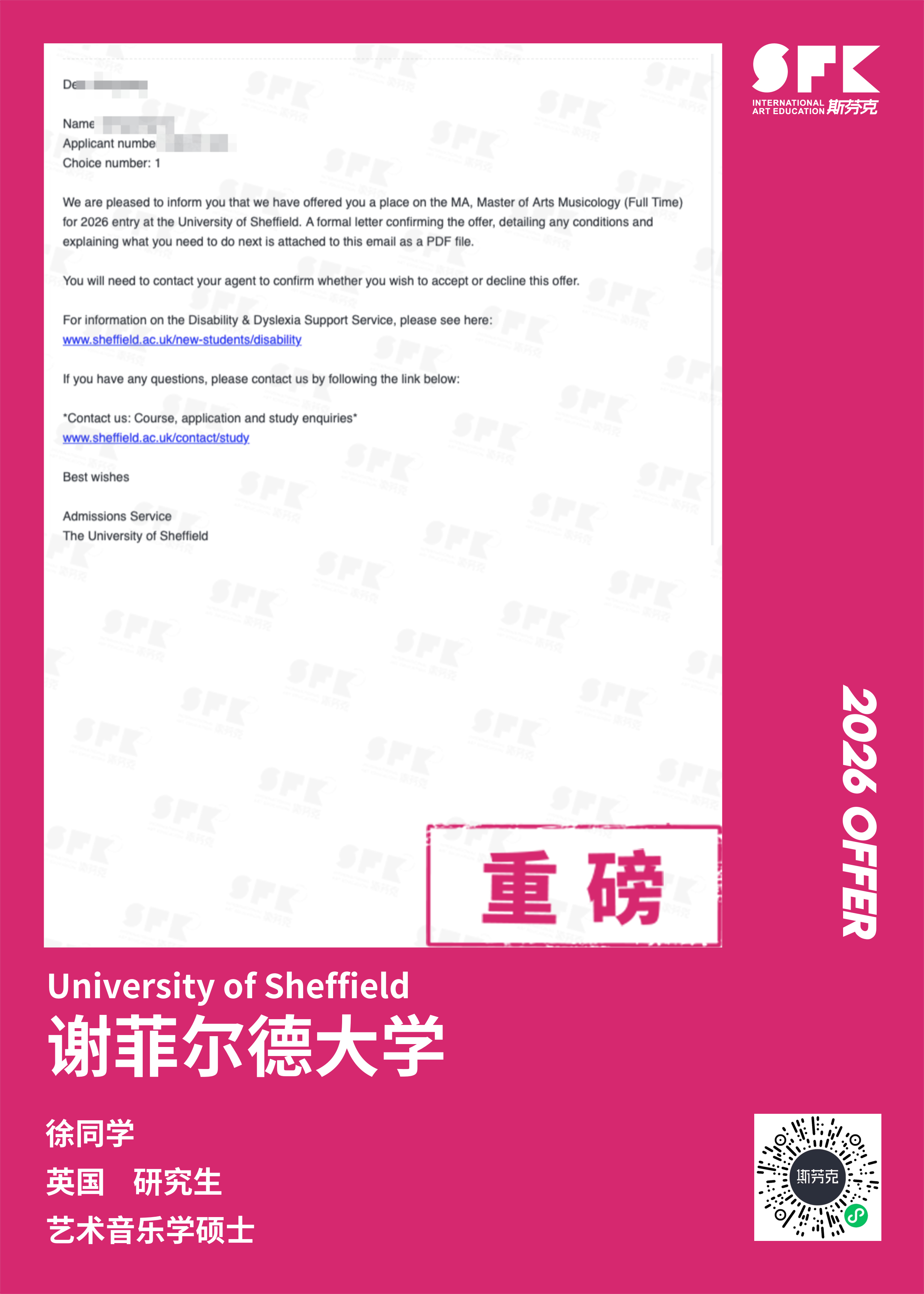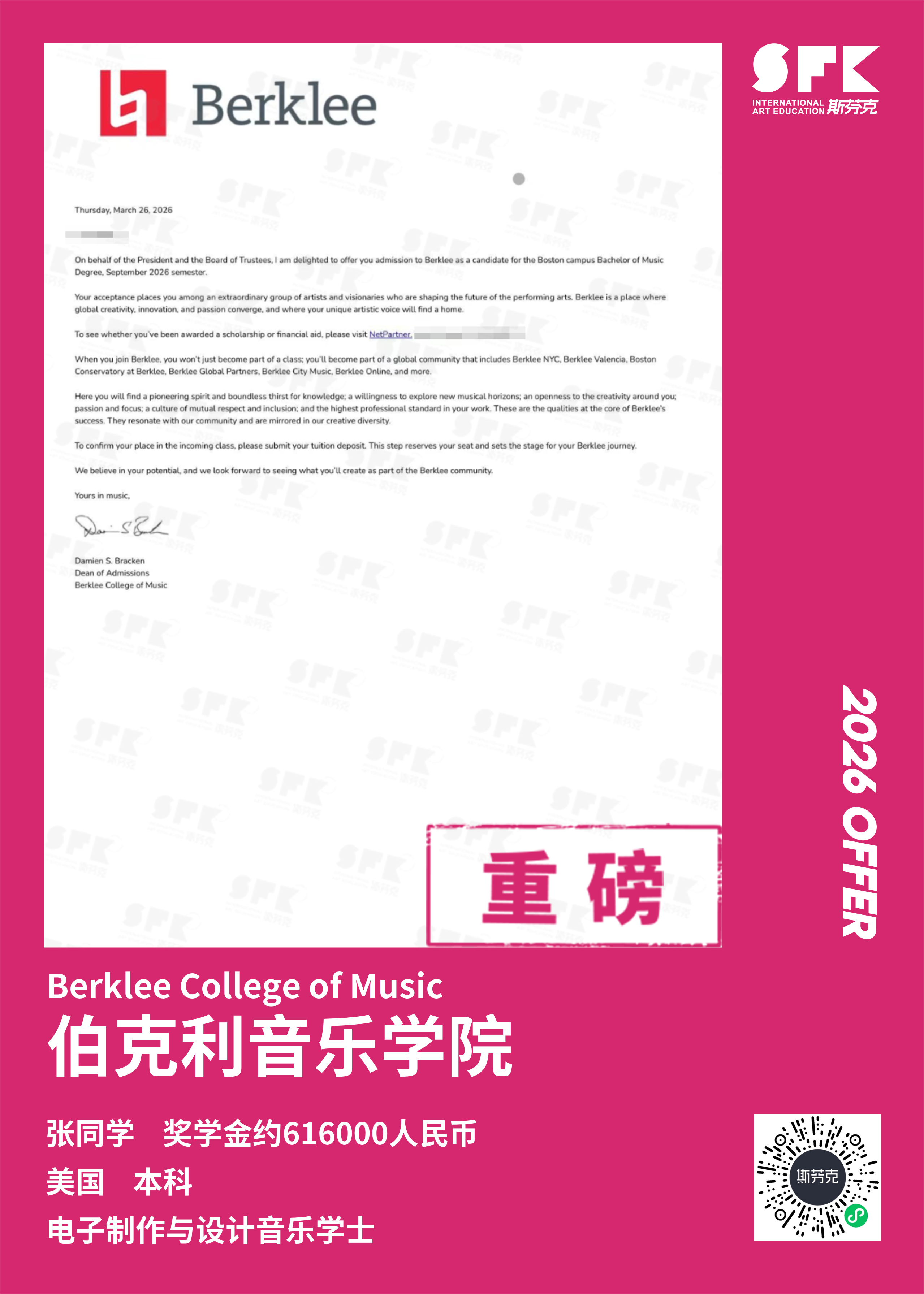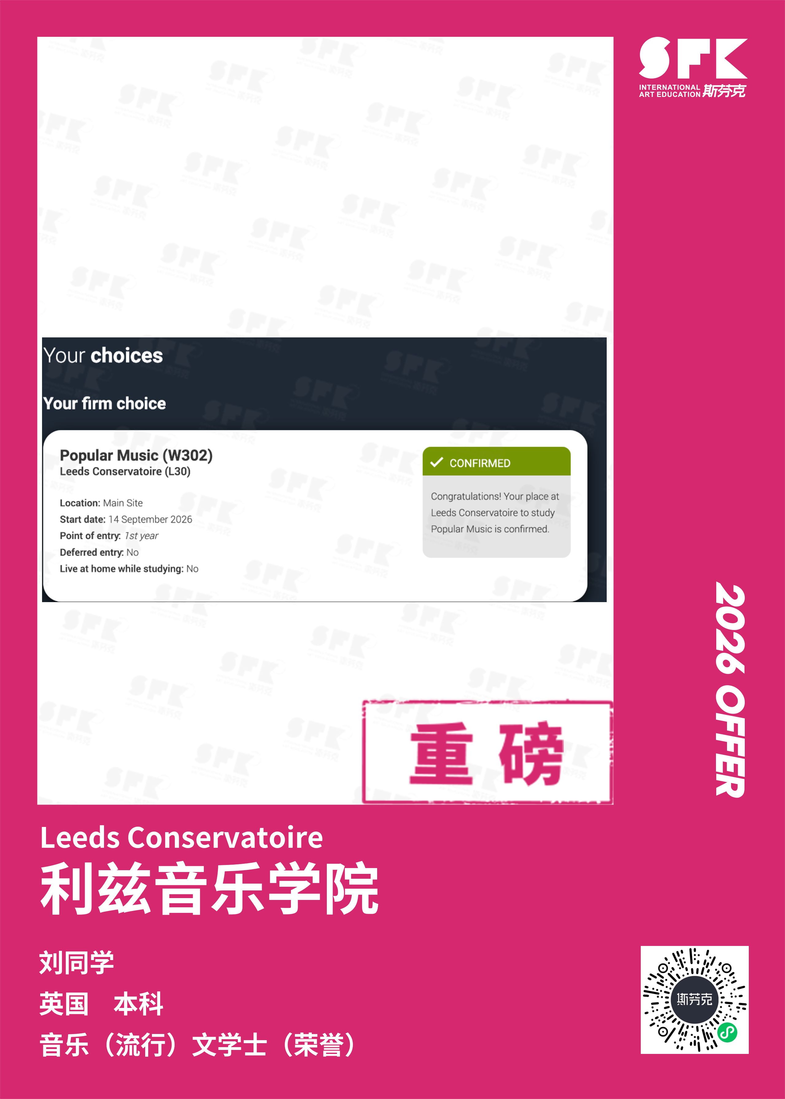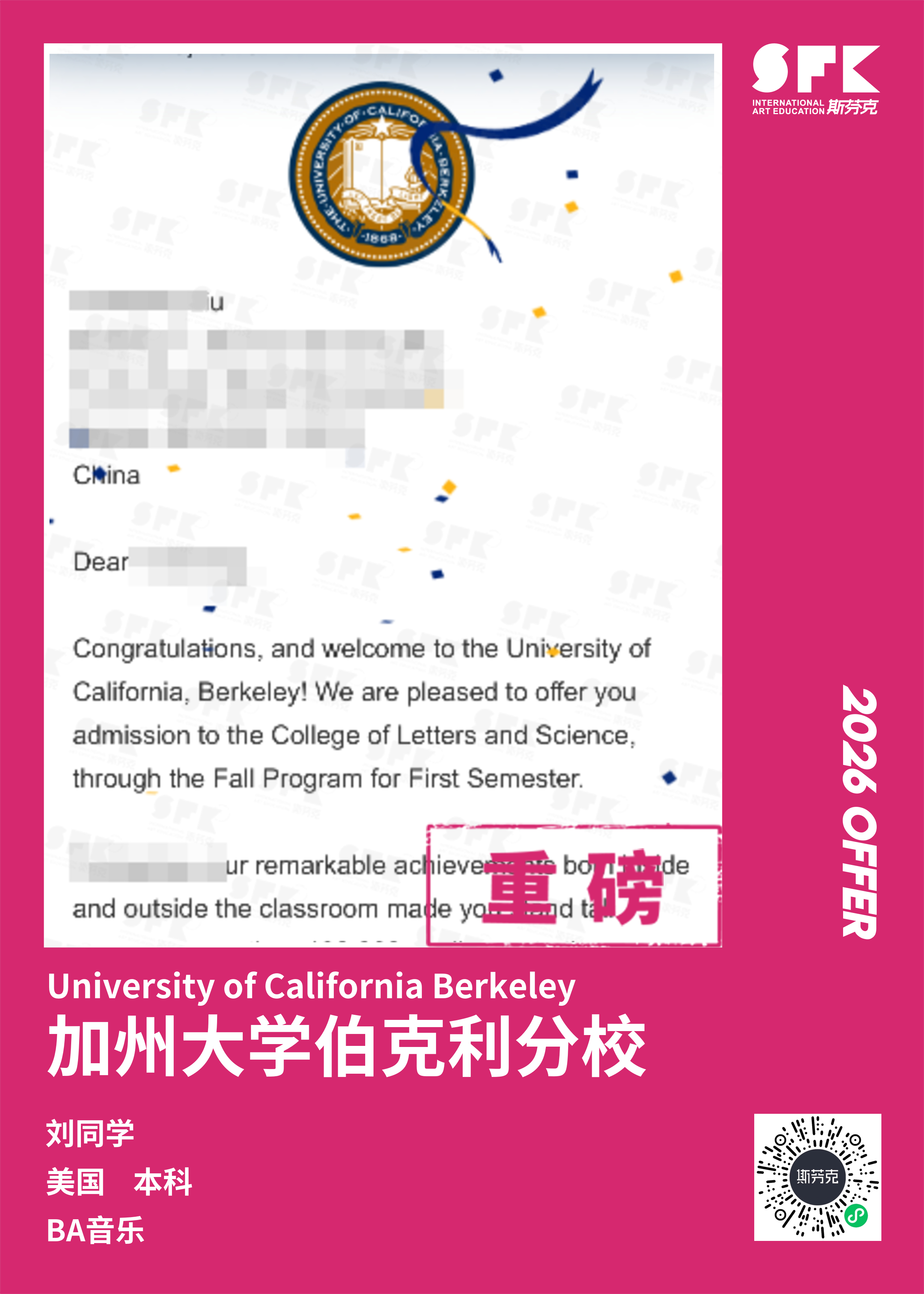 斯芬克音乐已帮助学员获得越来越多的国外音乐院校Offer