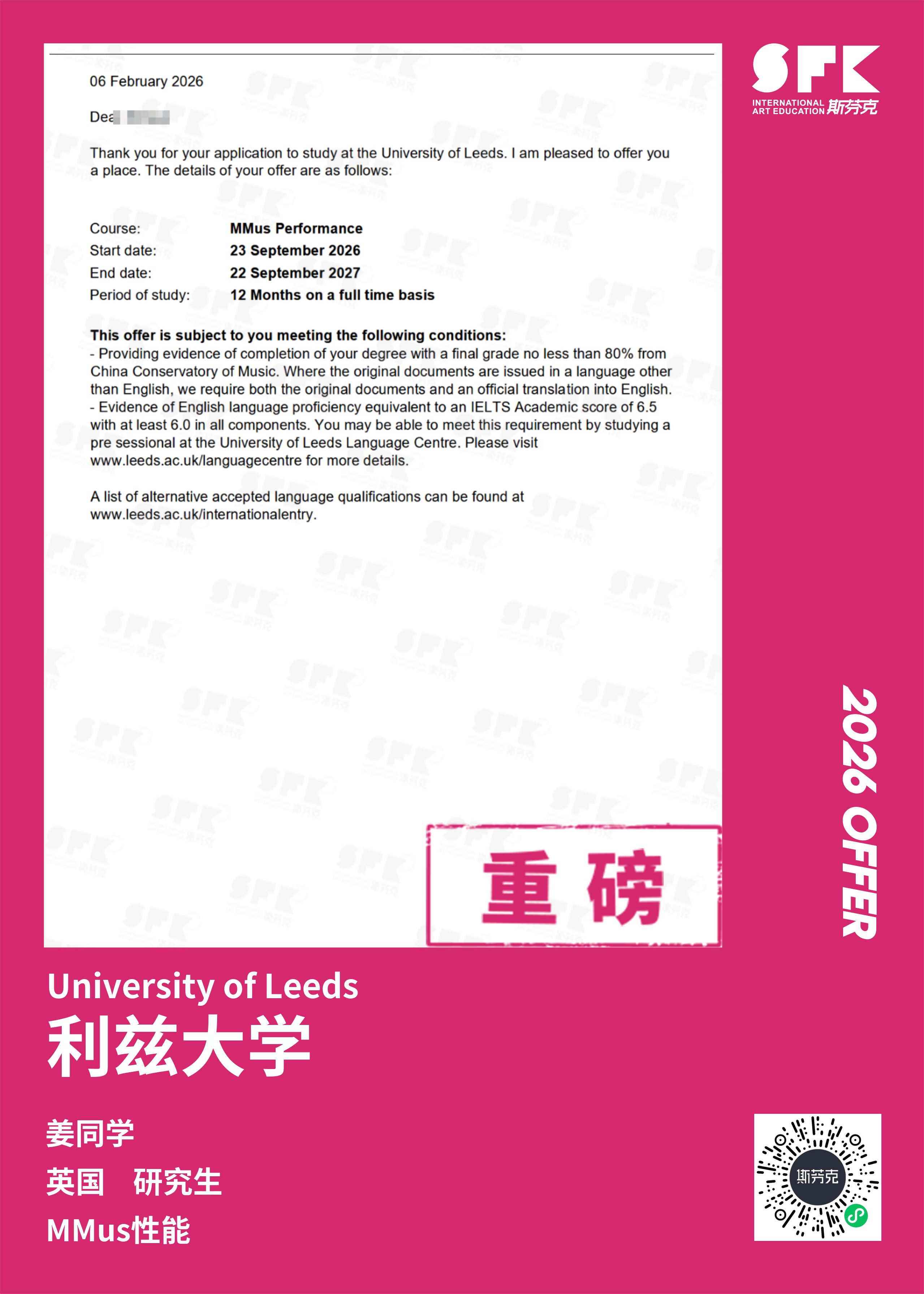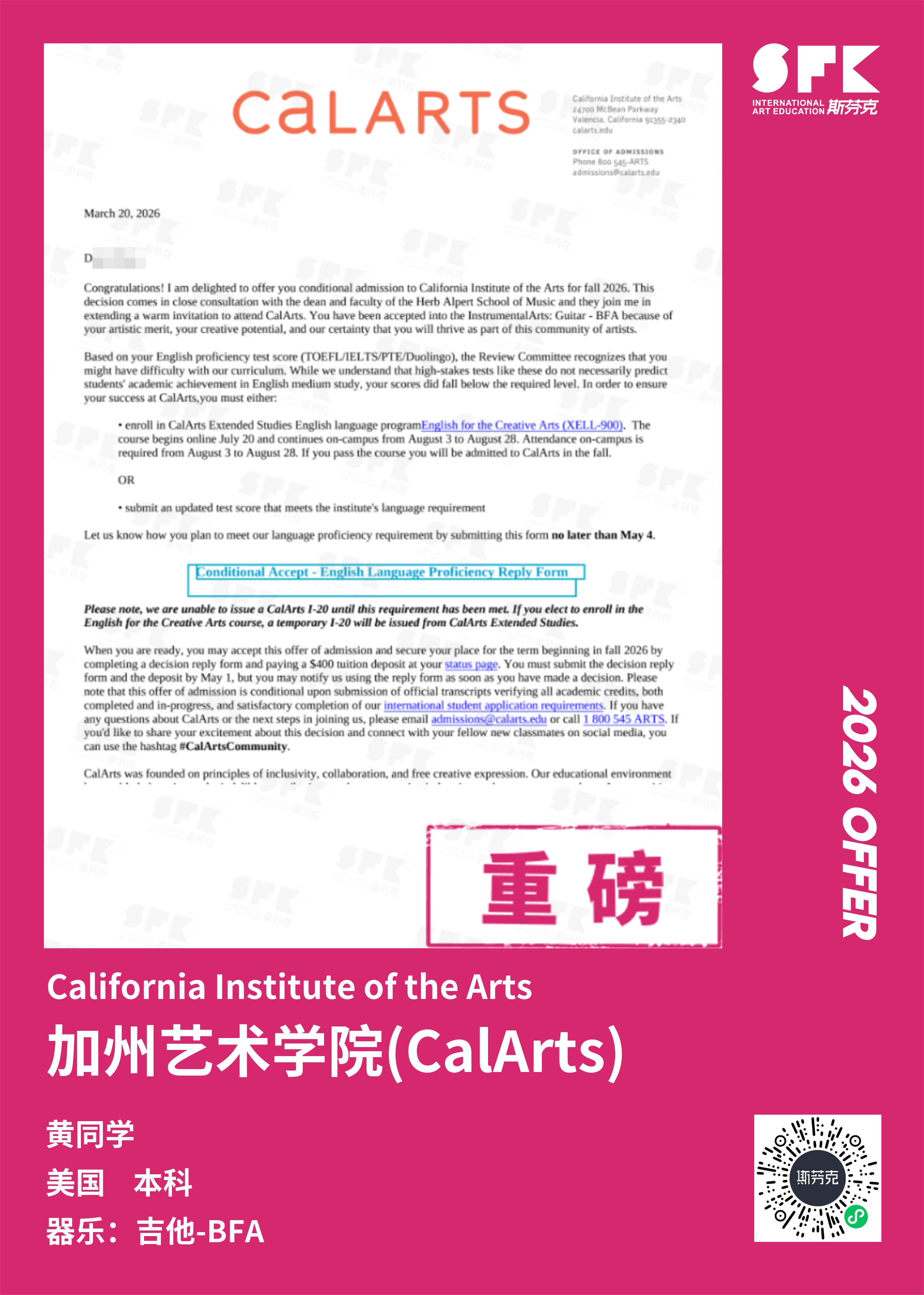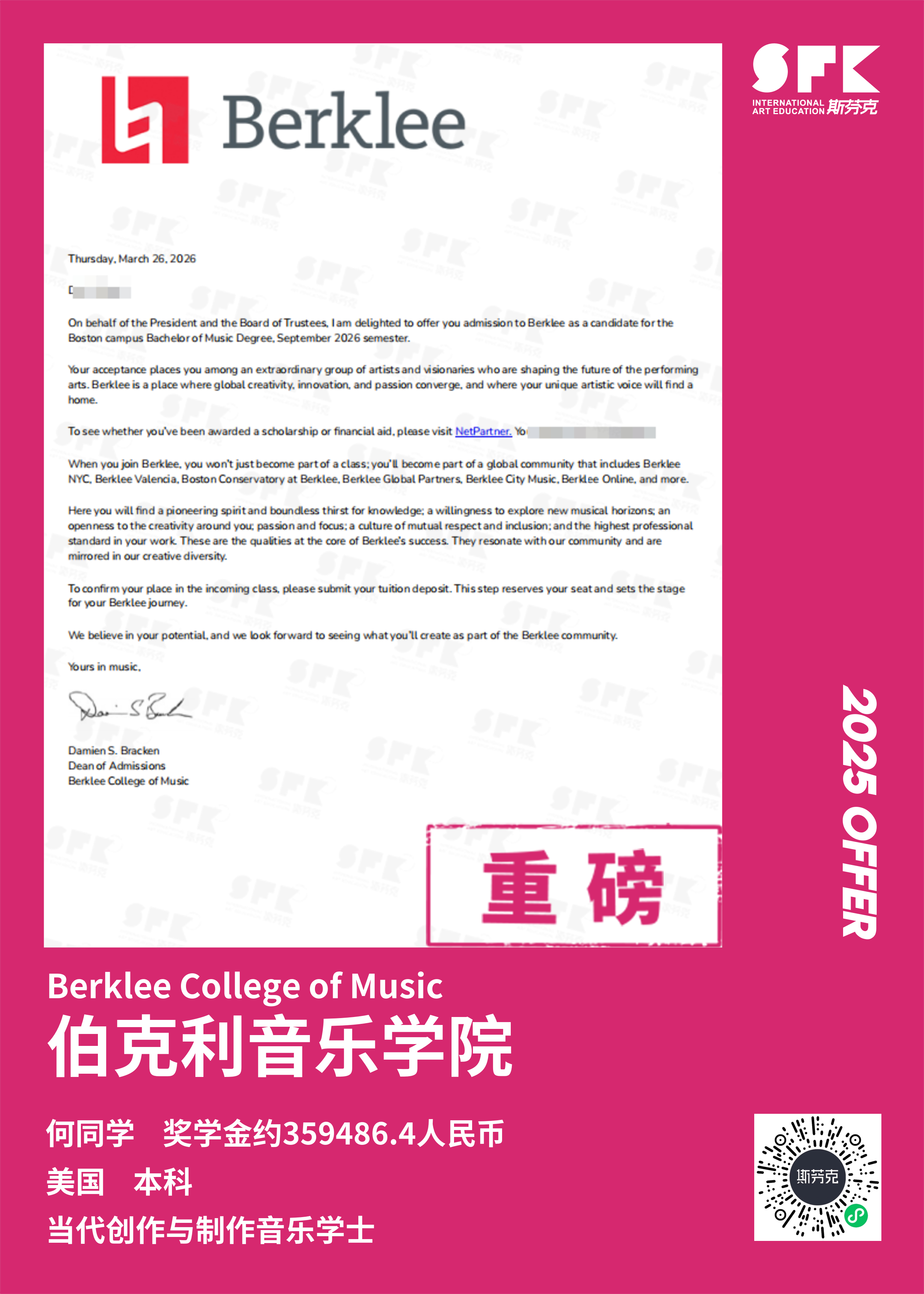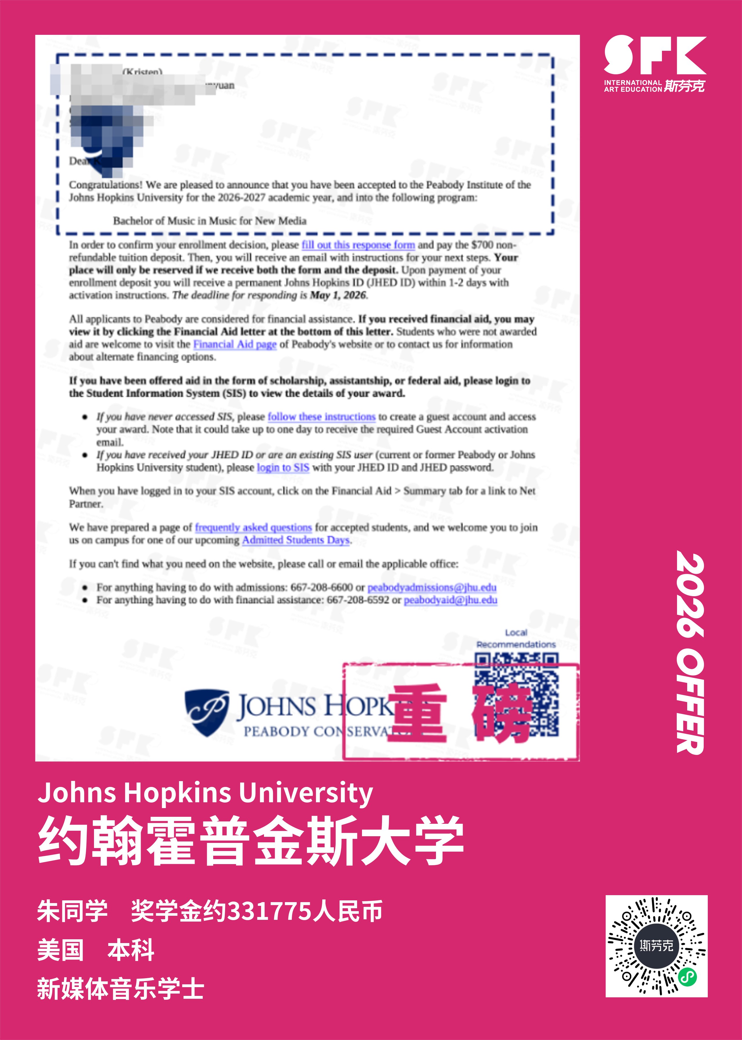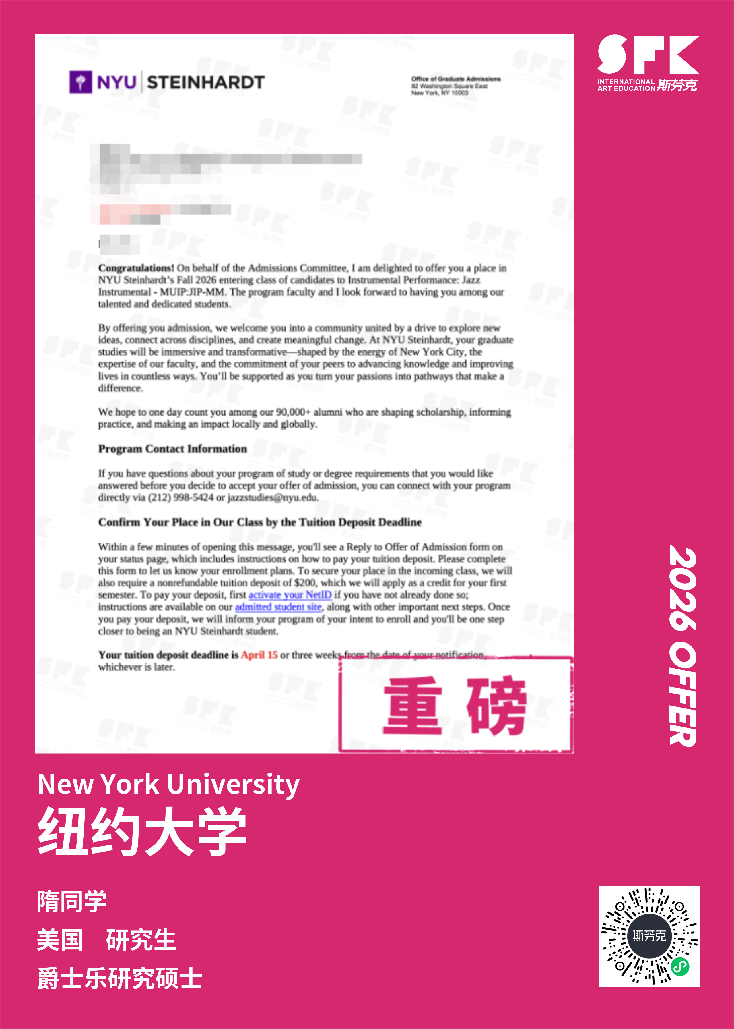 斯芬克音乐已帮助学员获得越来越多的国外音乐院校Offer