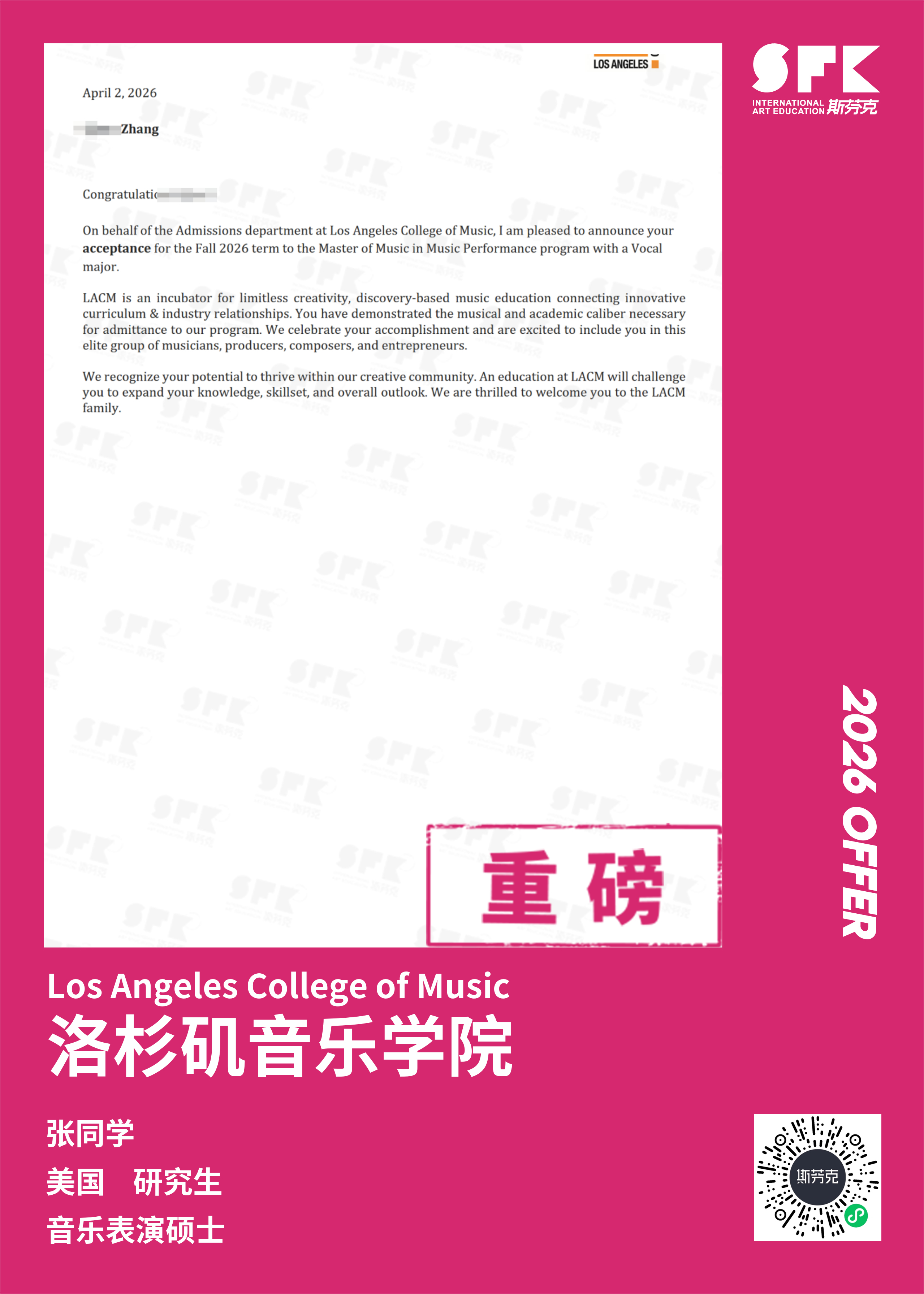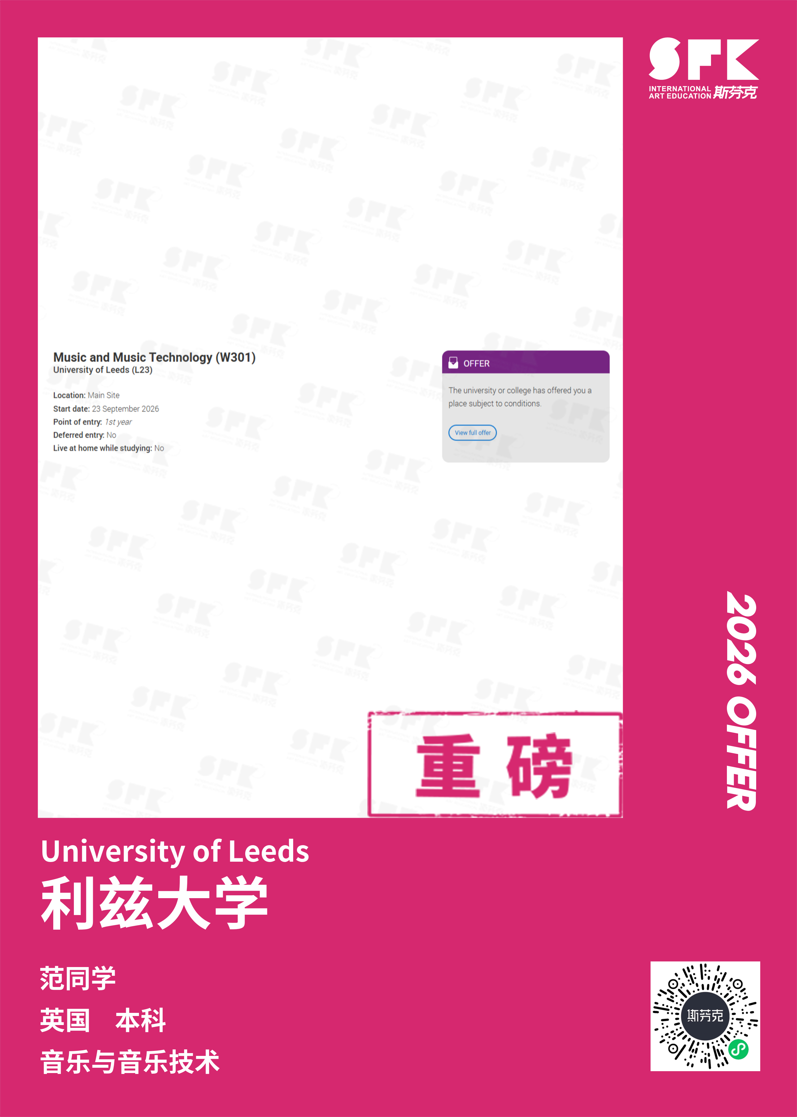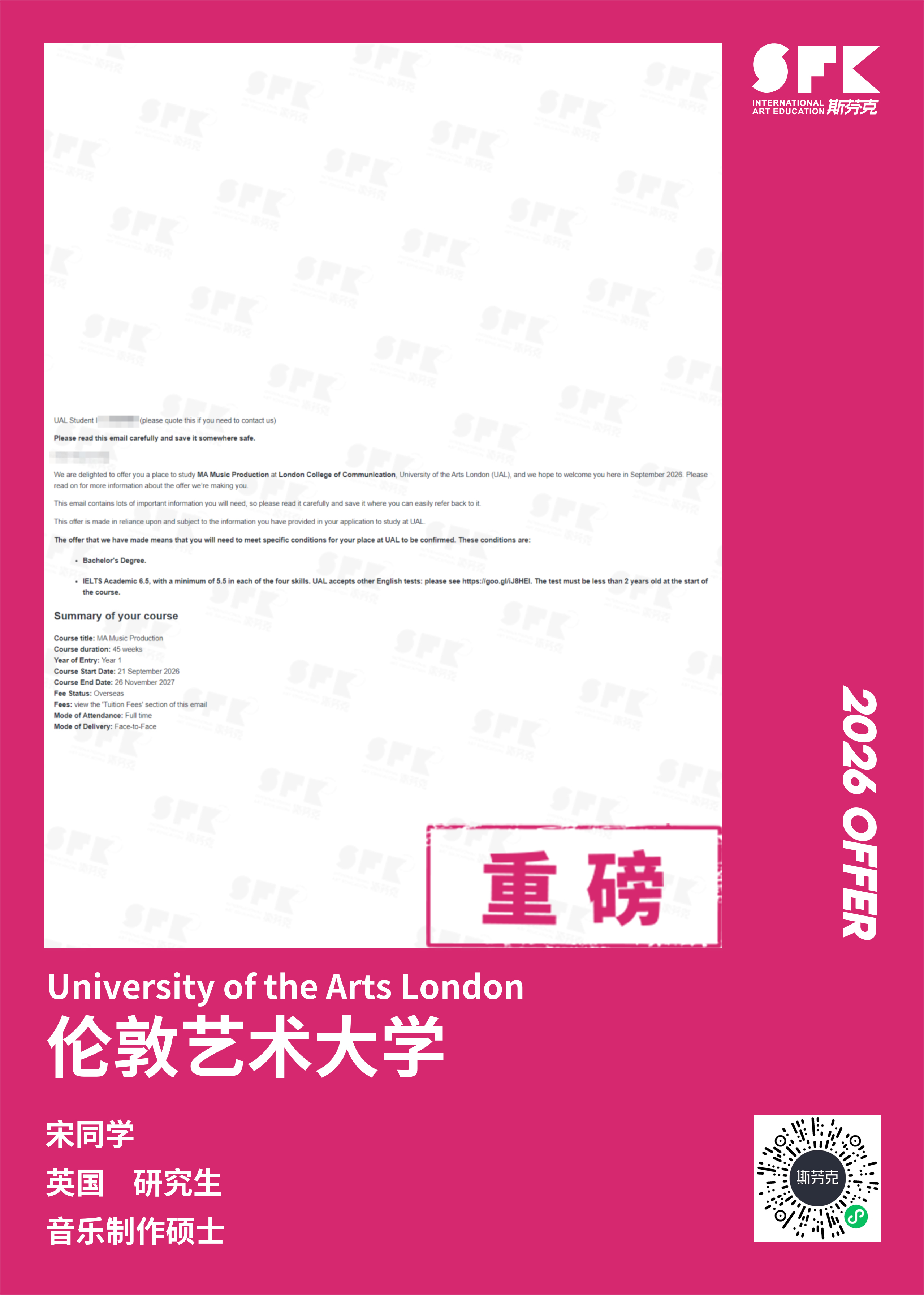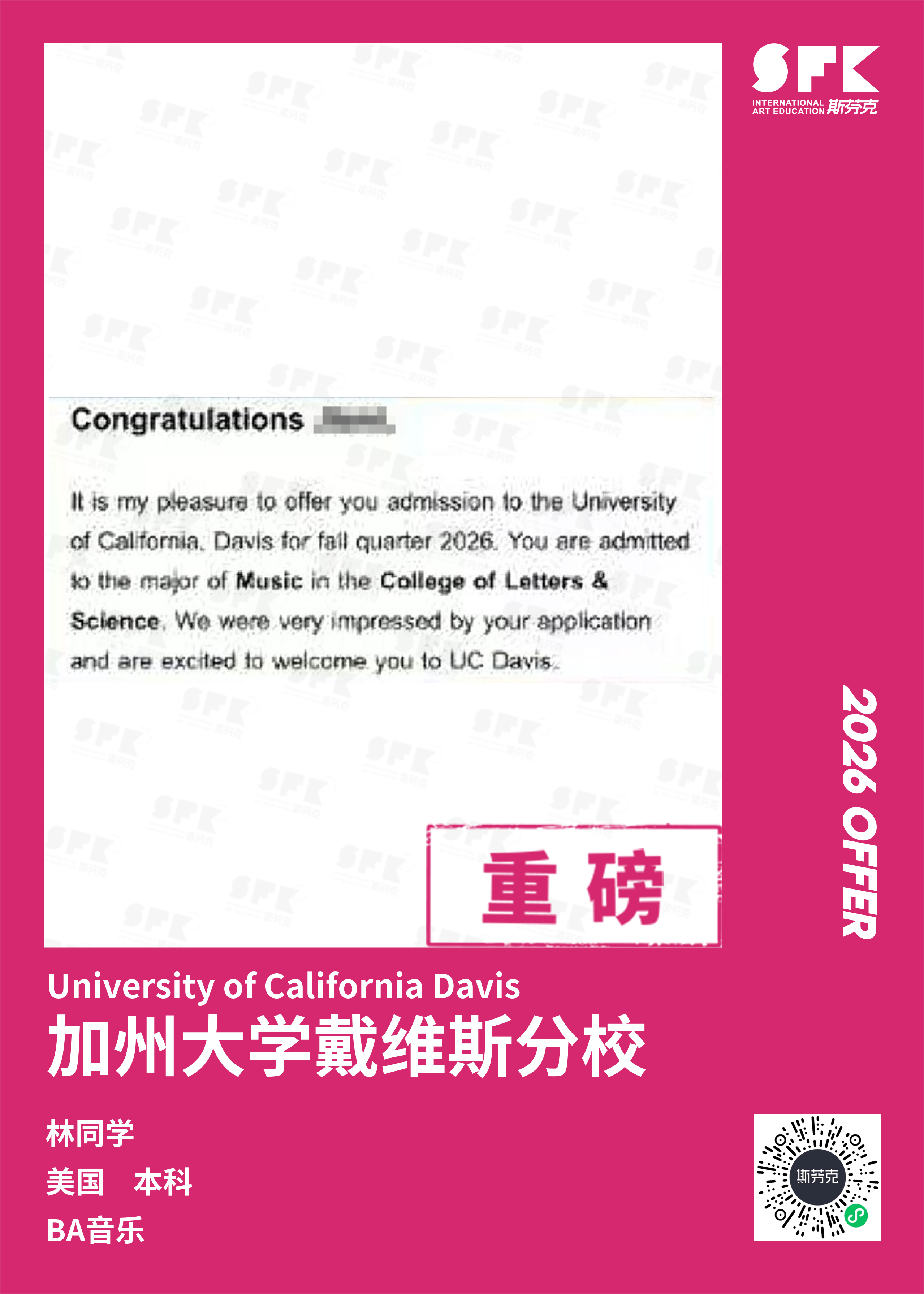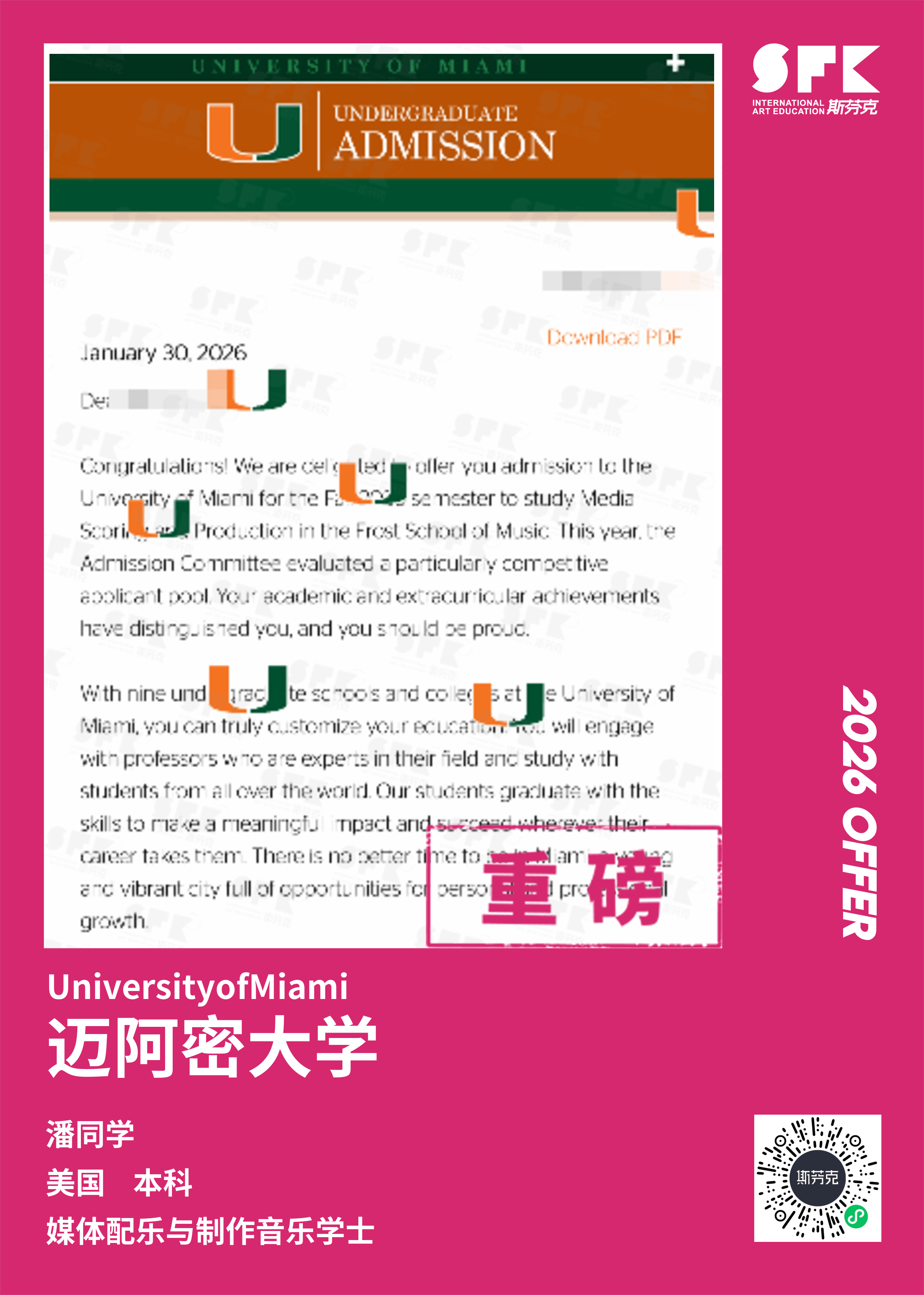 斯芬克音乐已帮助学员获得越来越多的国外音乐院校Offer