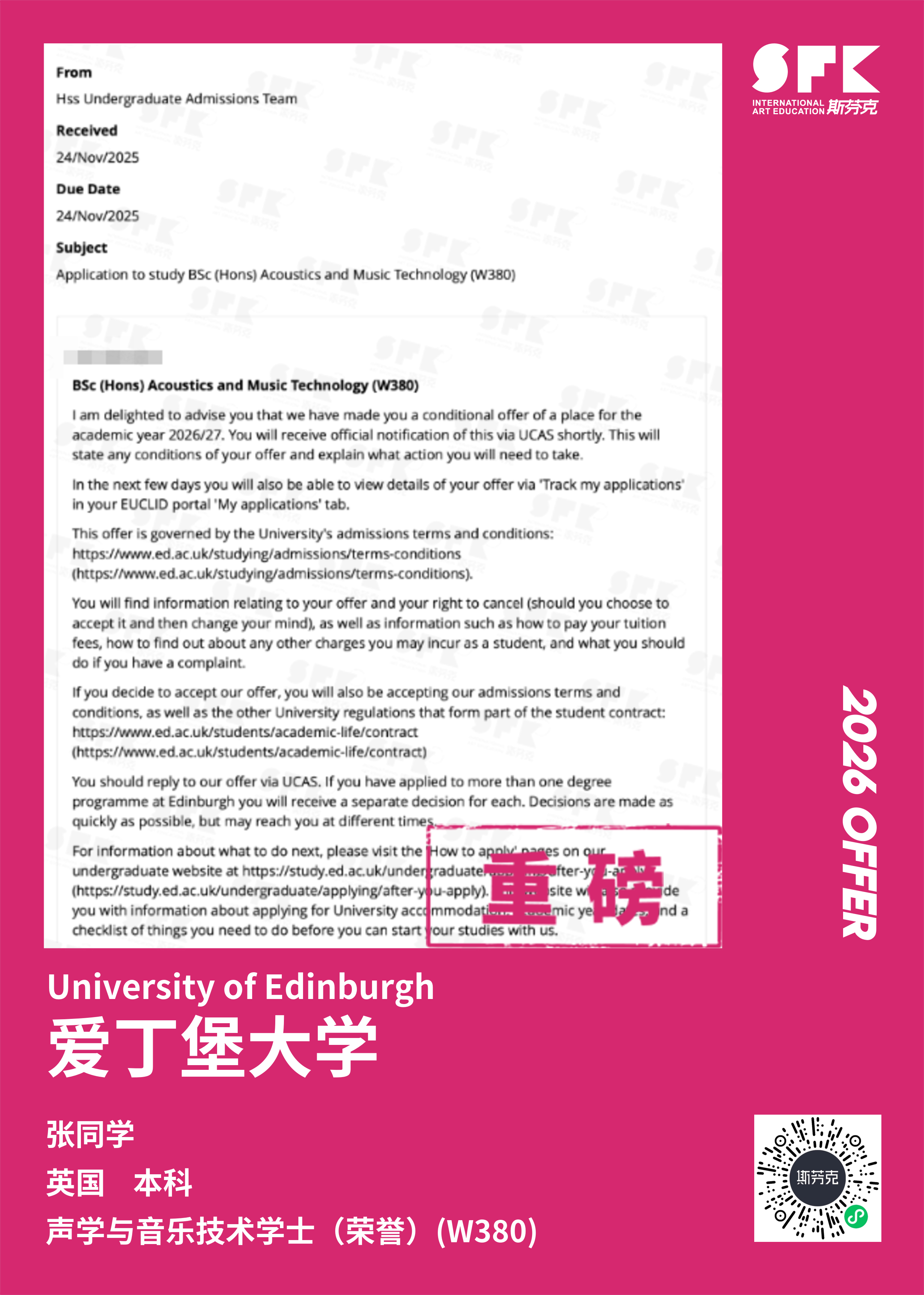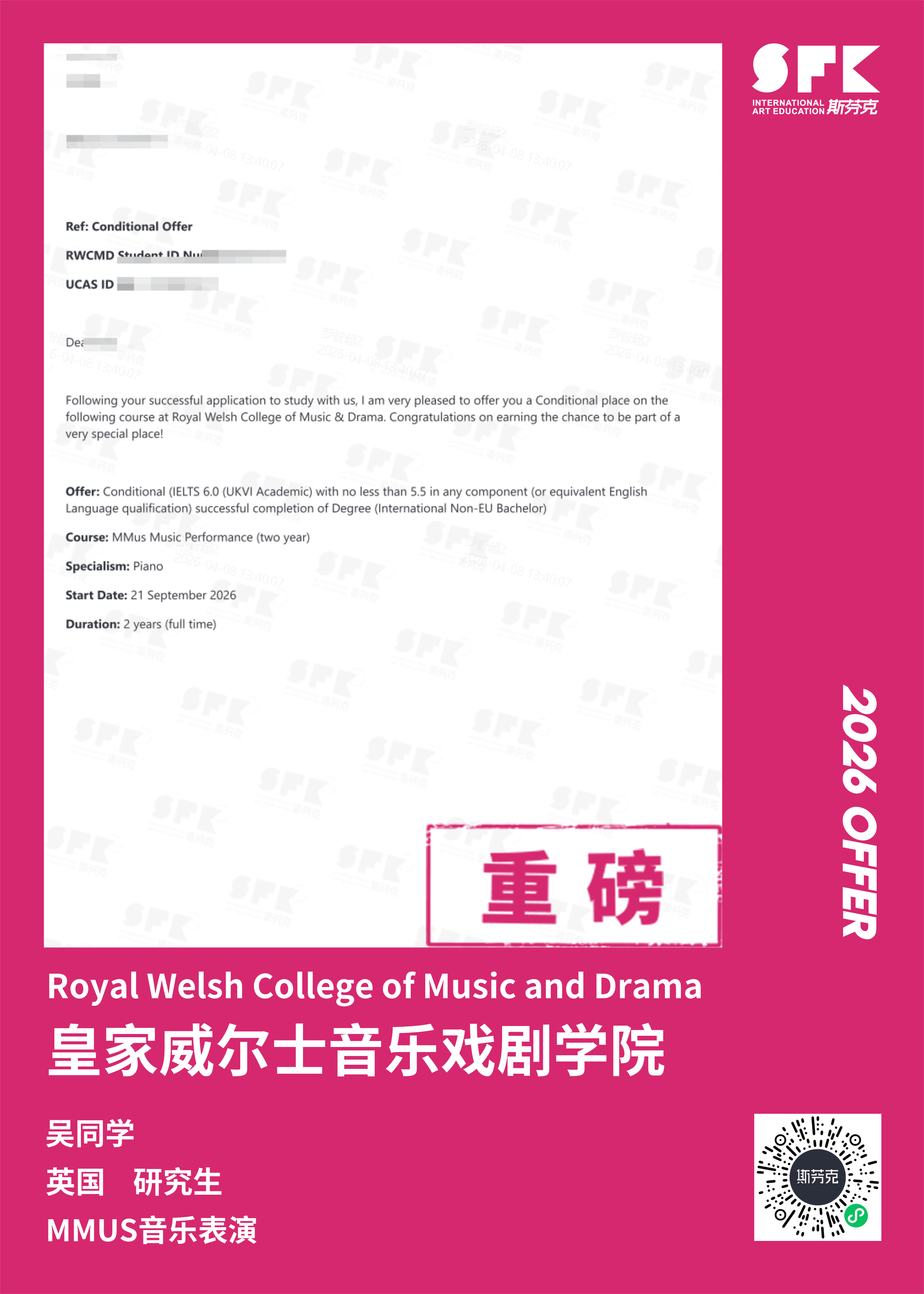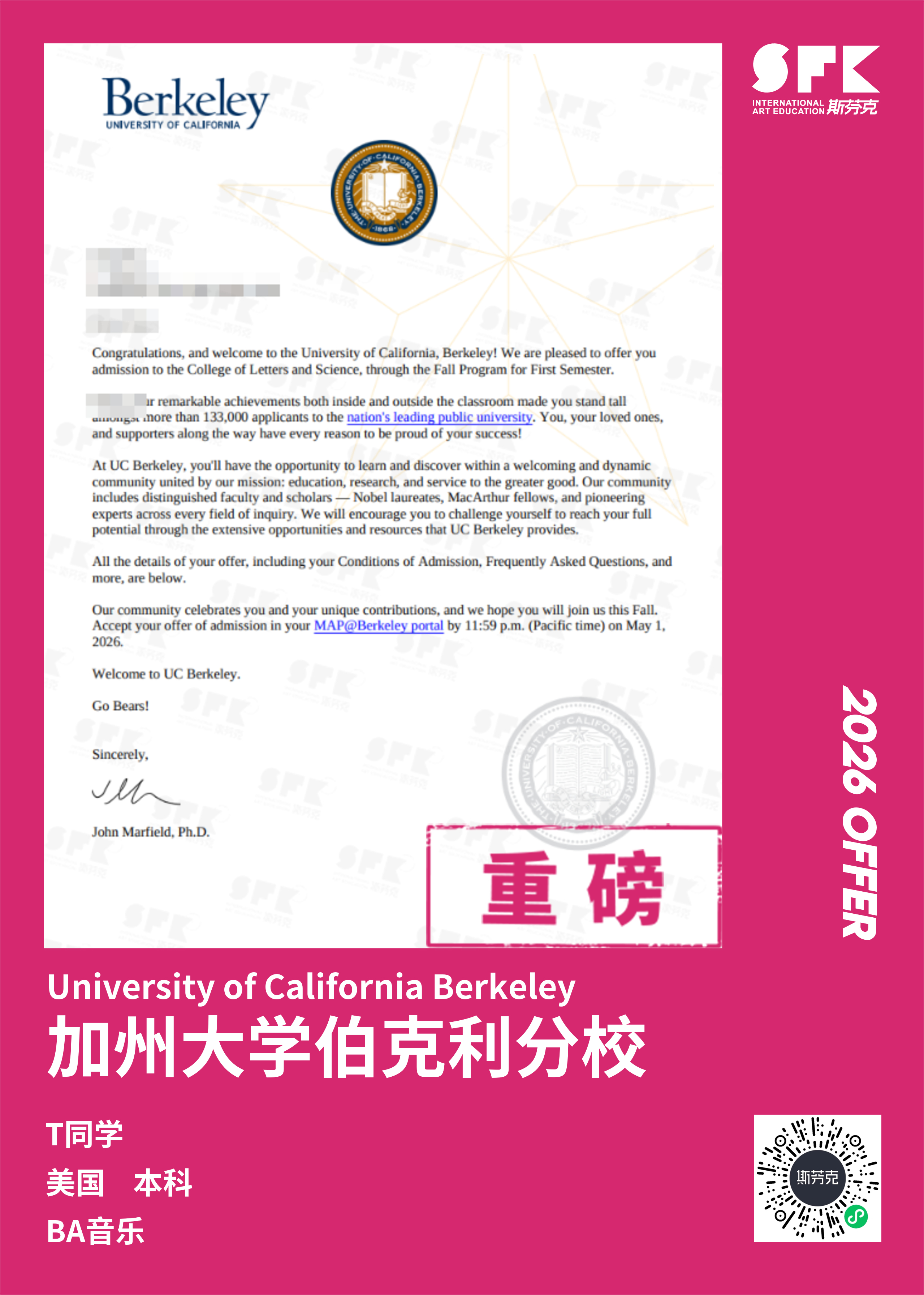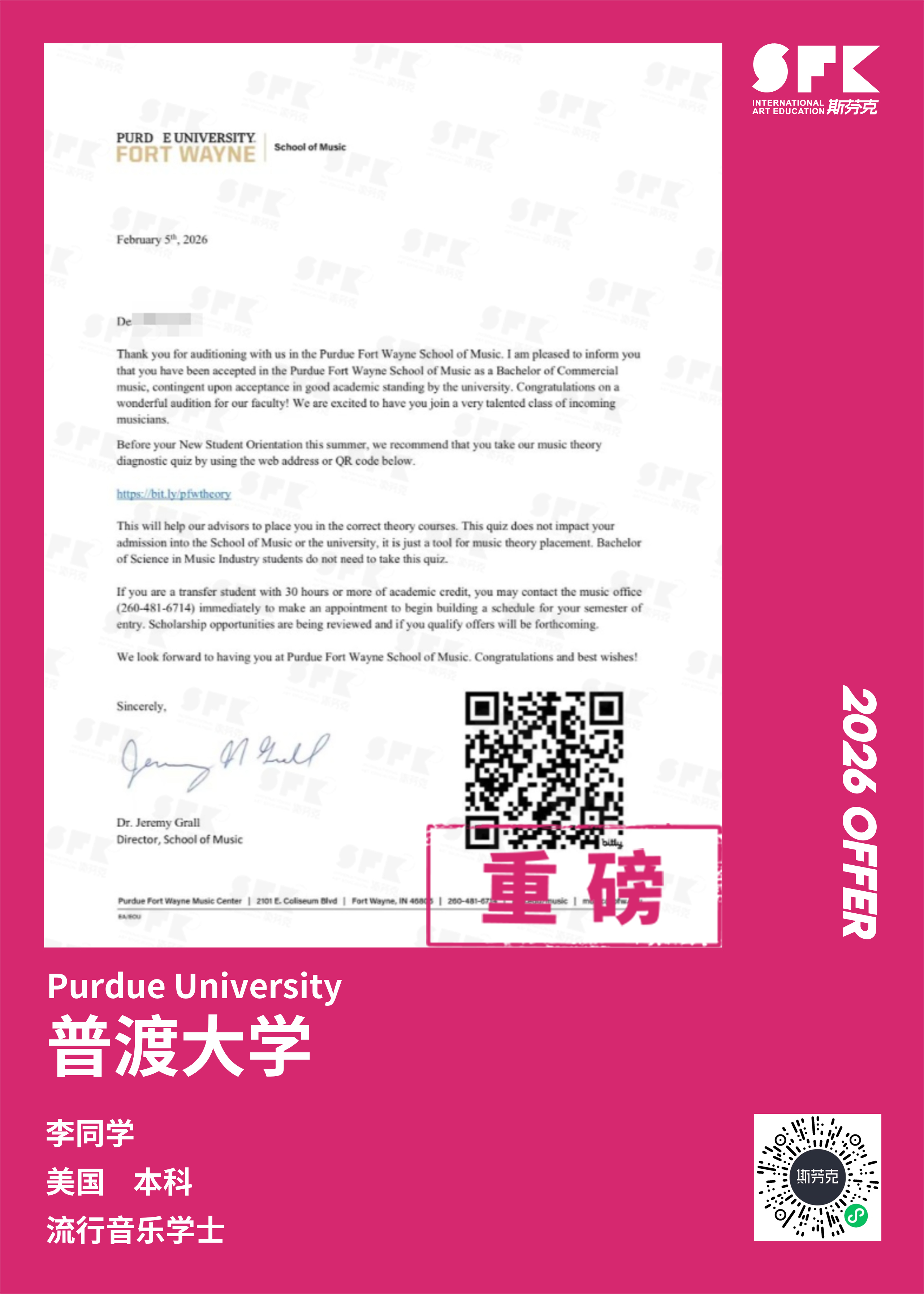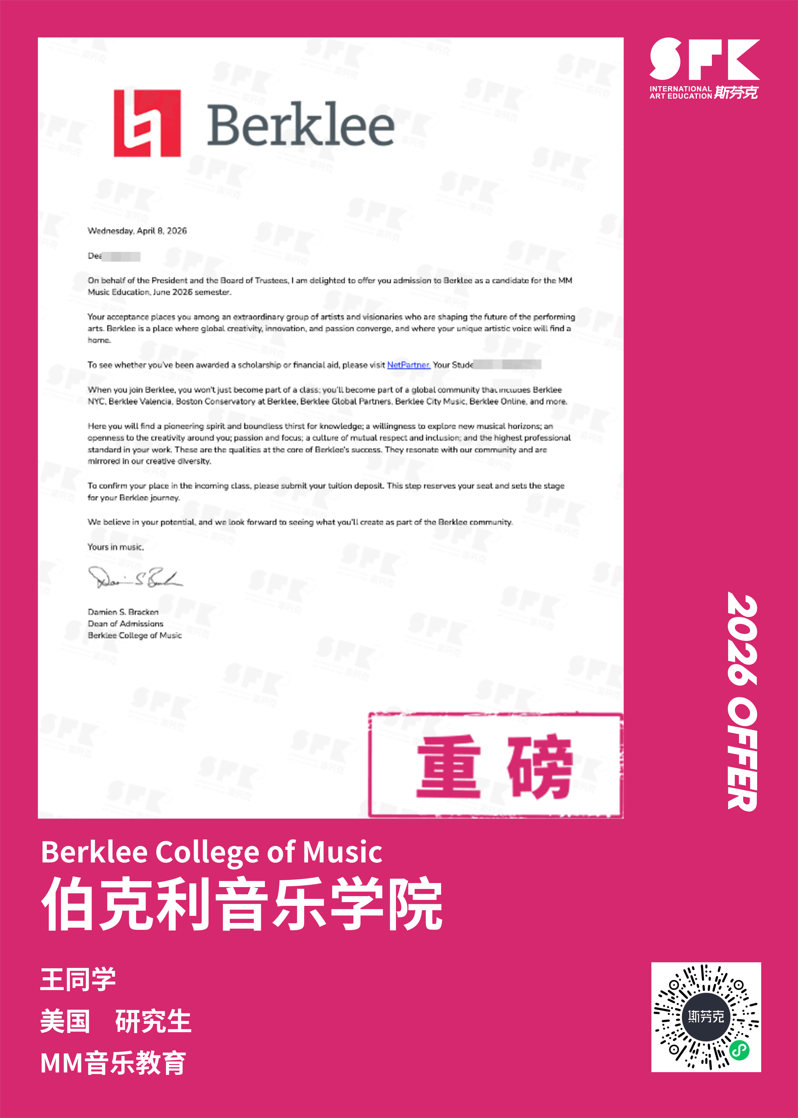 斯芬克音乐已帮助学员获得越来越多的国外音乐院校Offer
