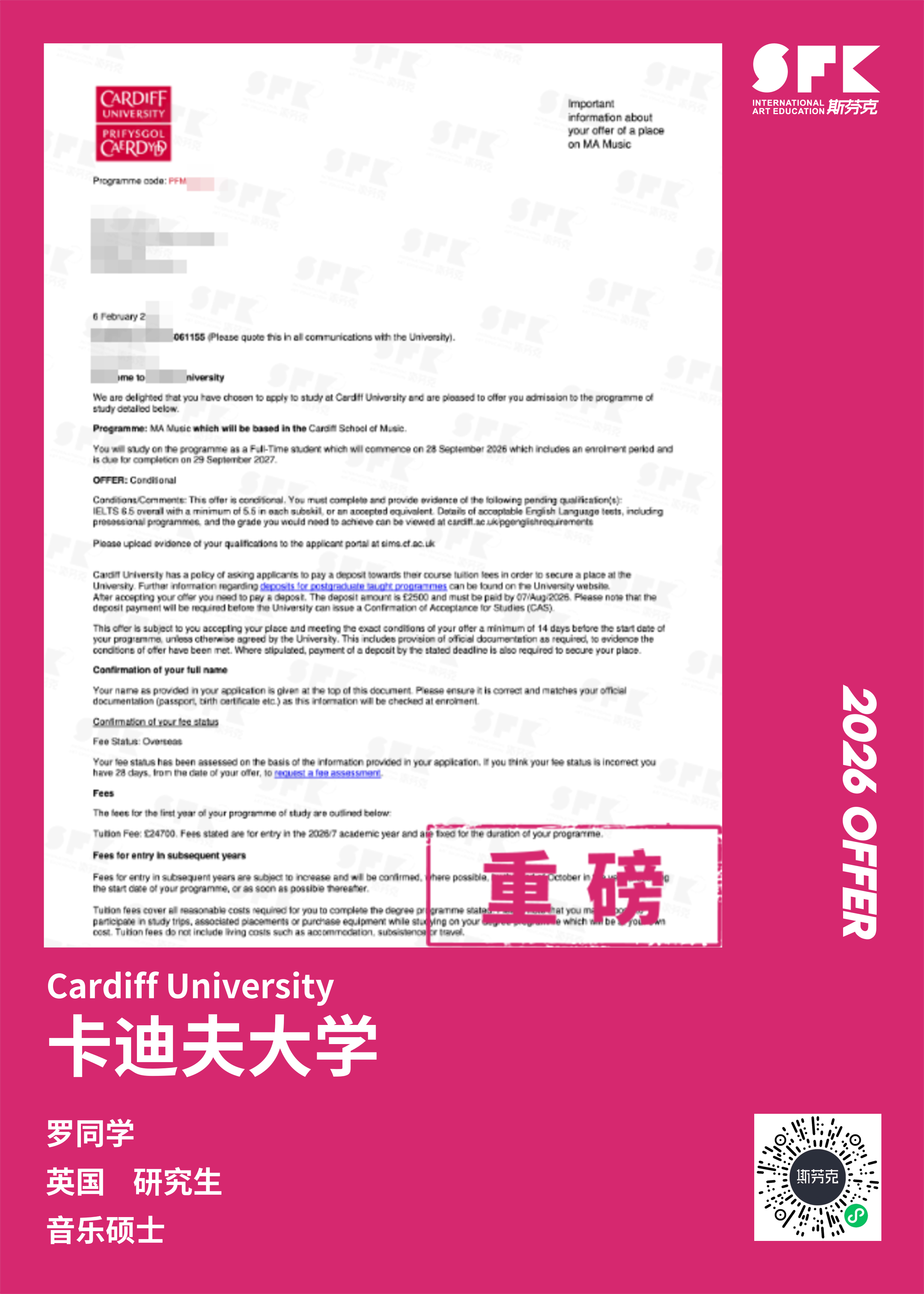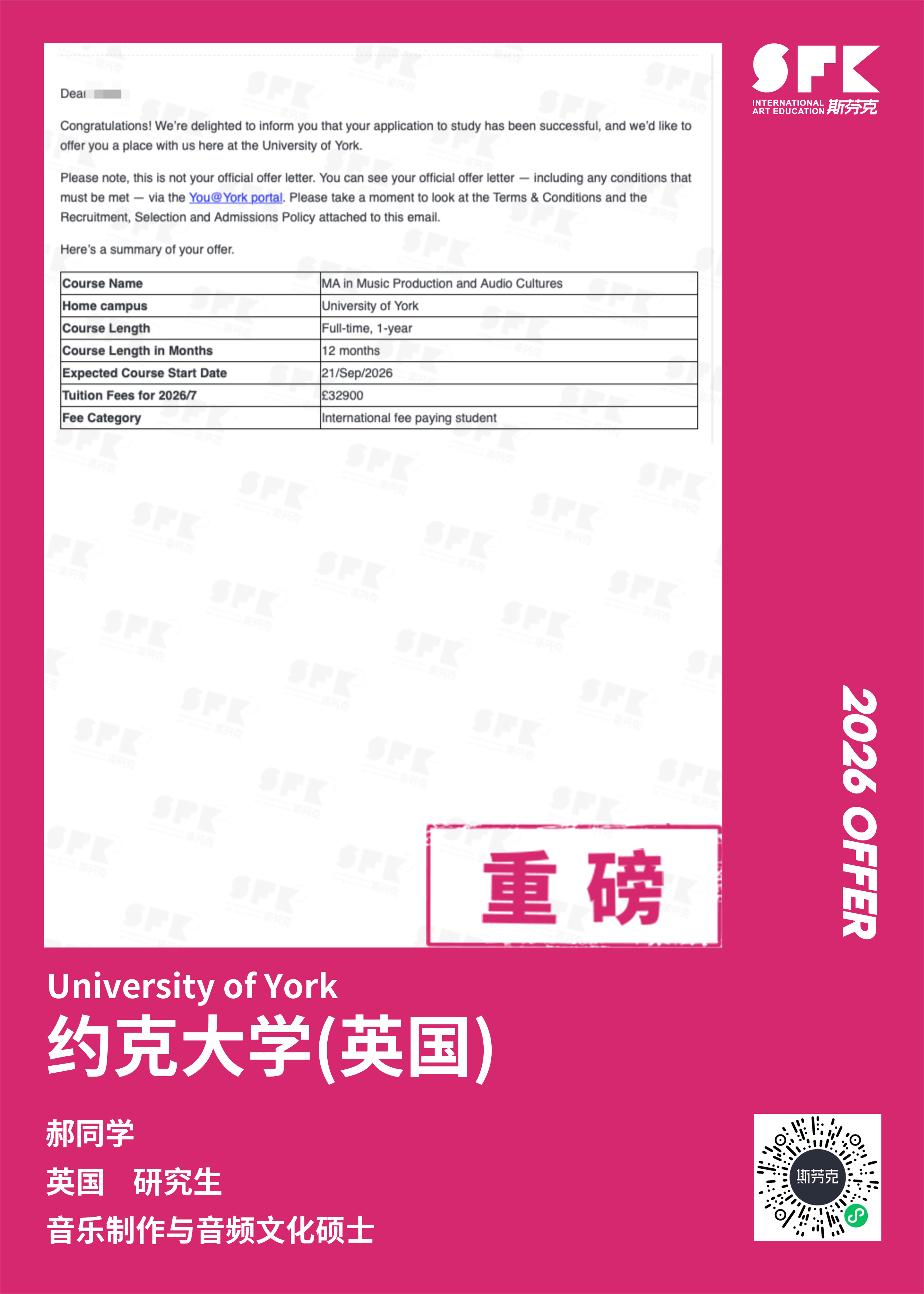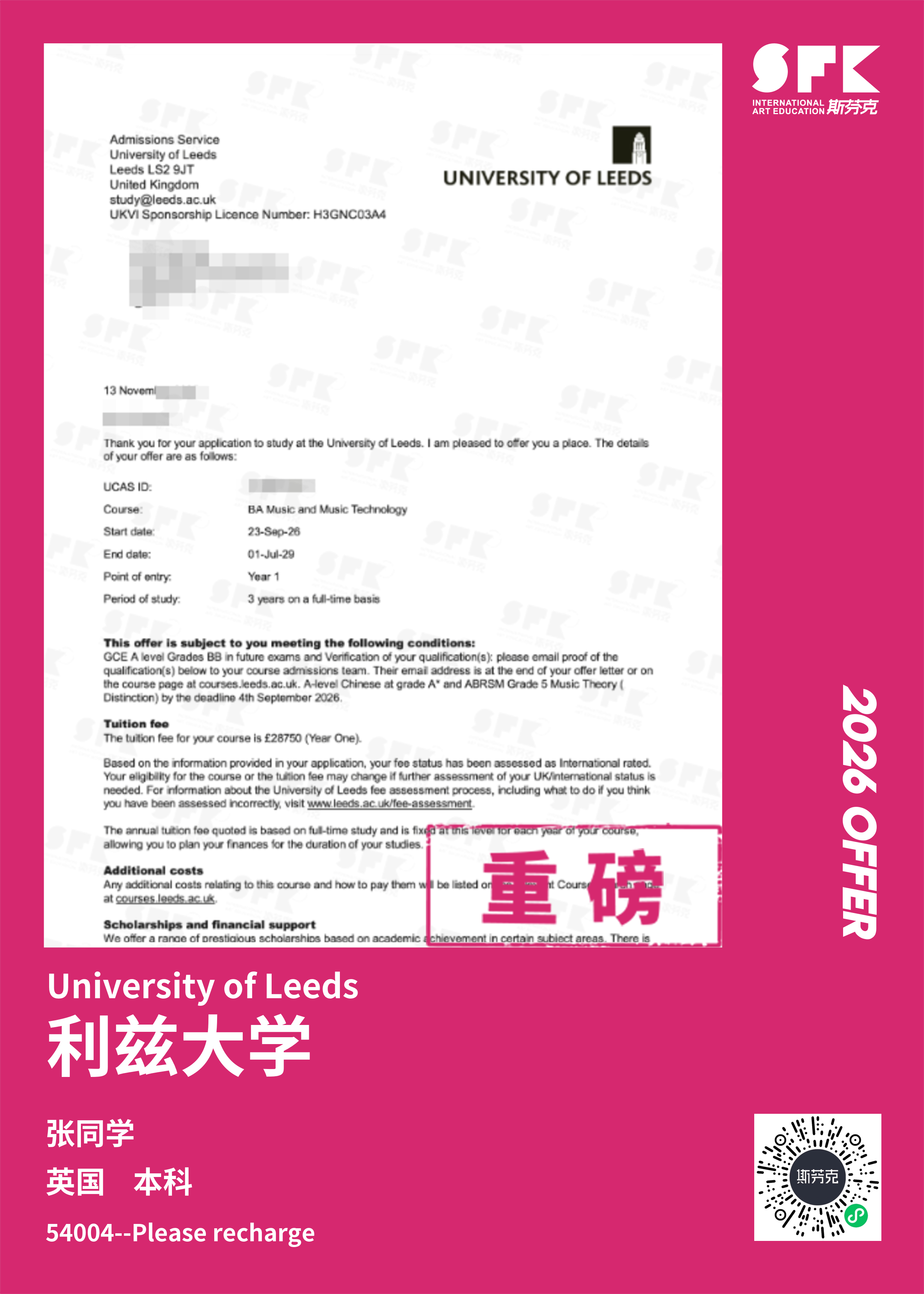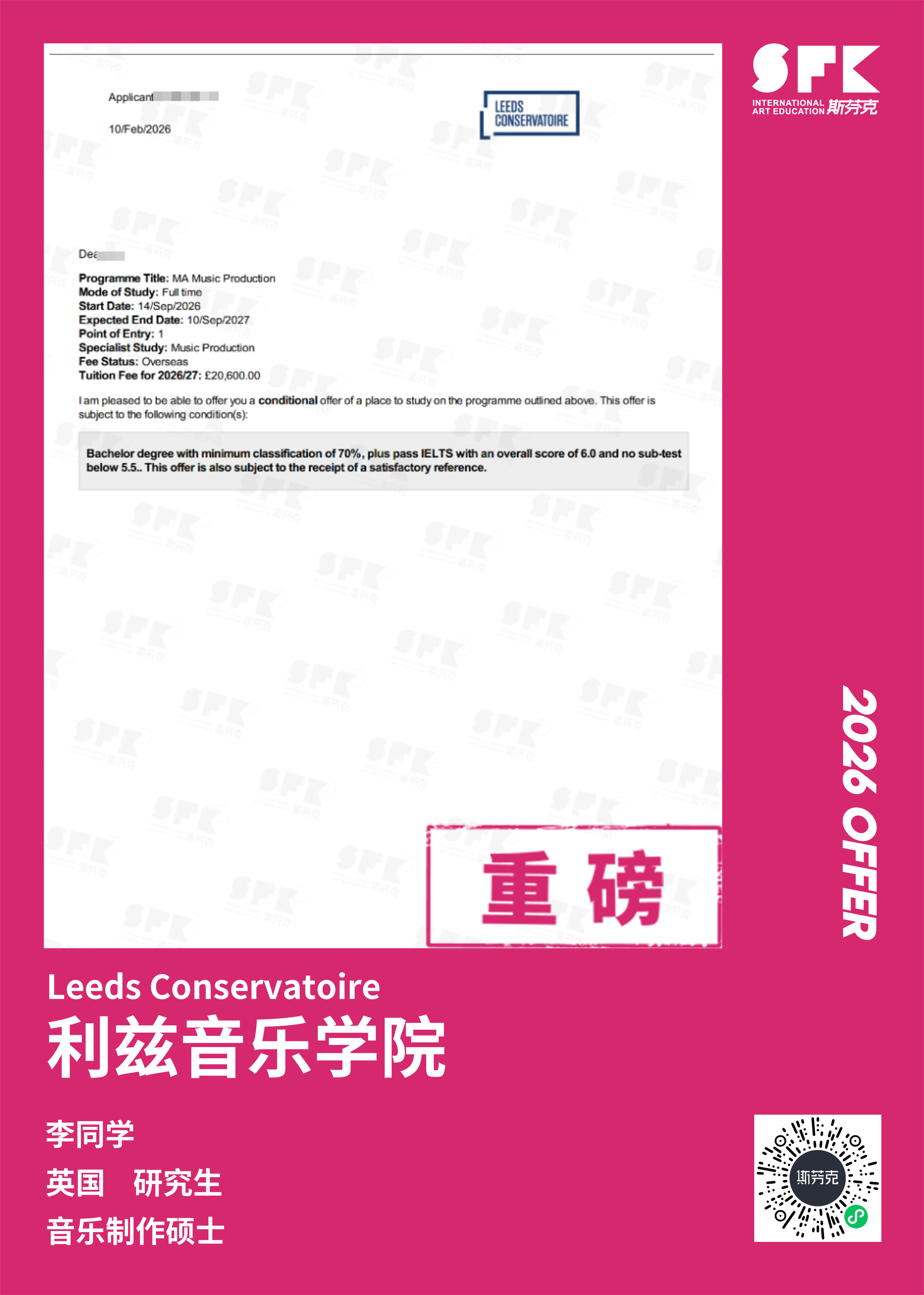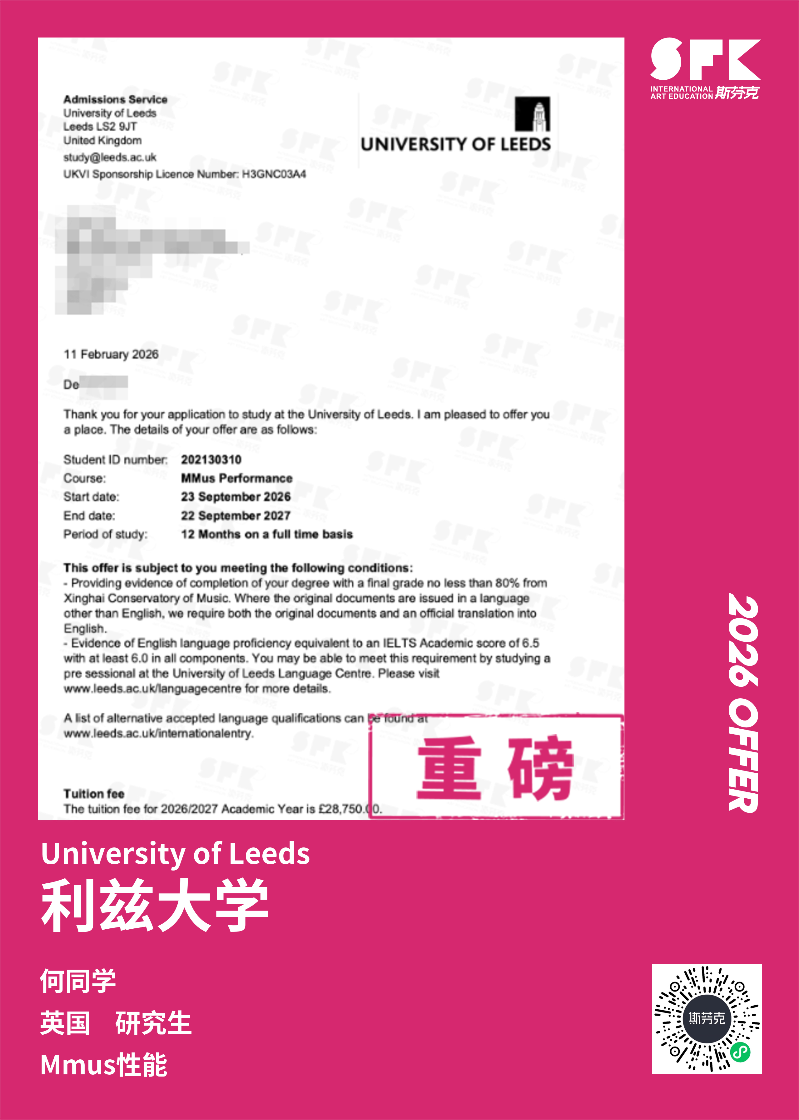 斯芬克音乐已帮助学员获得越来越多的国外音乐院校Offer