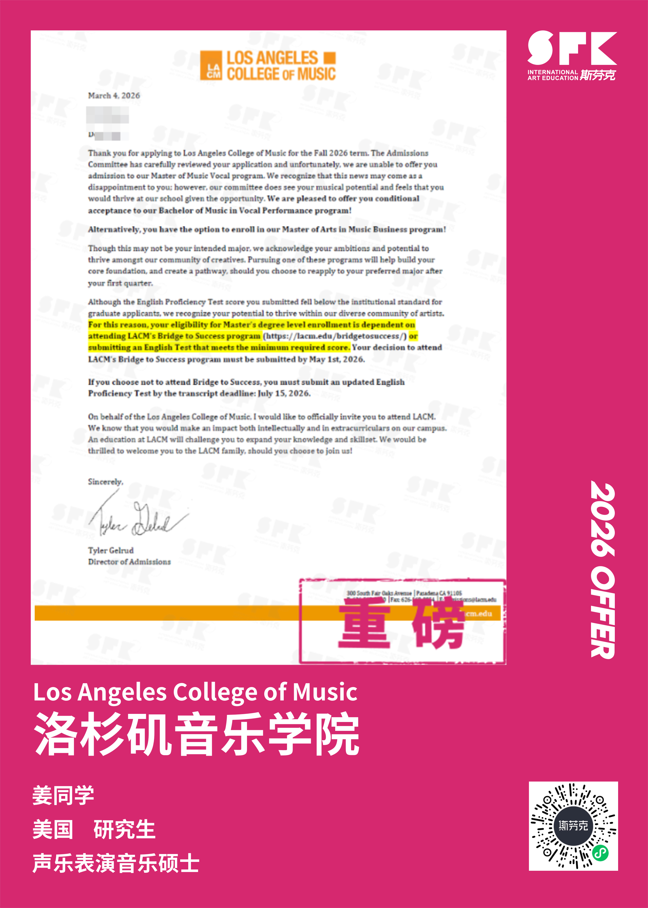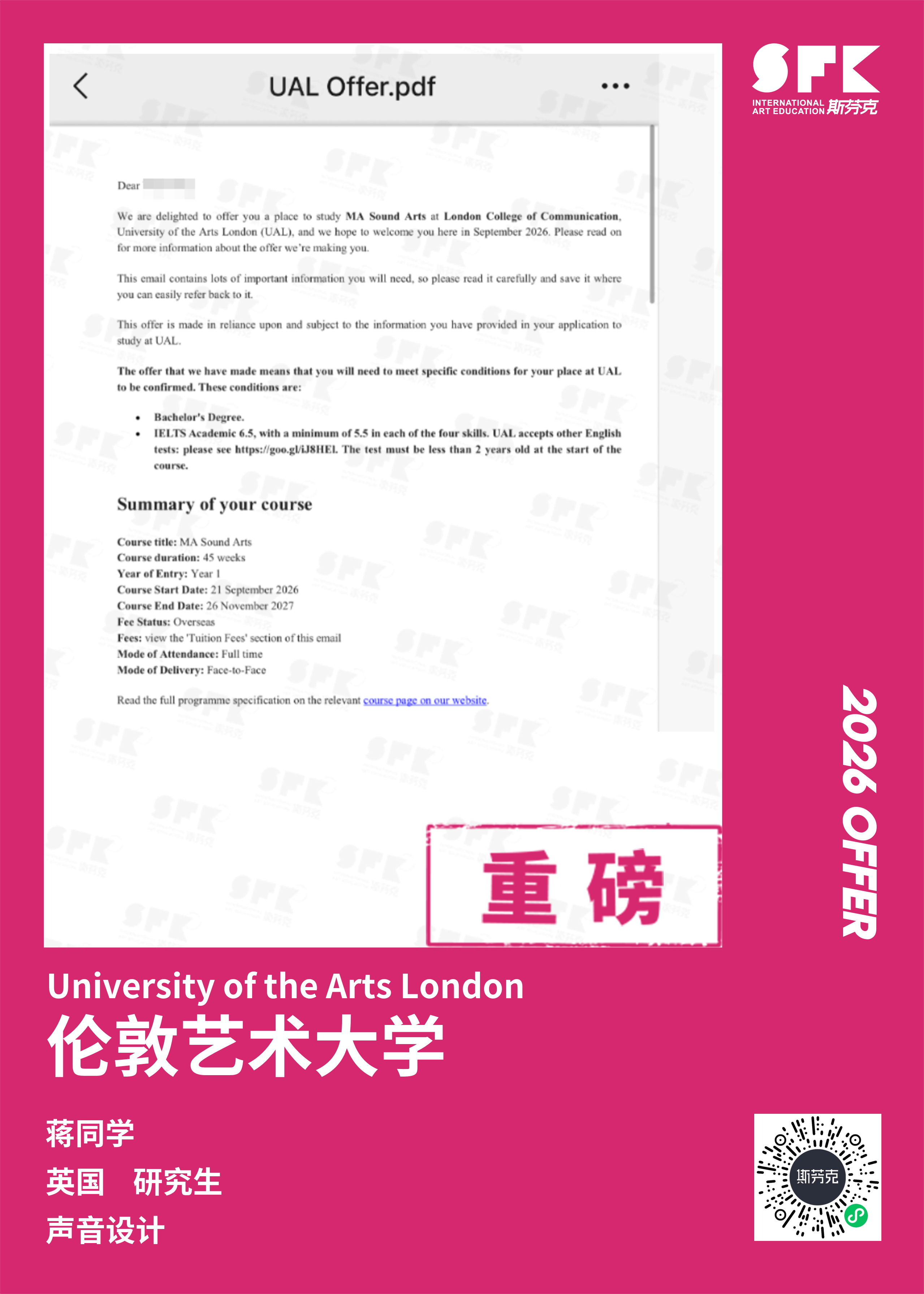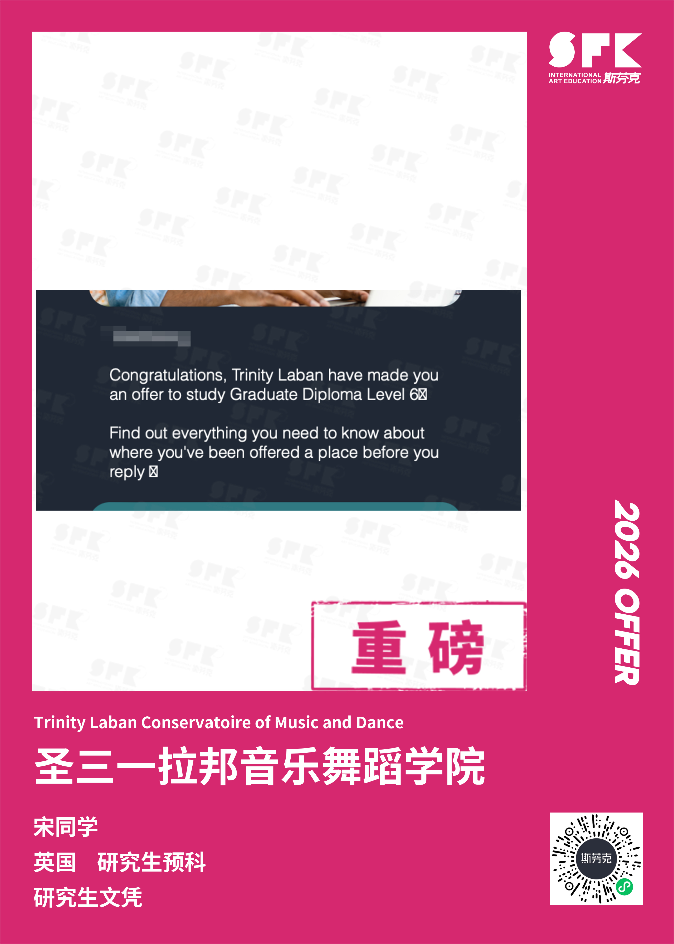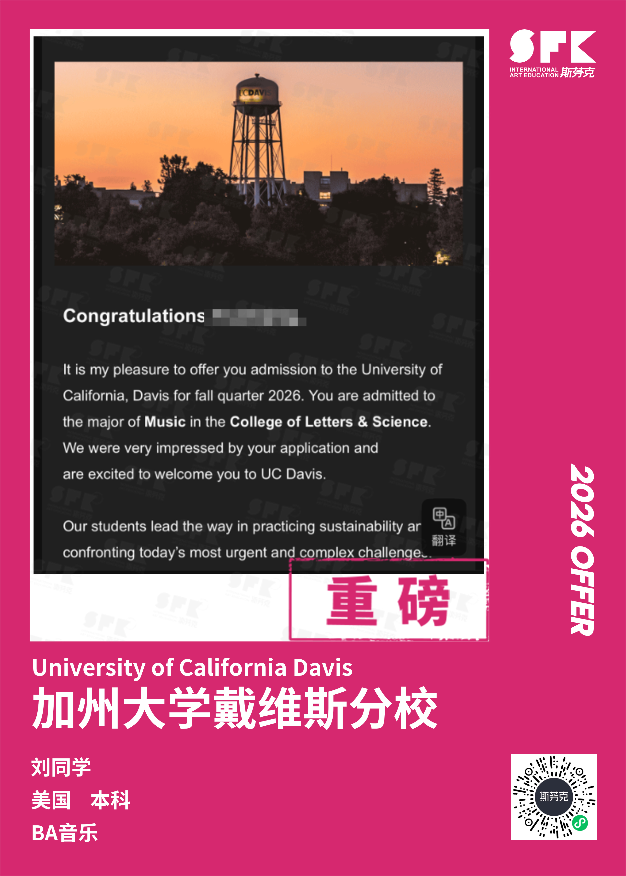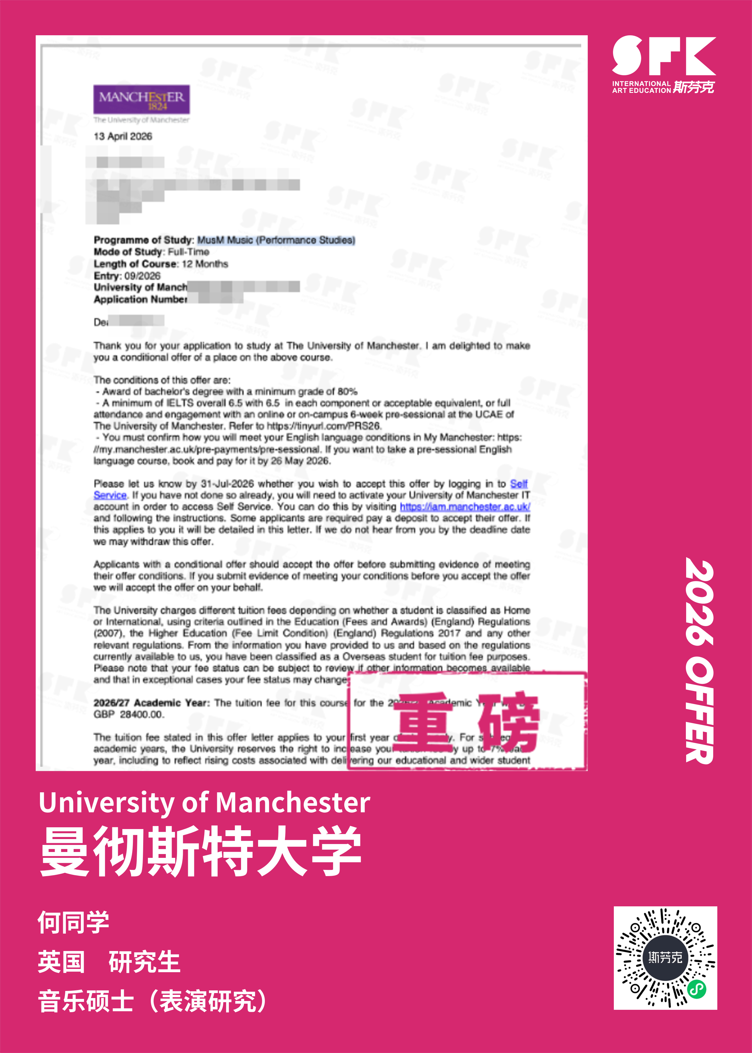 斯芬克音乐已帮助学员获得越来越多的国外音乐院校Offer
