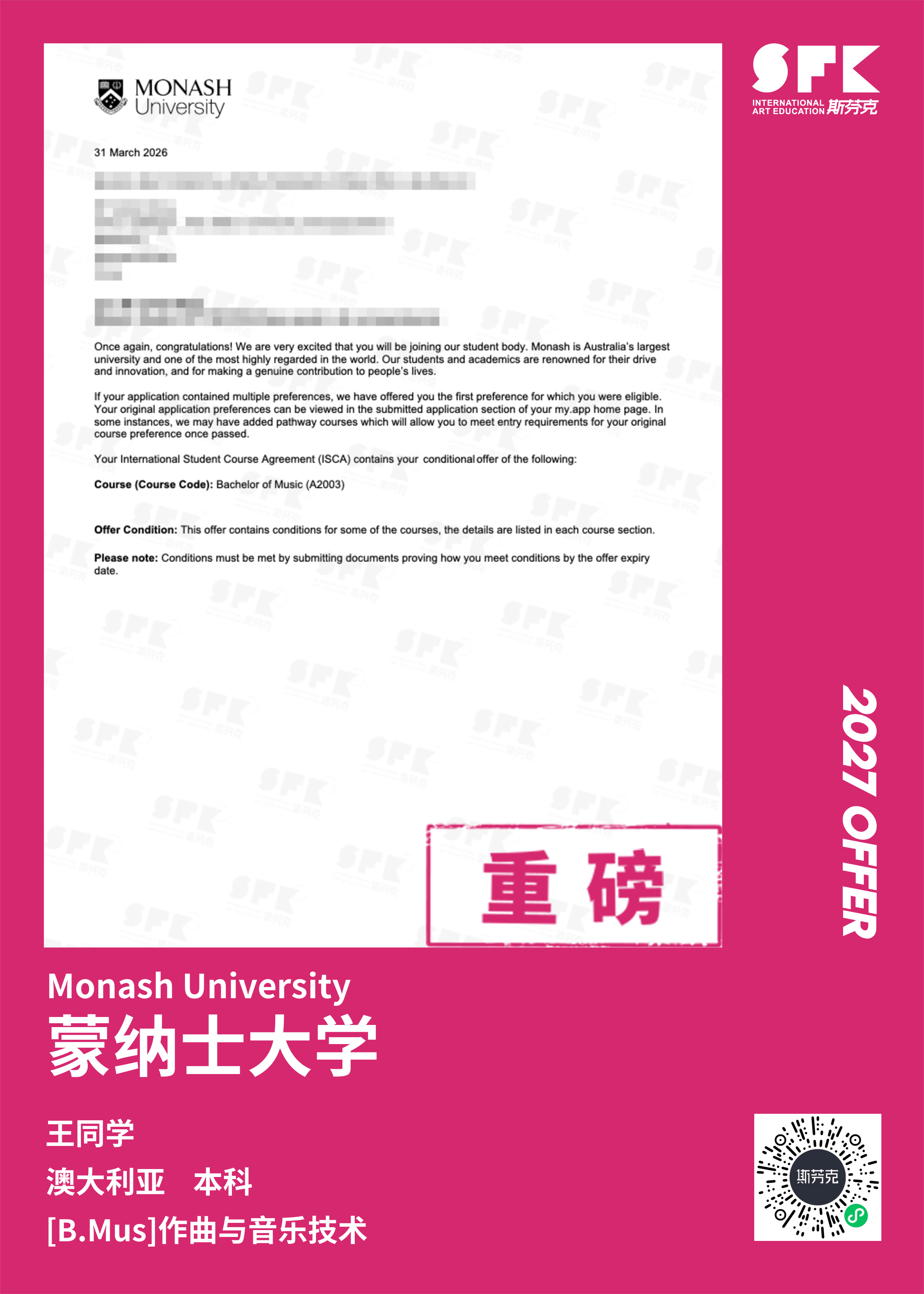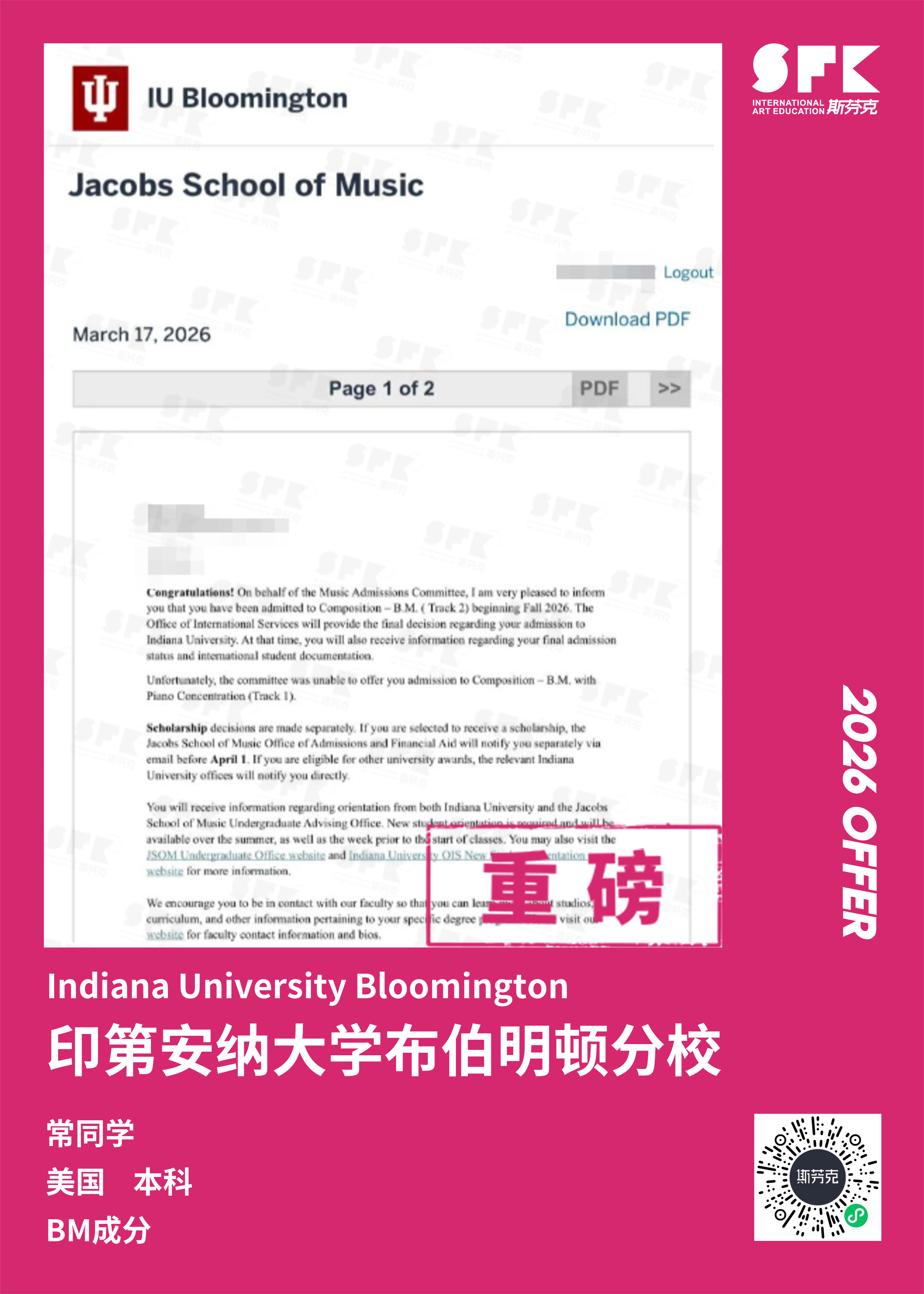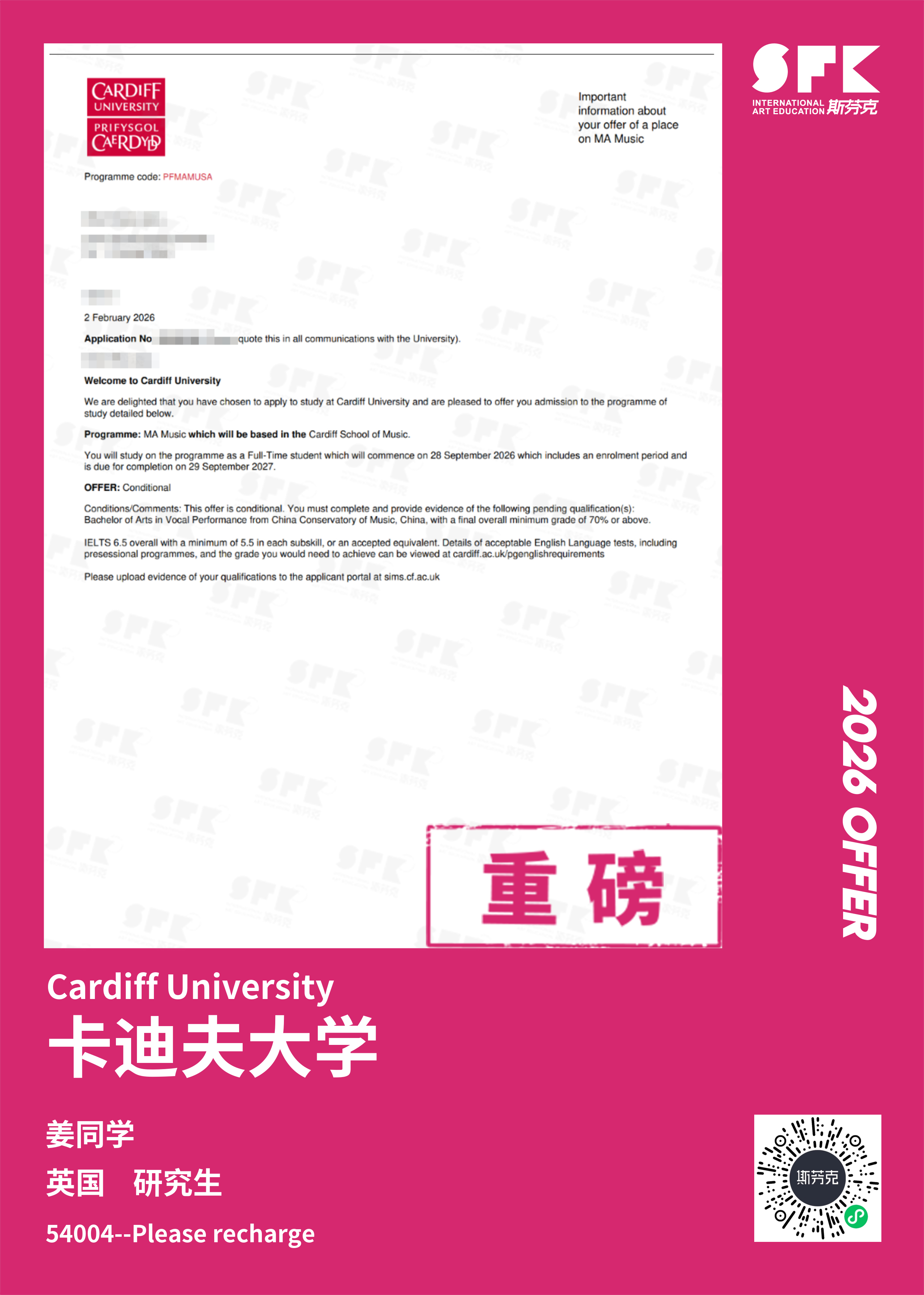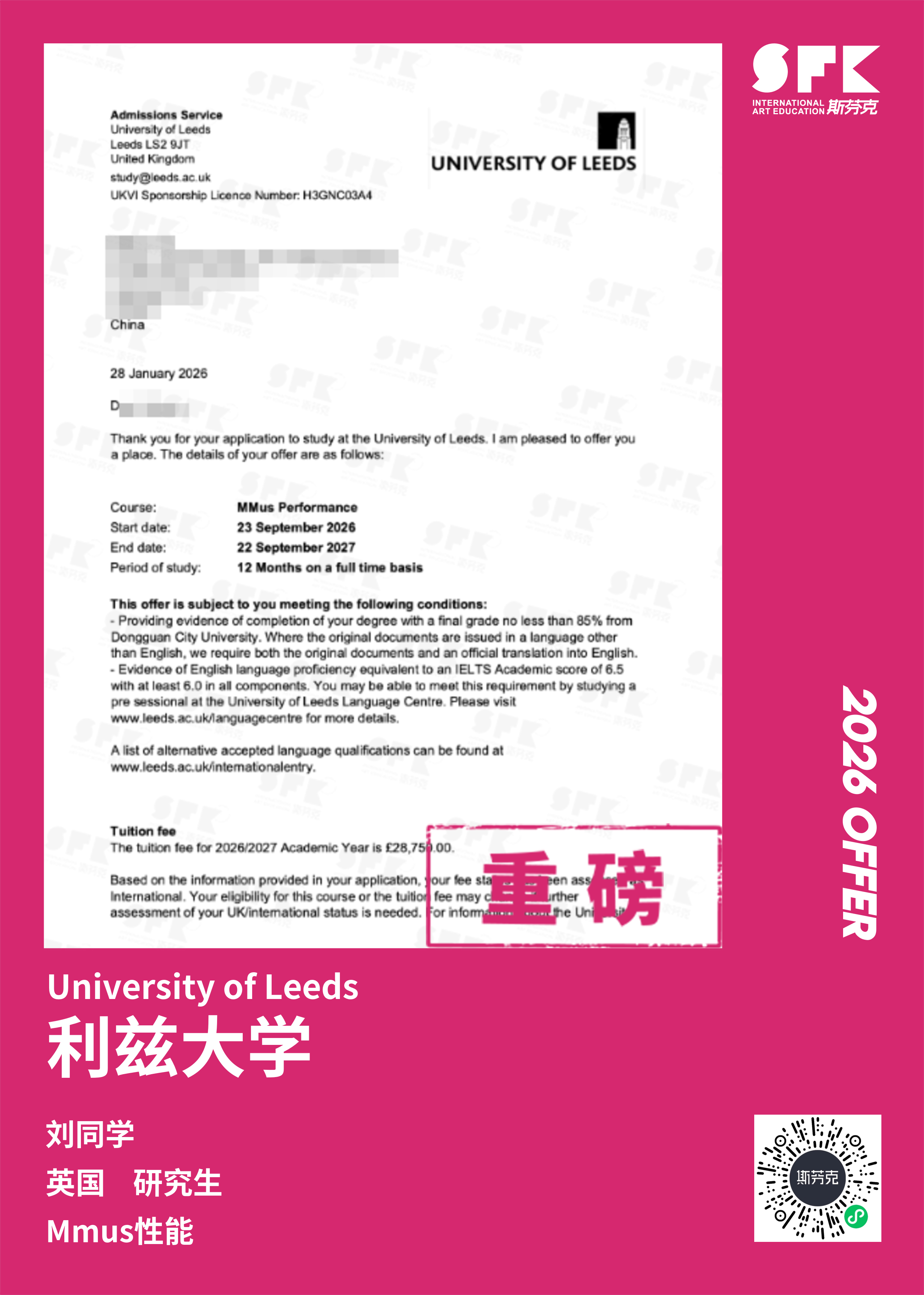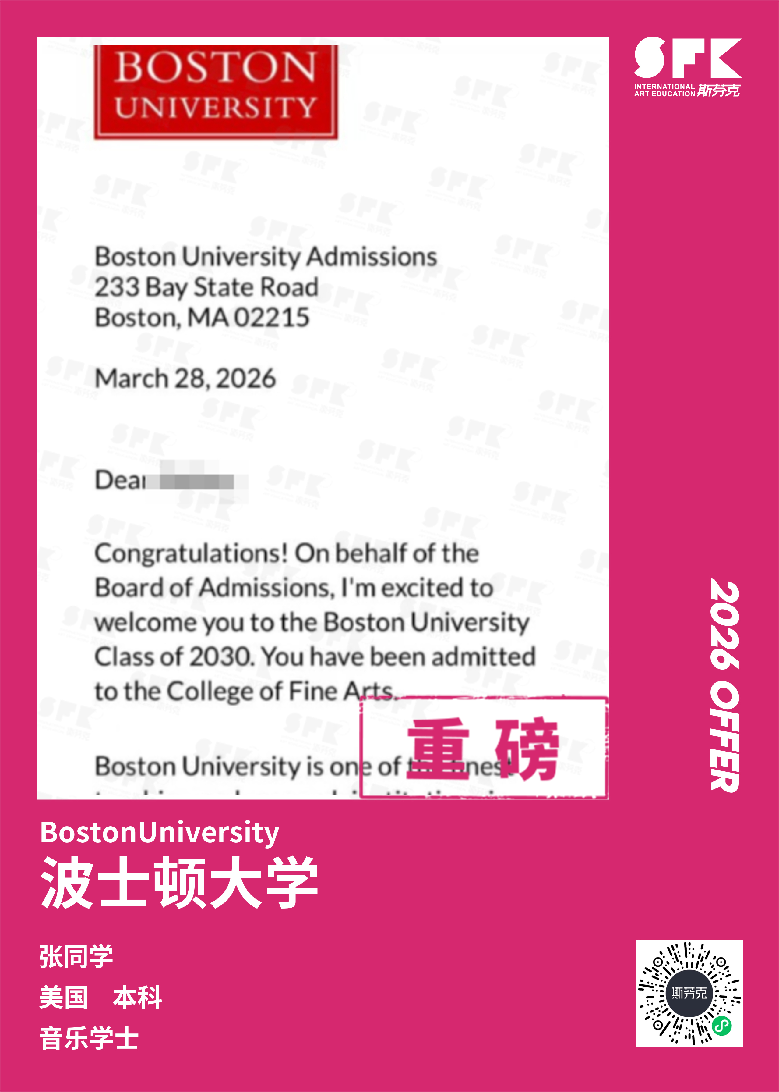 斯芬克音乐已帮助学员获得越来越多的国外音乐院校Offer