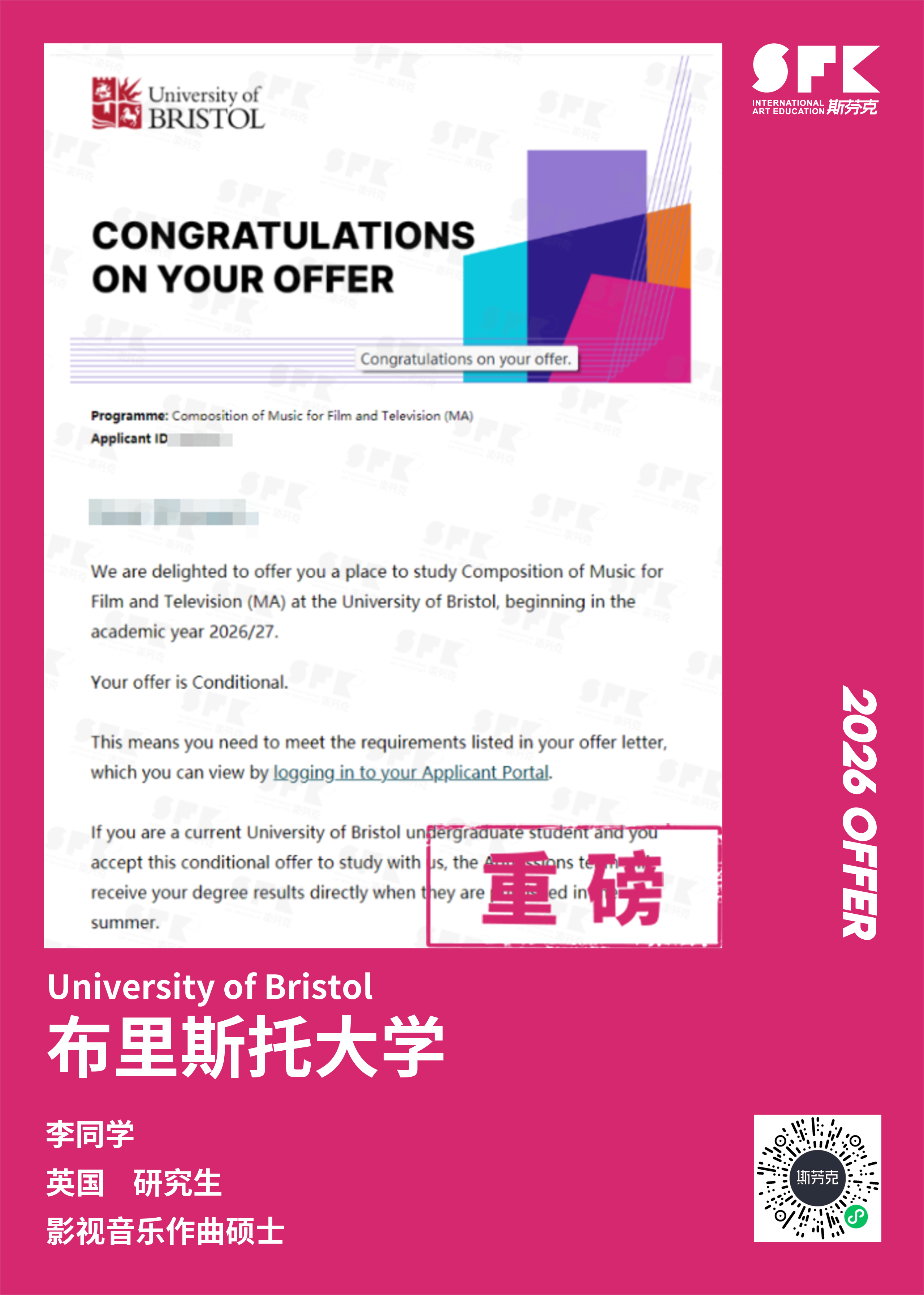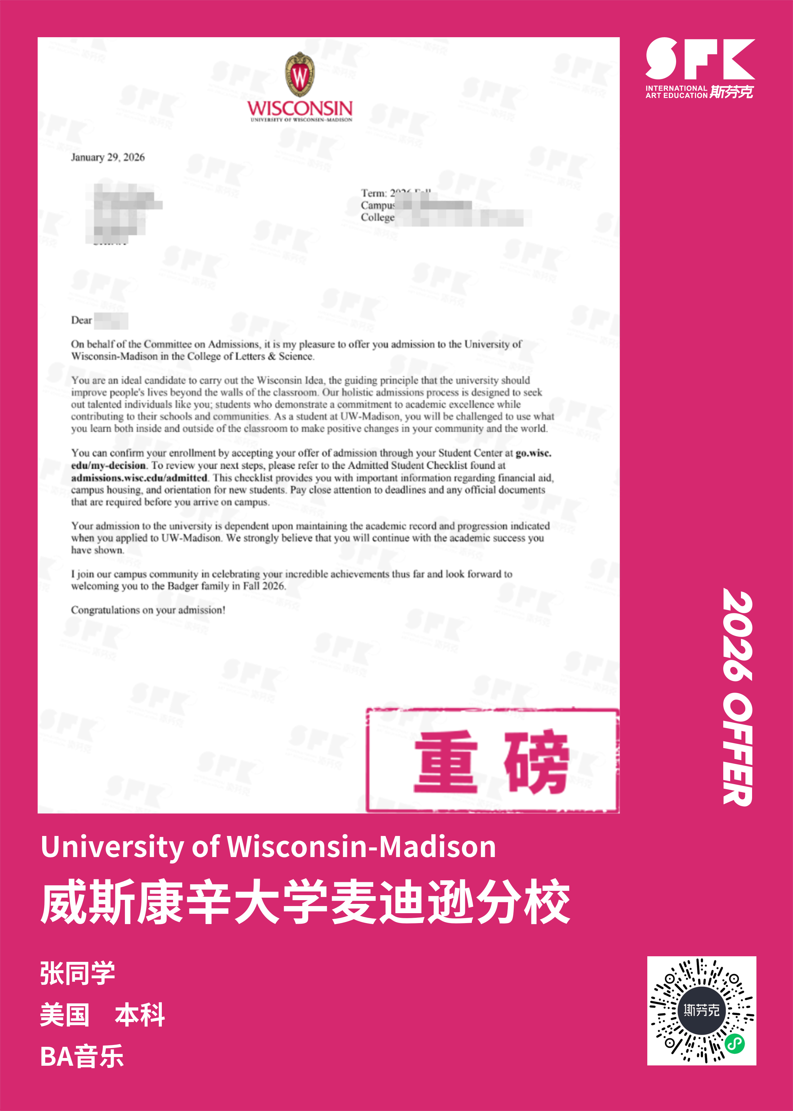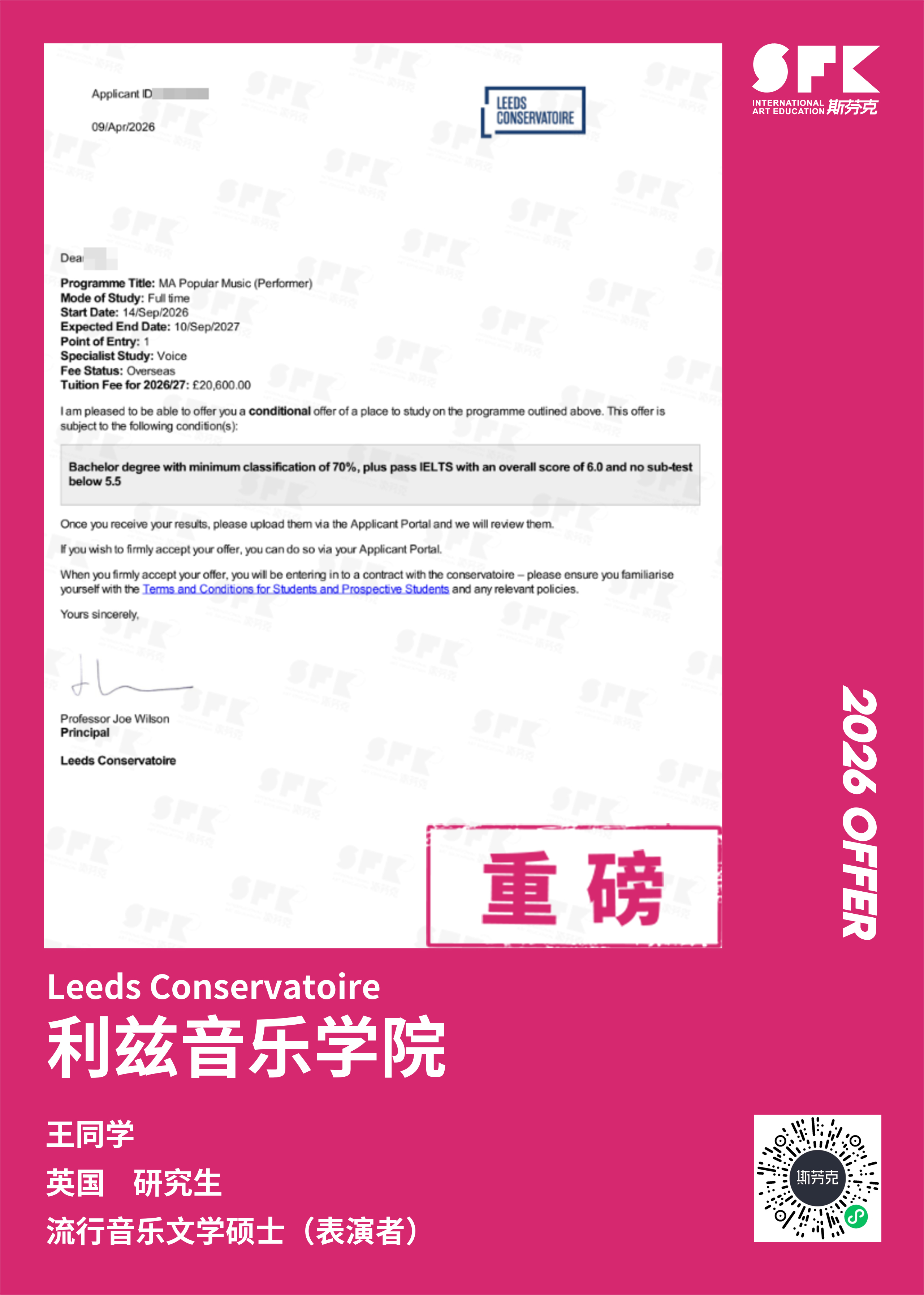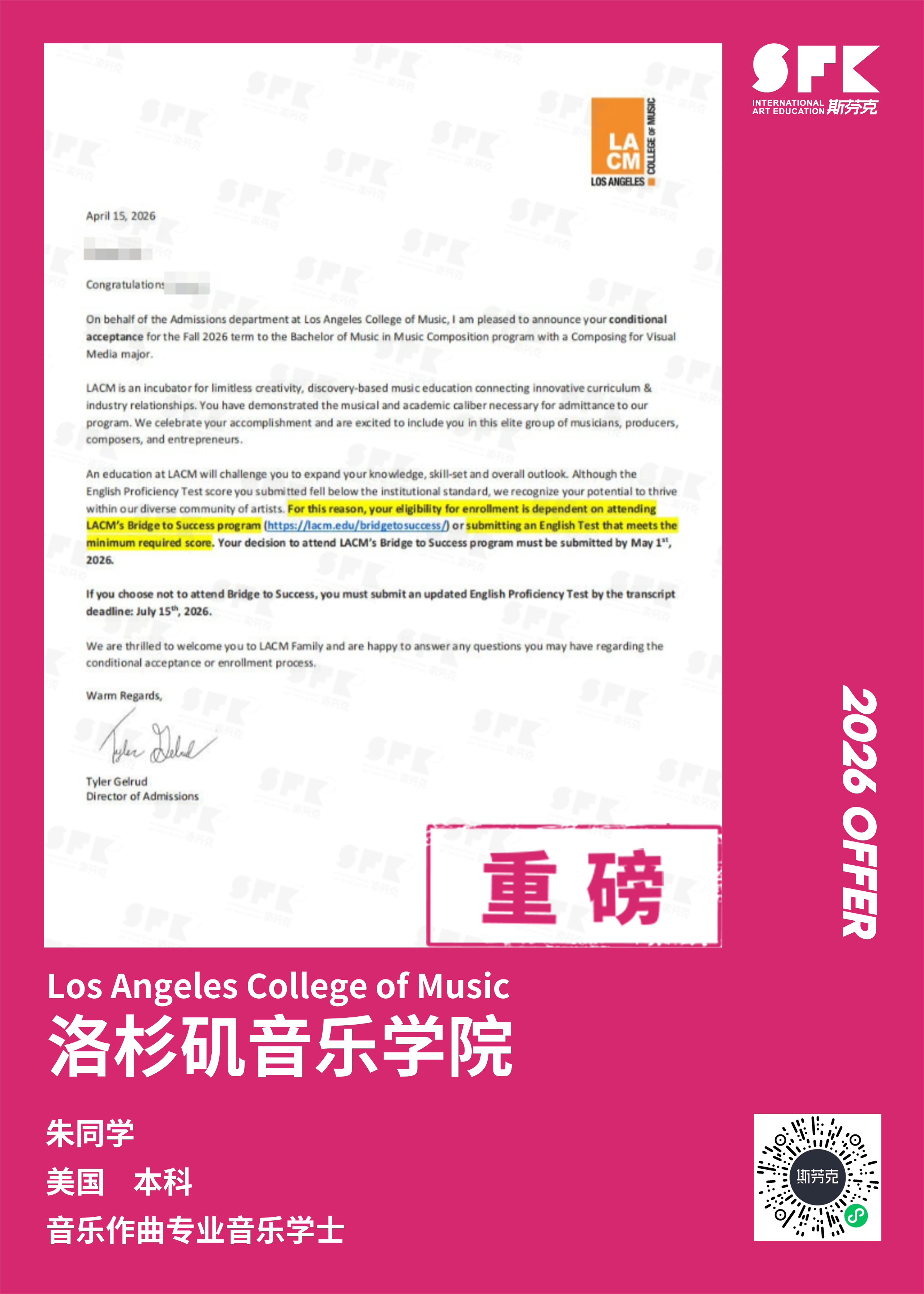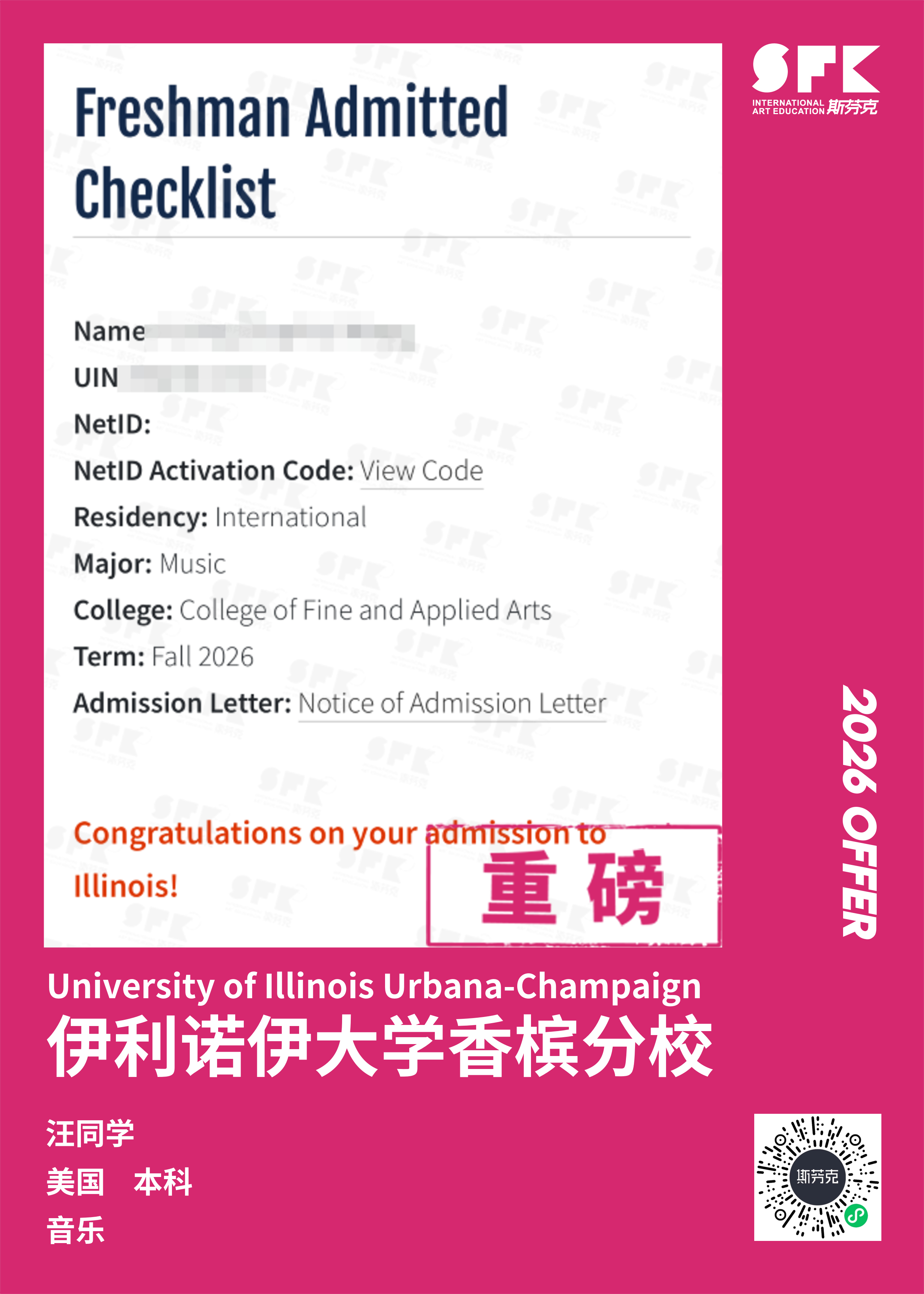 斯芬克音乐已帮助学员获得越来越多的国外音乐院校Offer