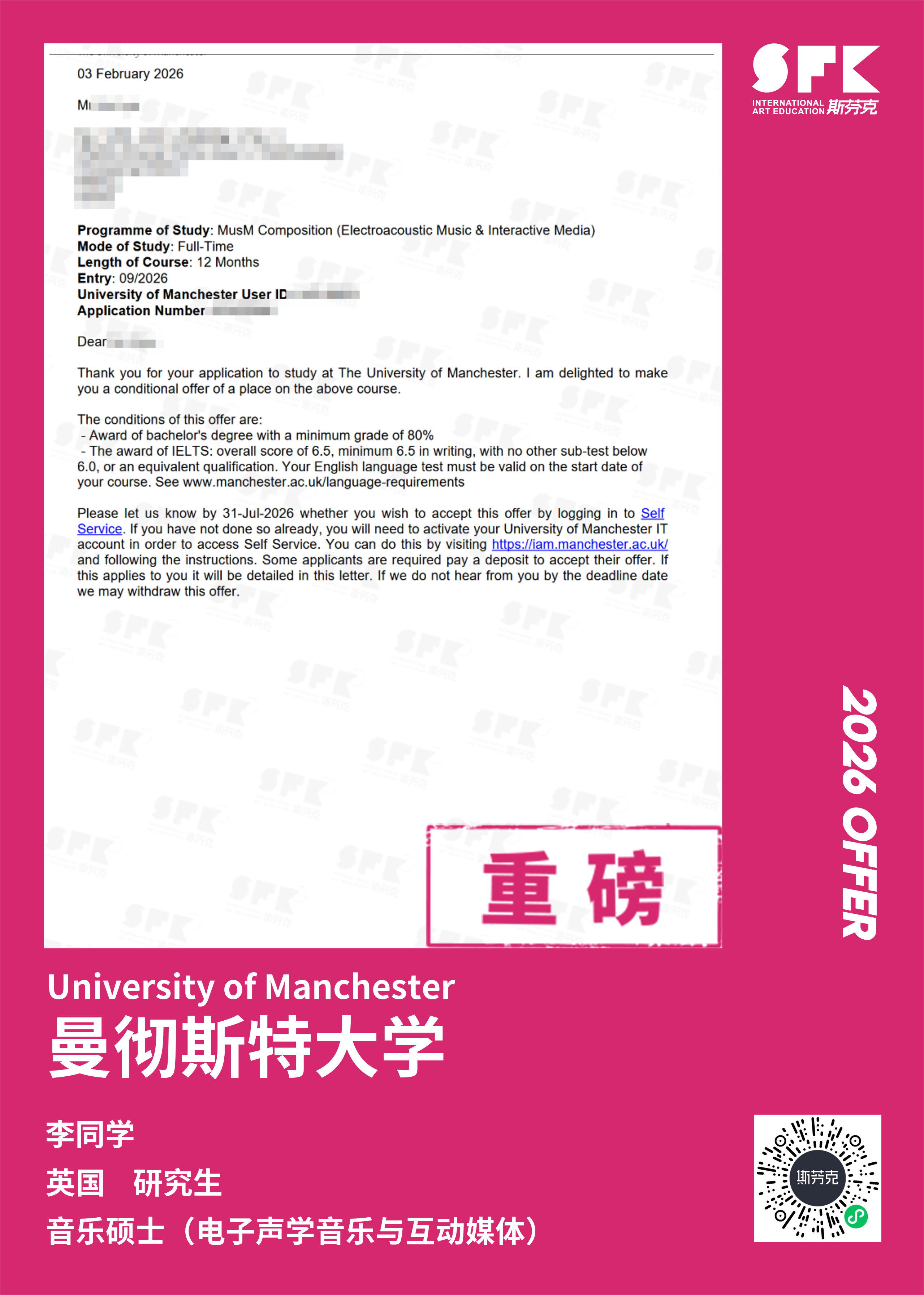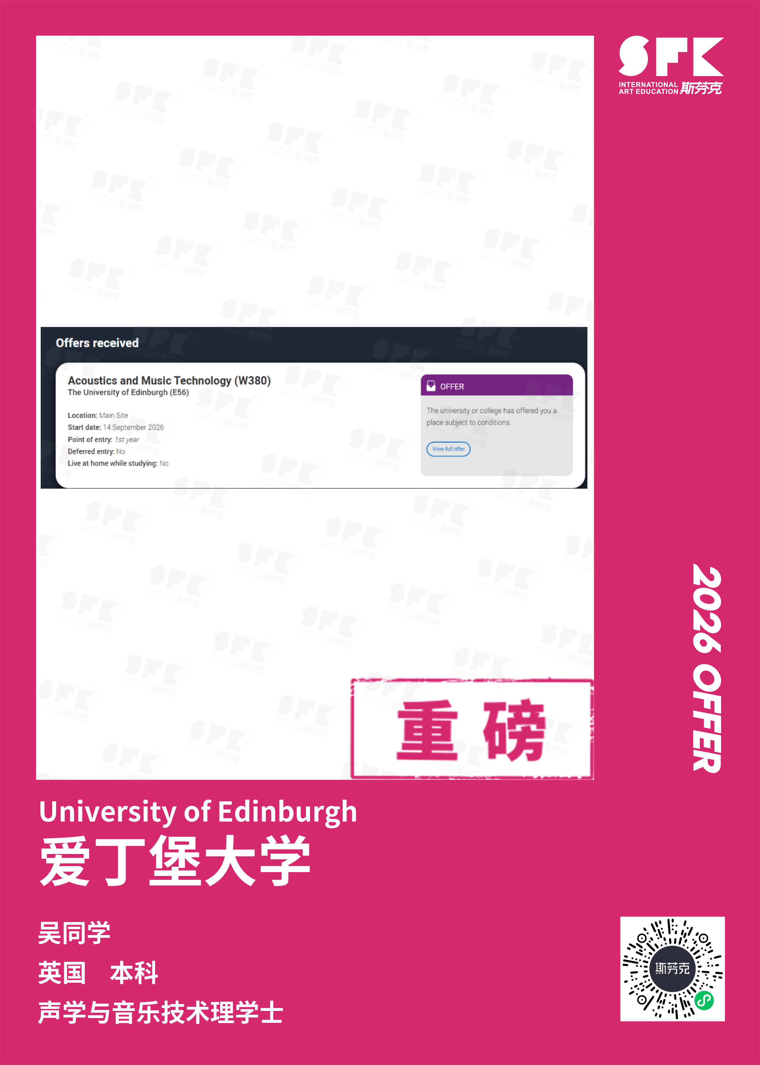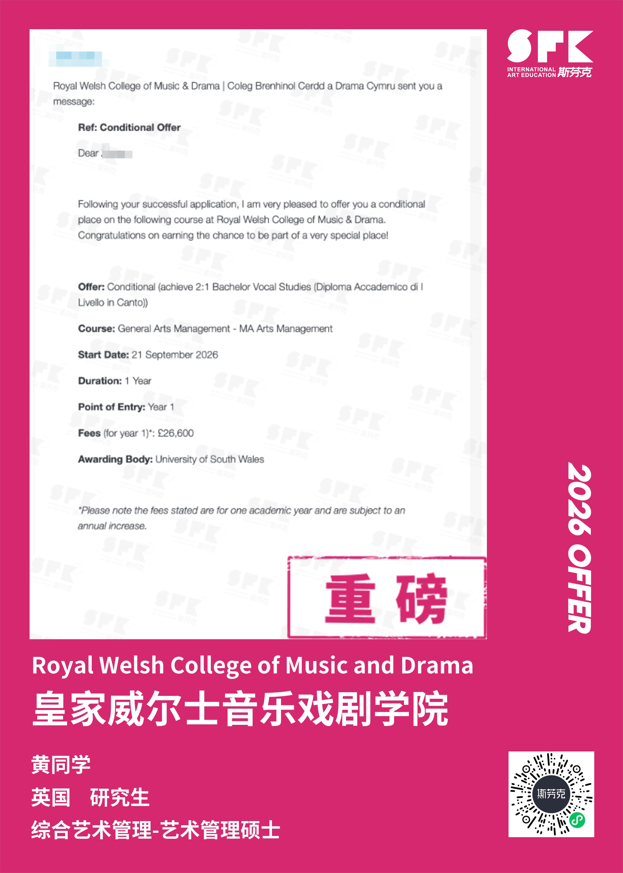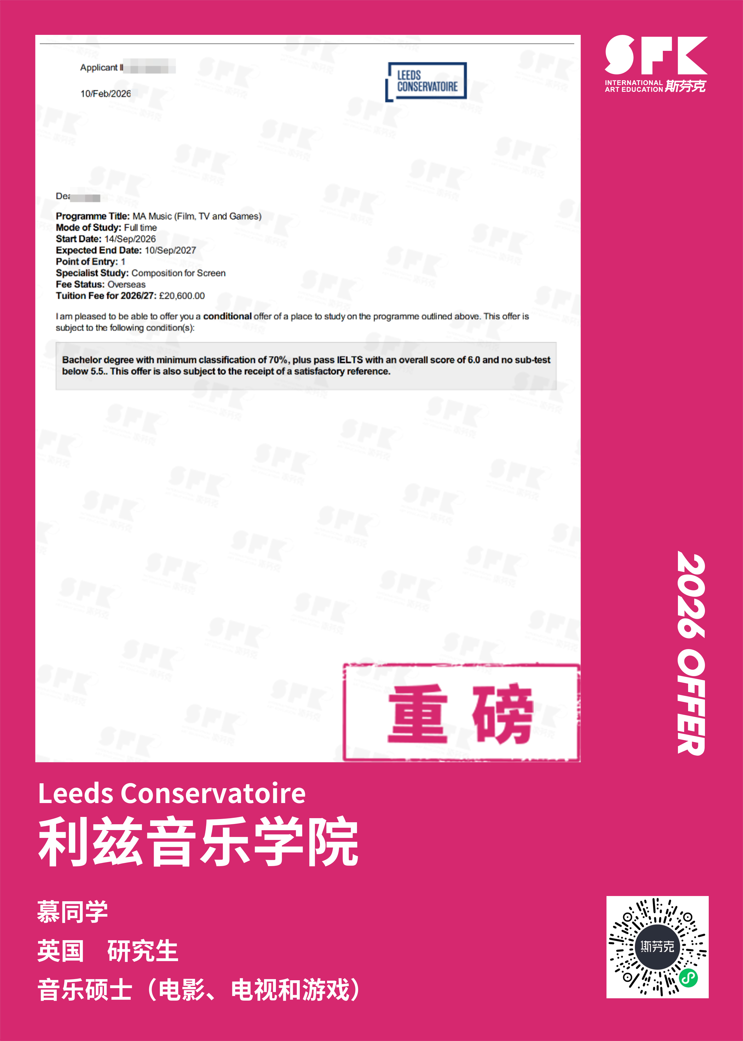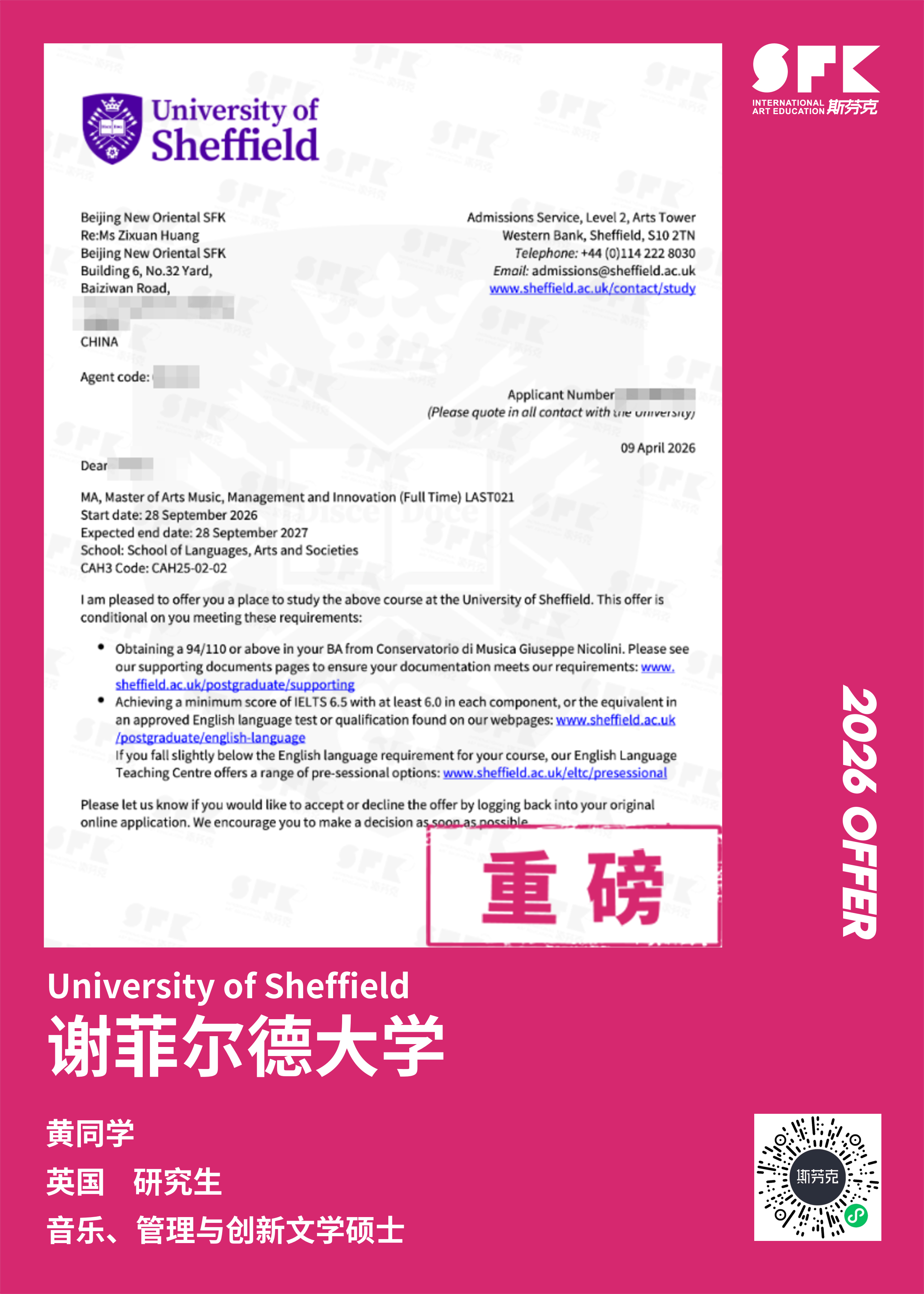 斯芬克音乐已帮助学员获得越来越多的国外音乐院校Offer