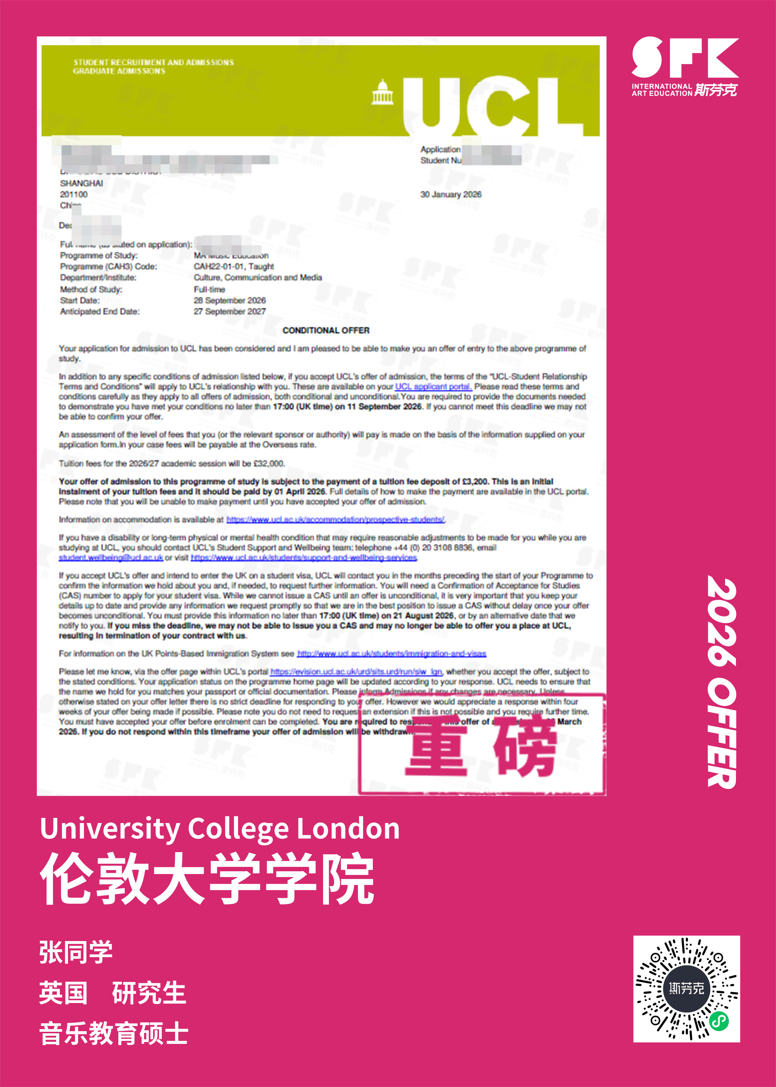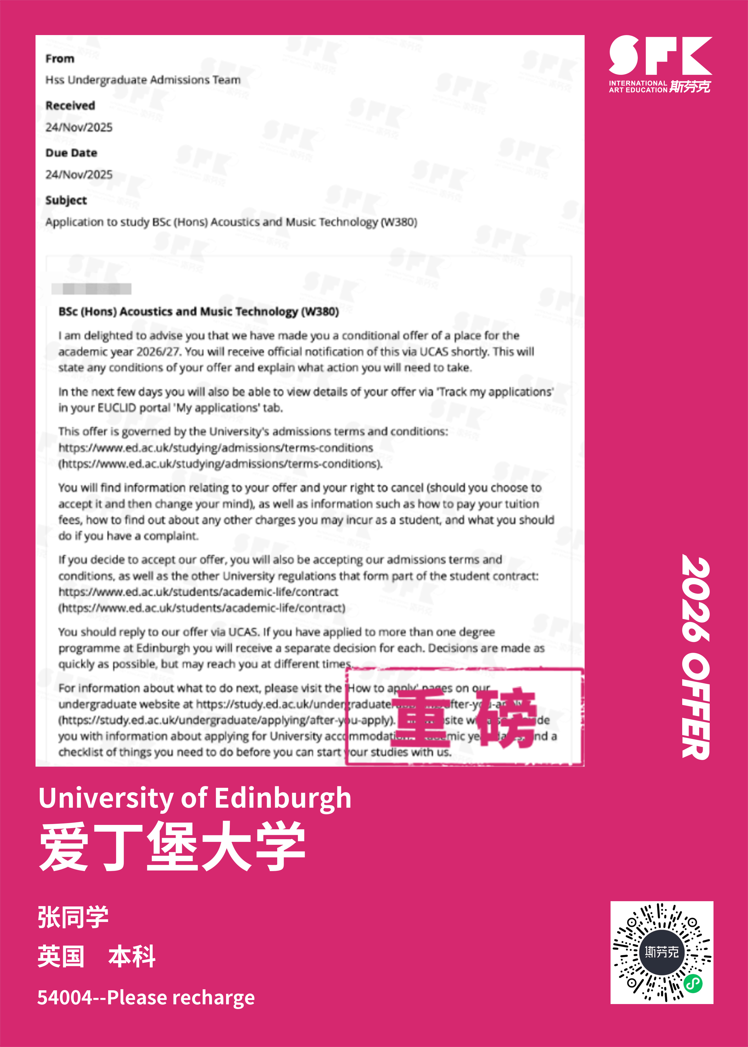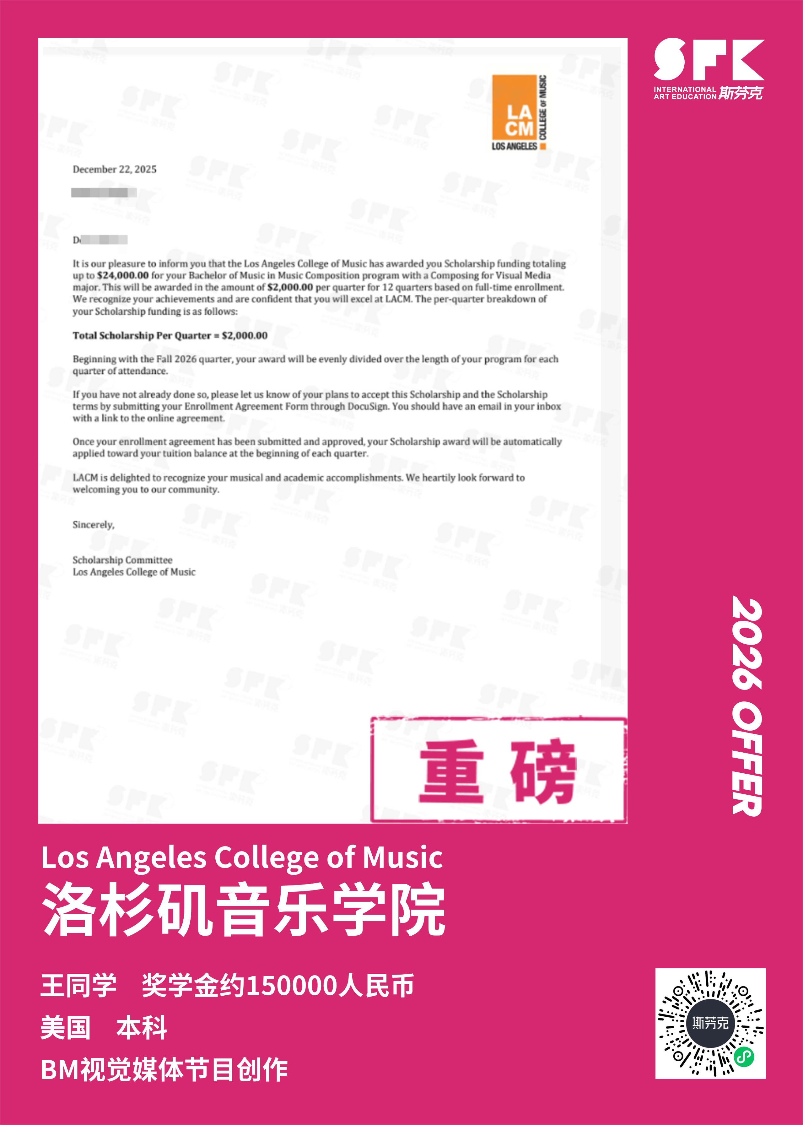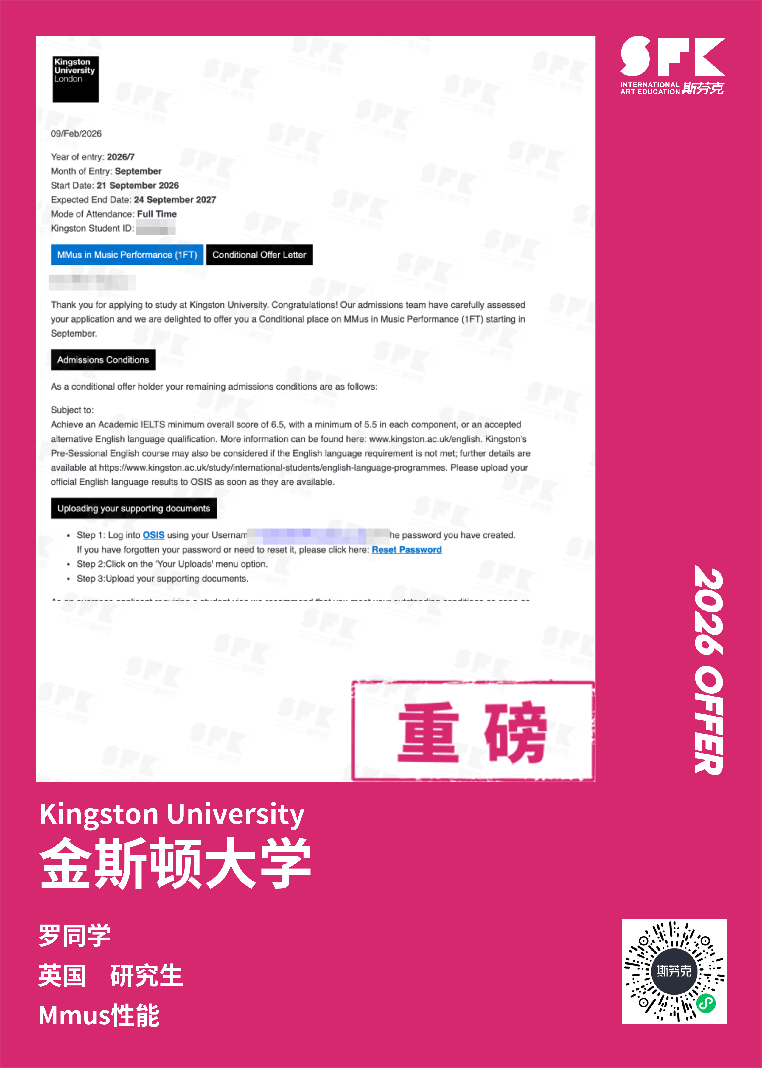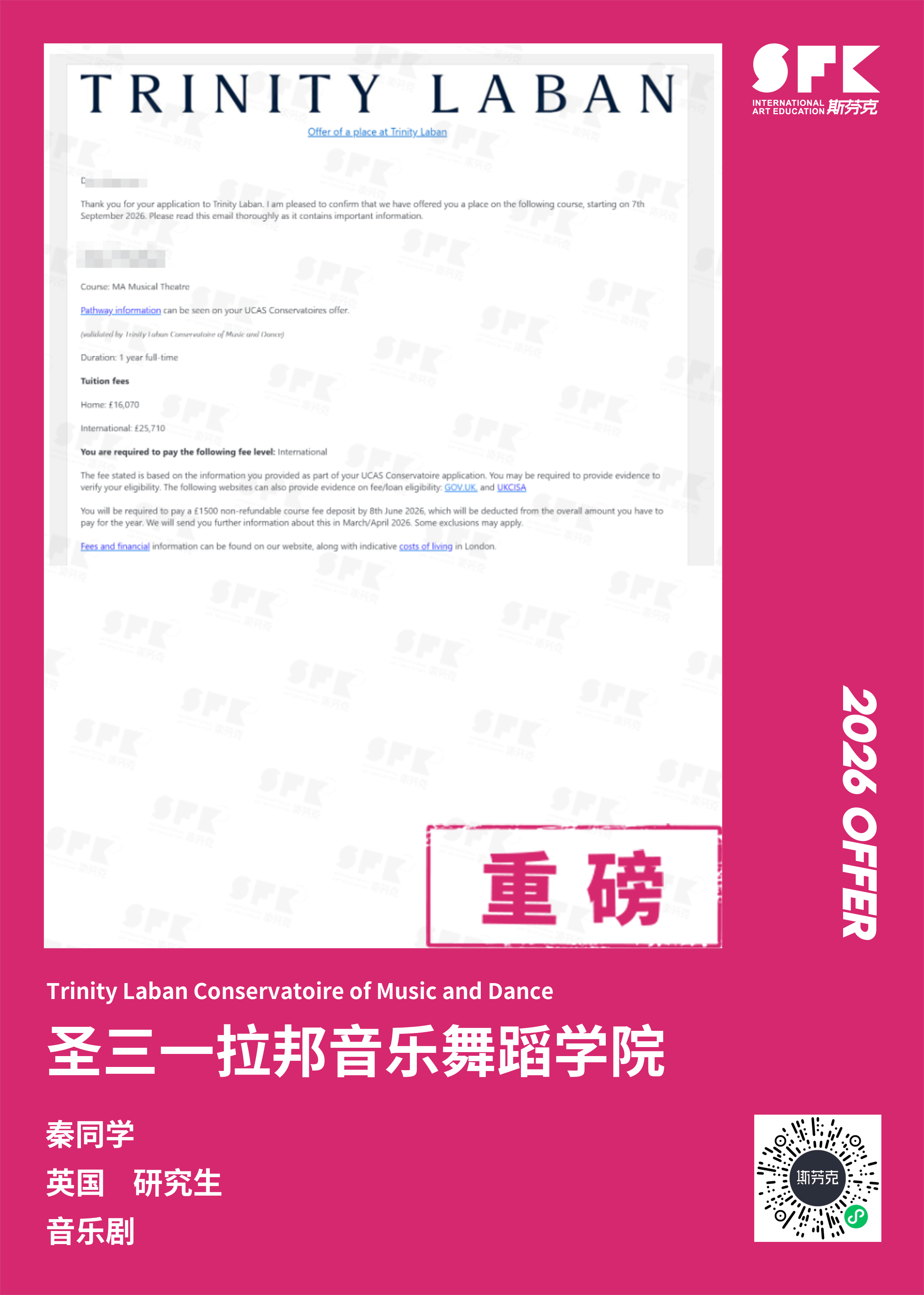 斯芬克音乐已帮助学员获得越来越多的国外音乐院校Offer