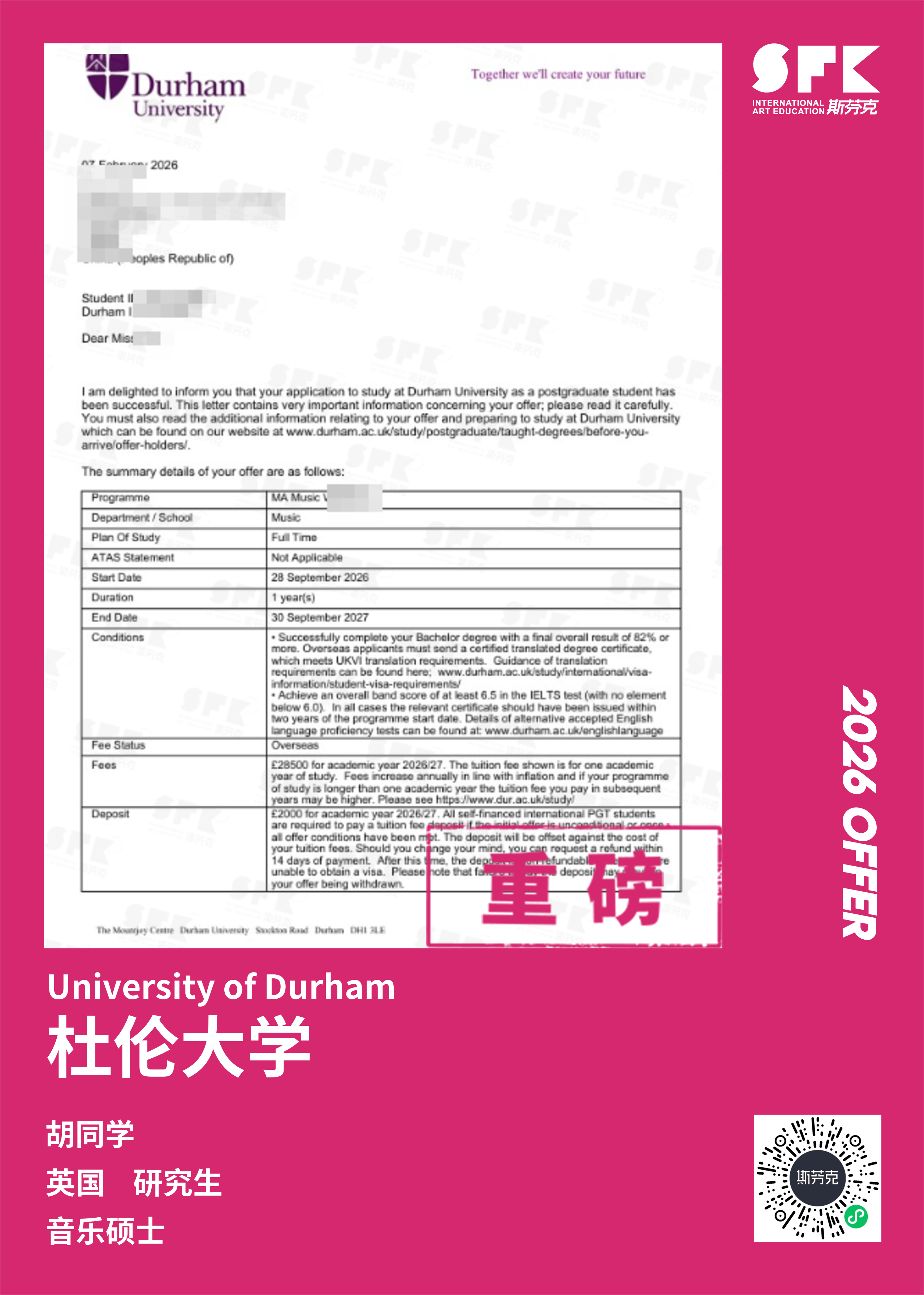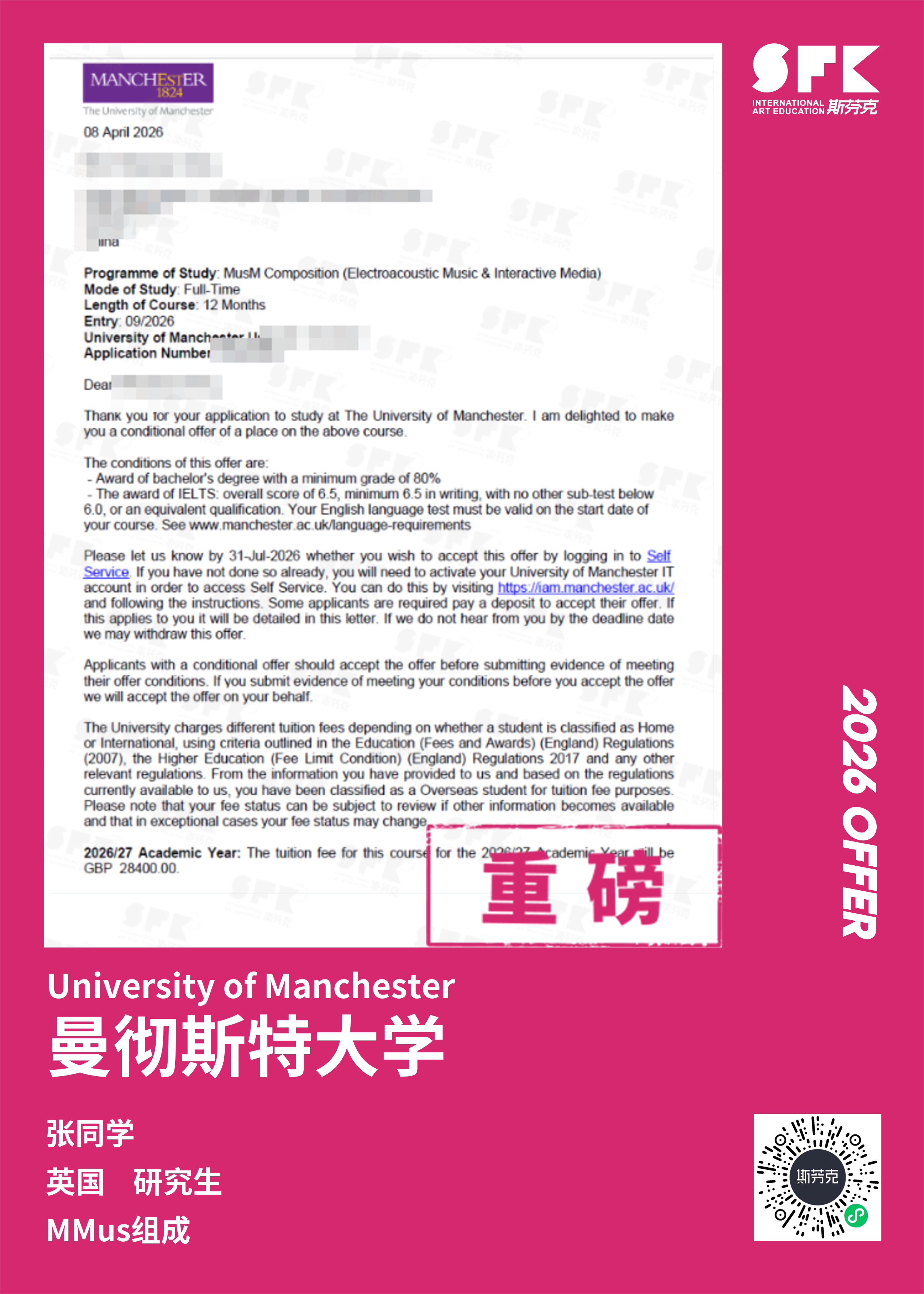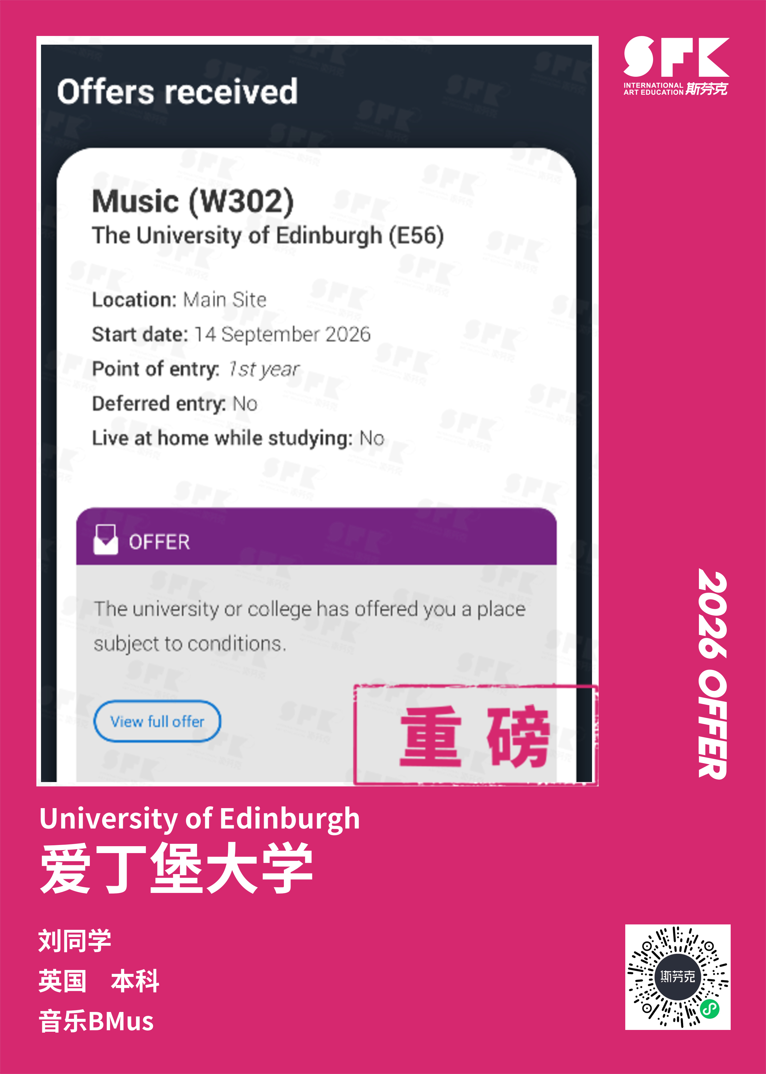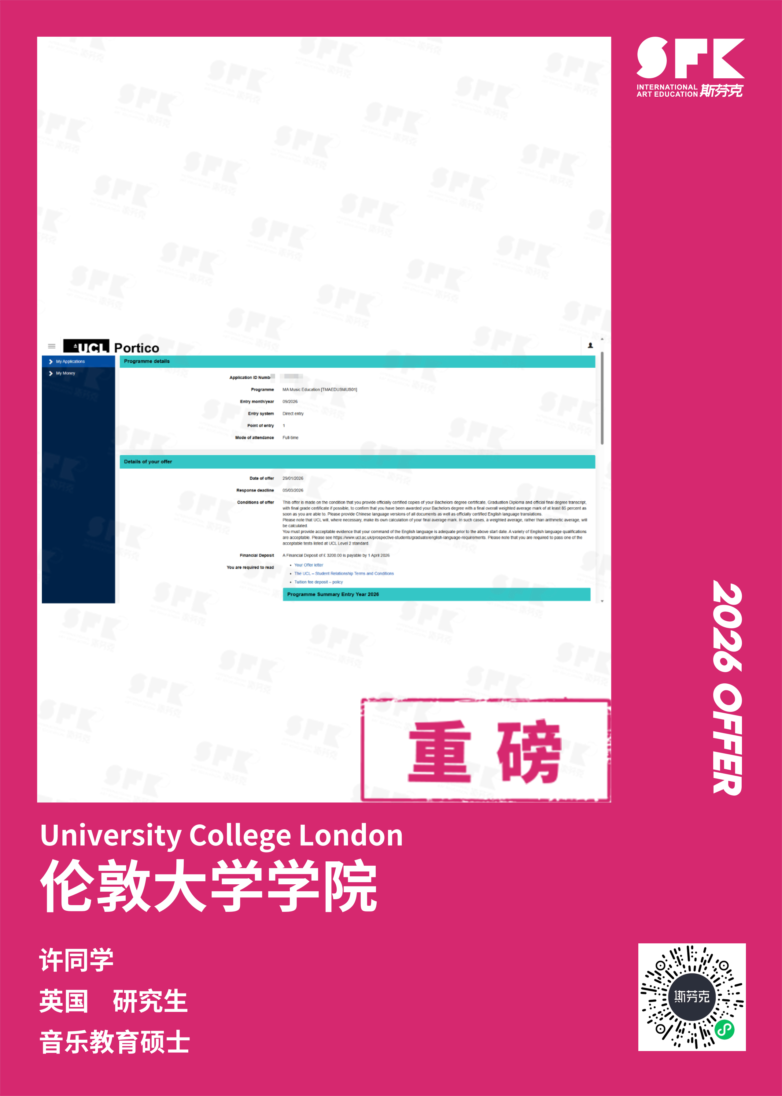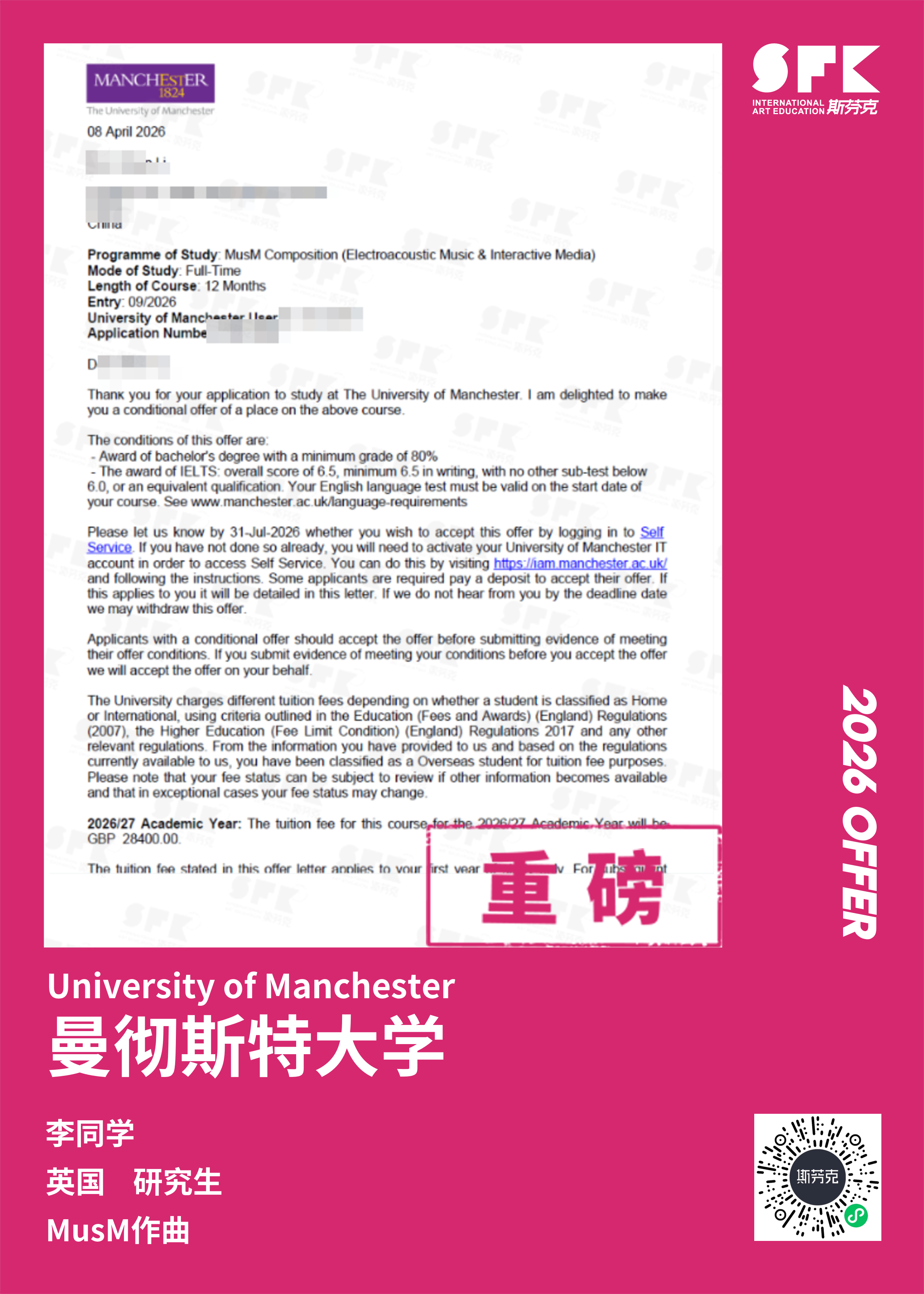 斯芬克音乐已帮助学员获得越来越多的国外音乐院校Offer