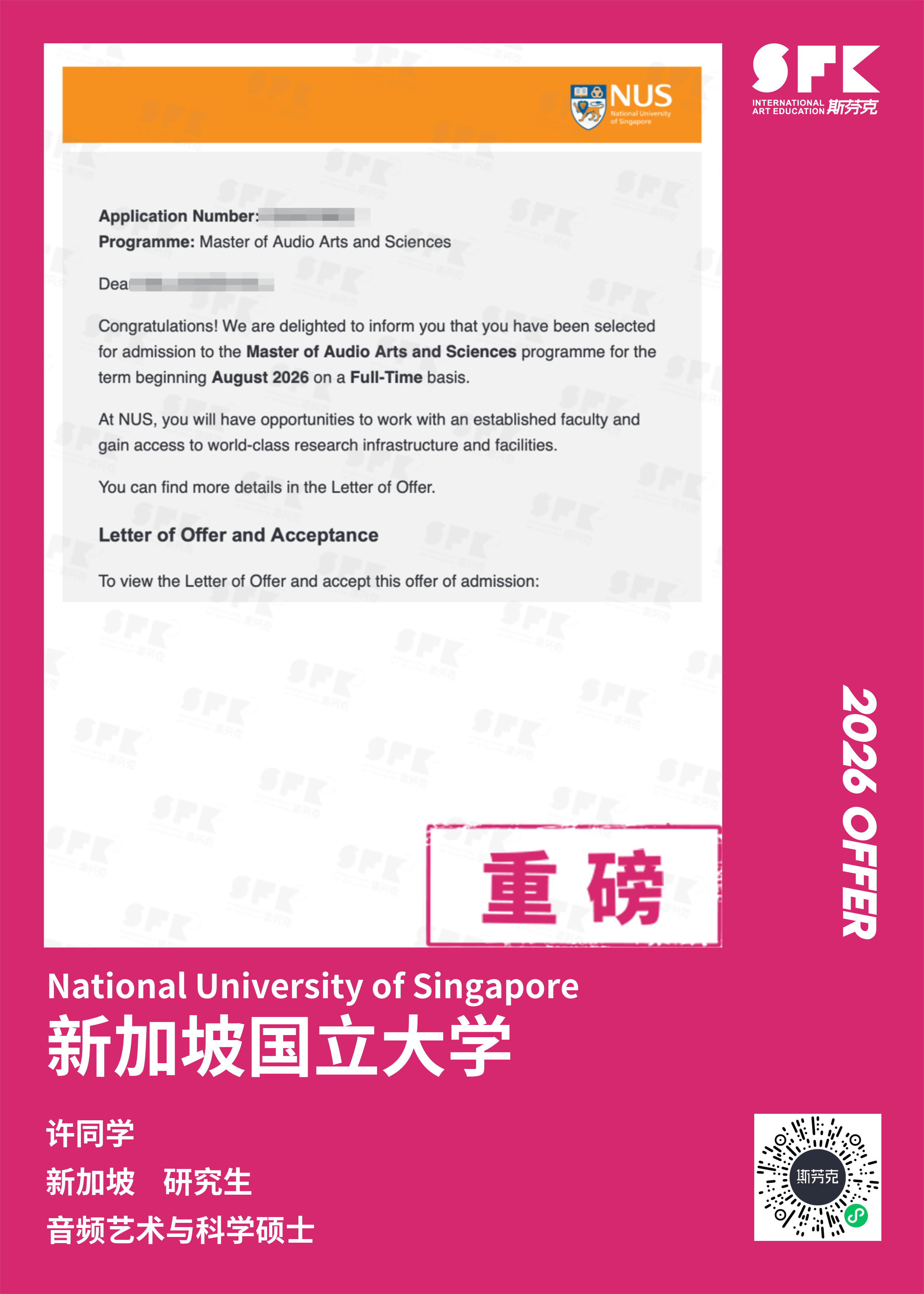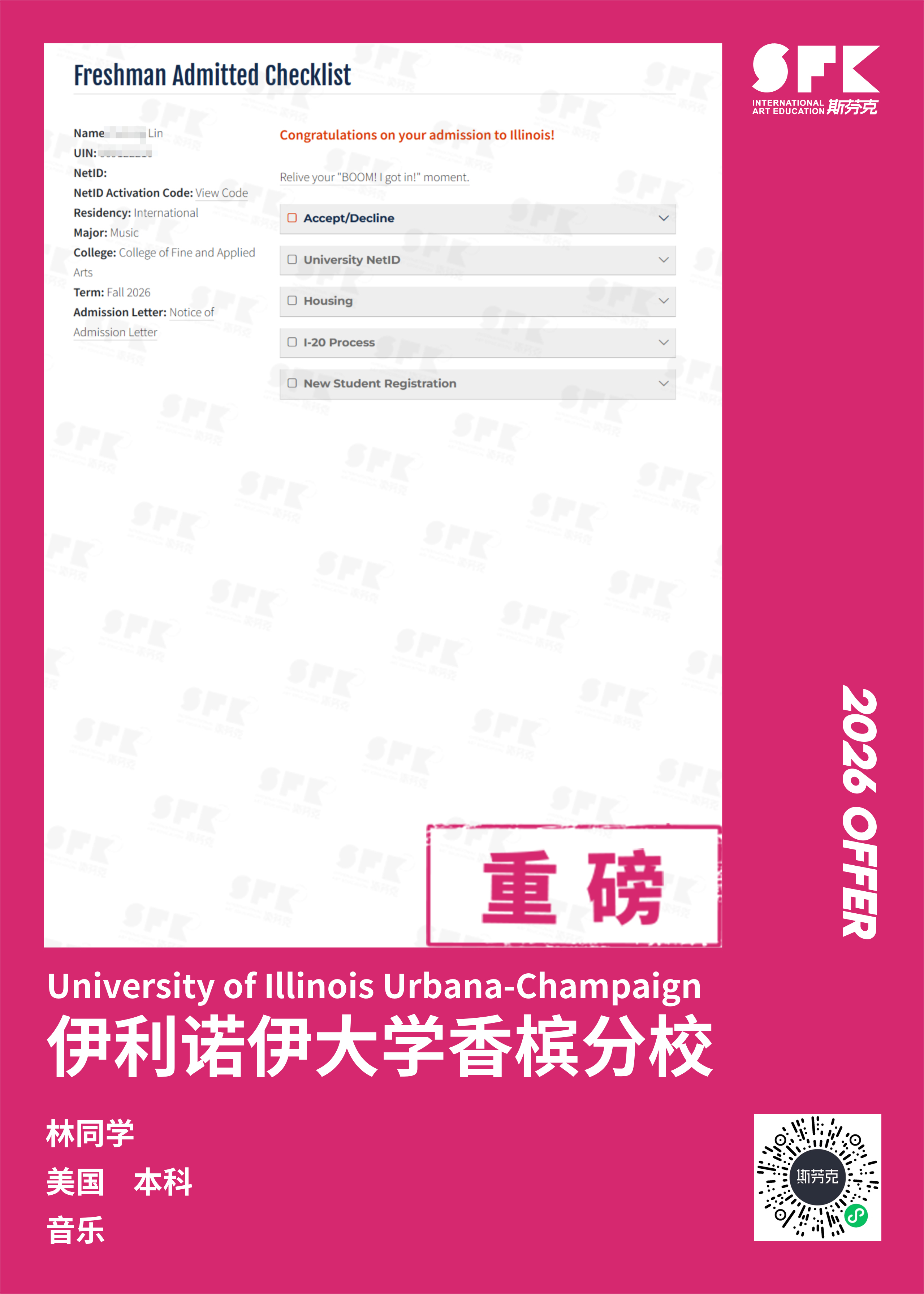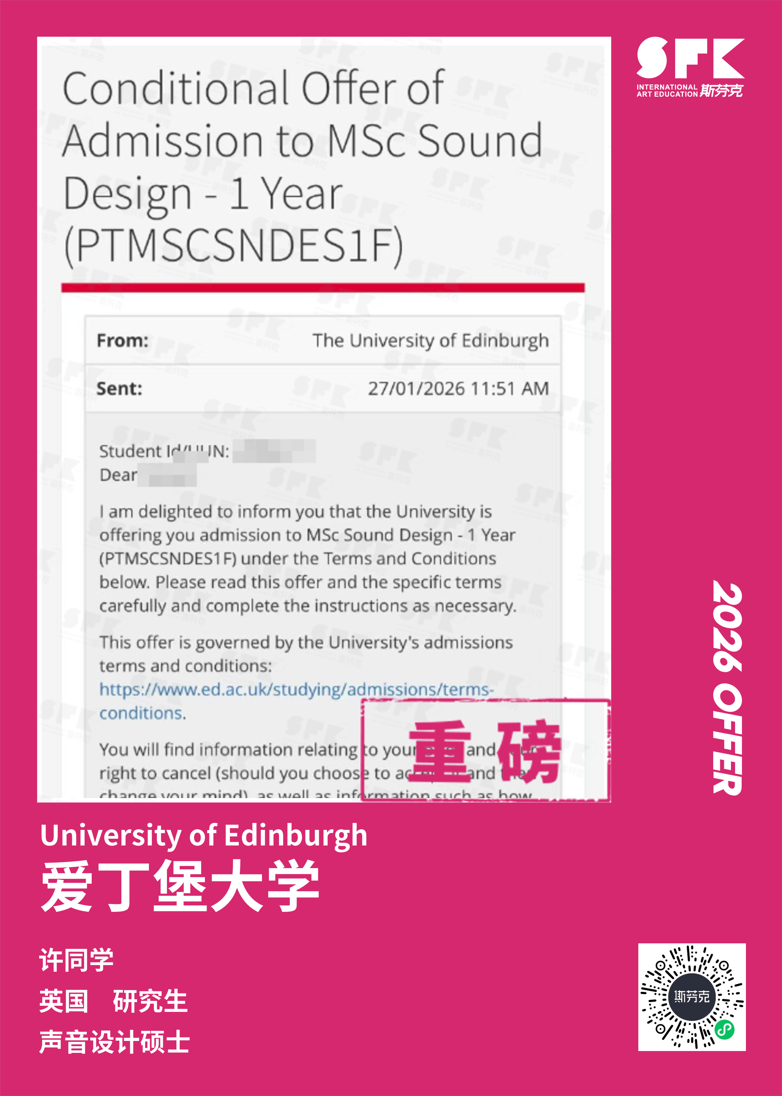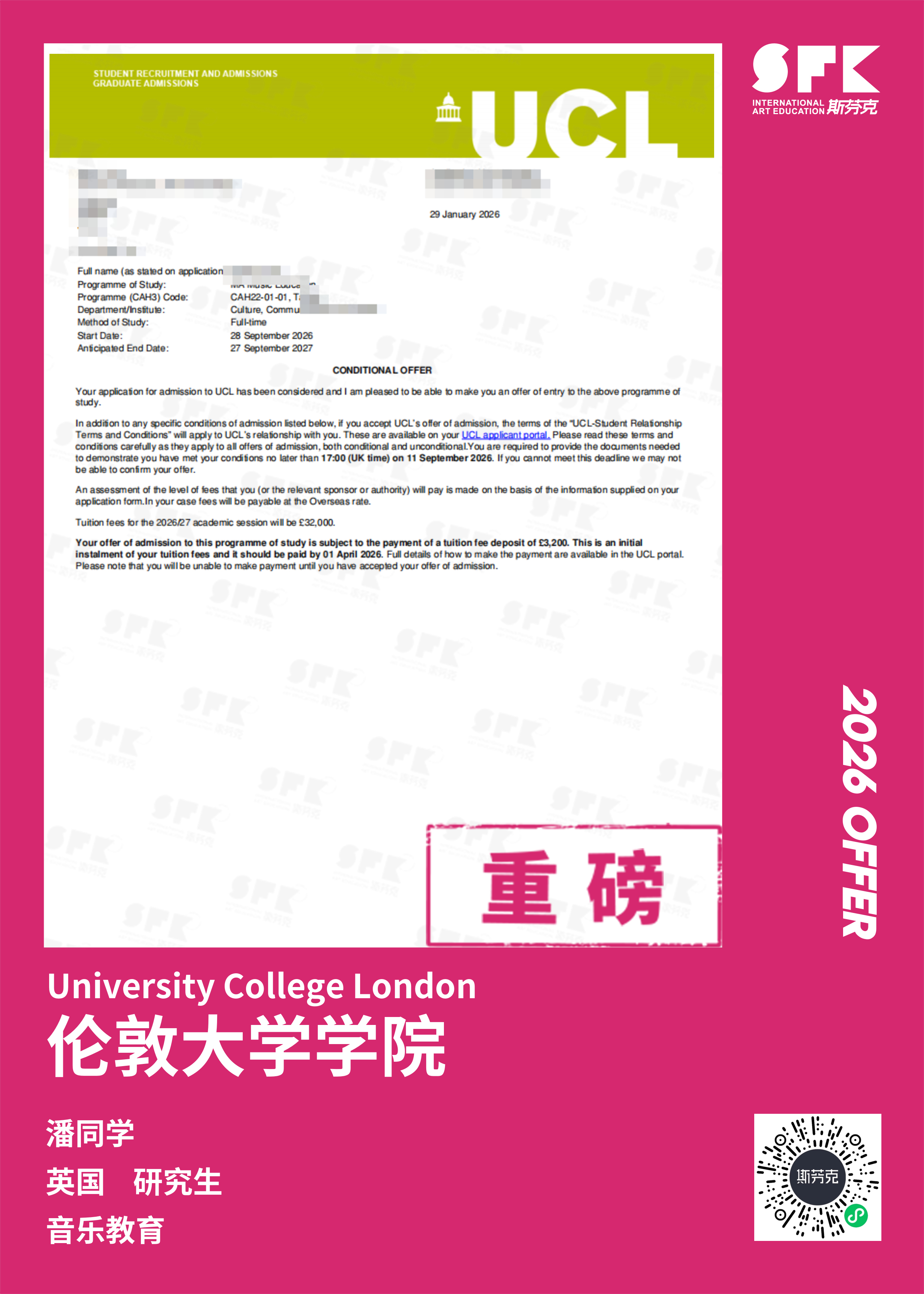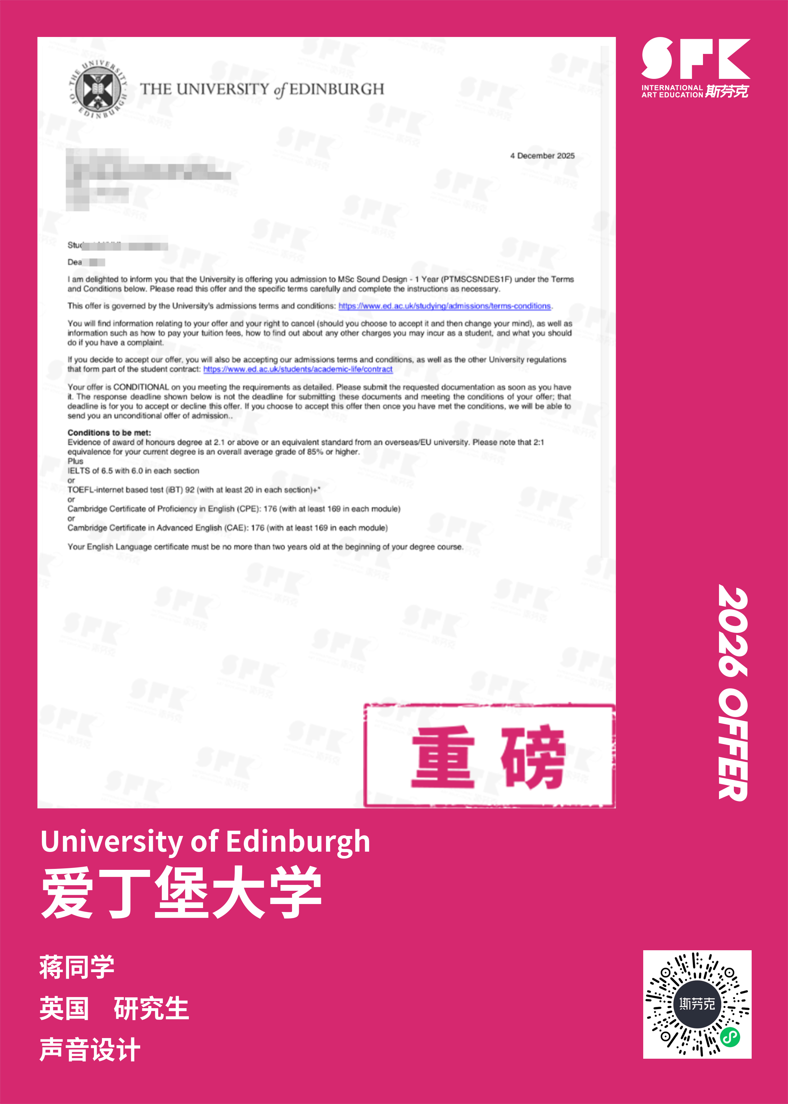 斯芬克音乐已帮助学员获得越来越多的国外音乐院校Offer