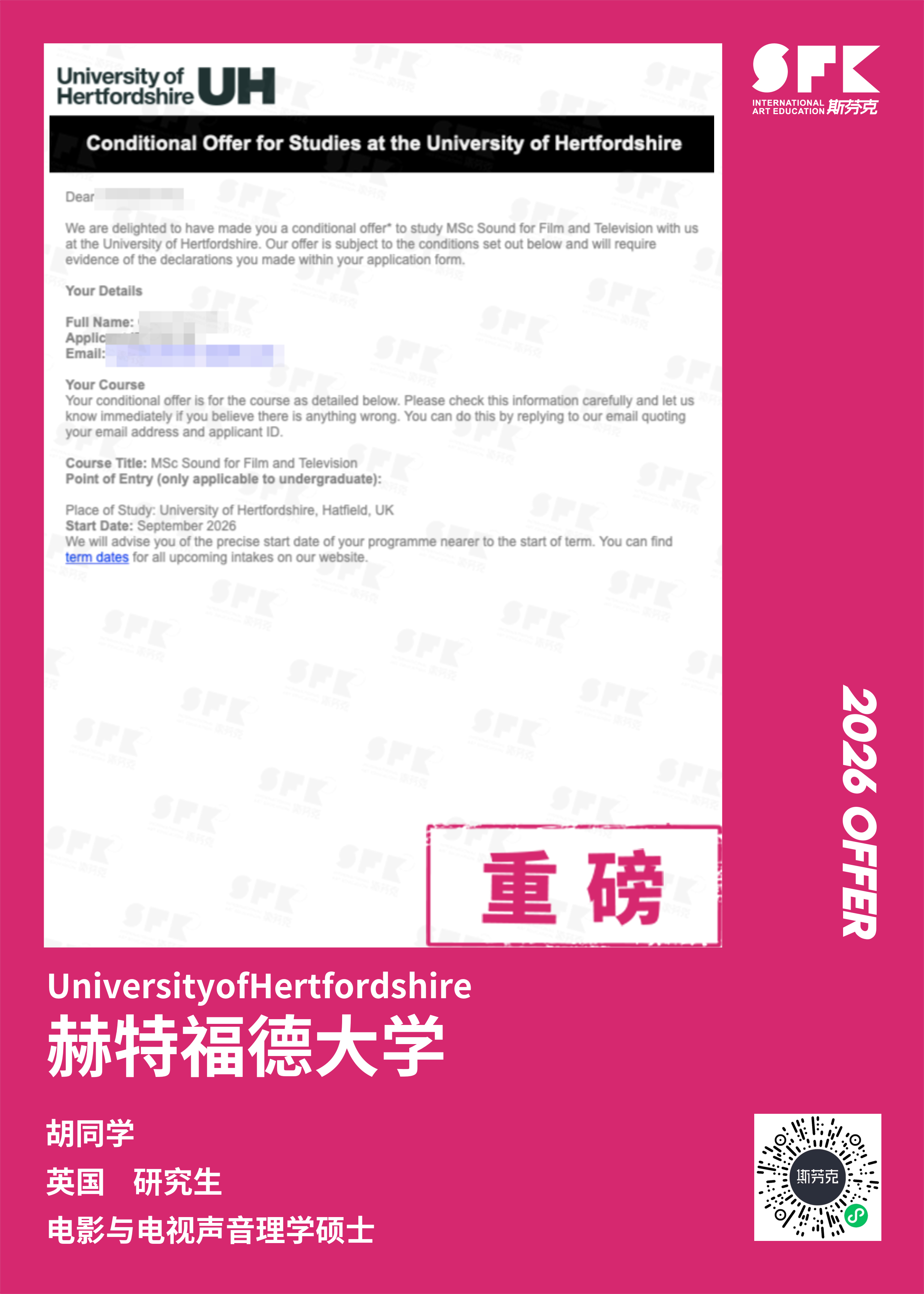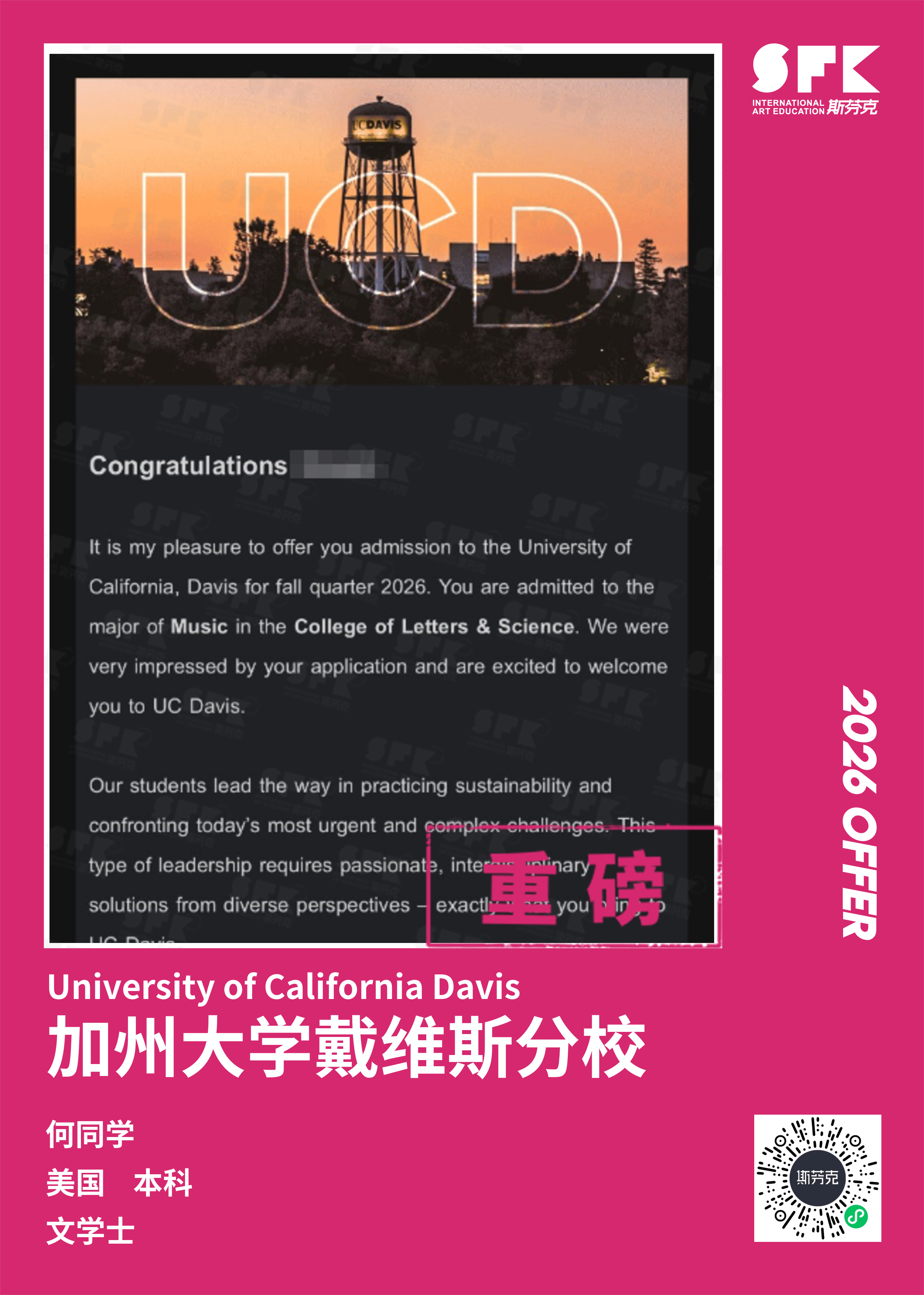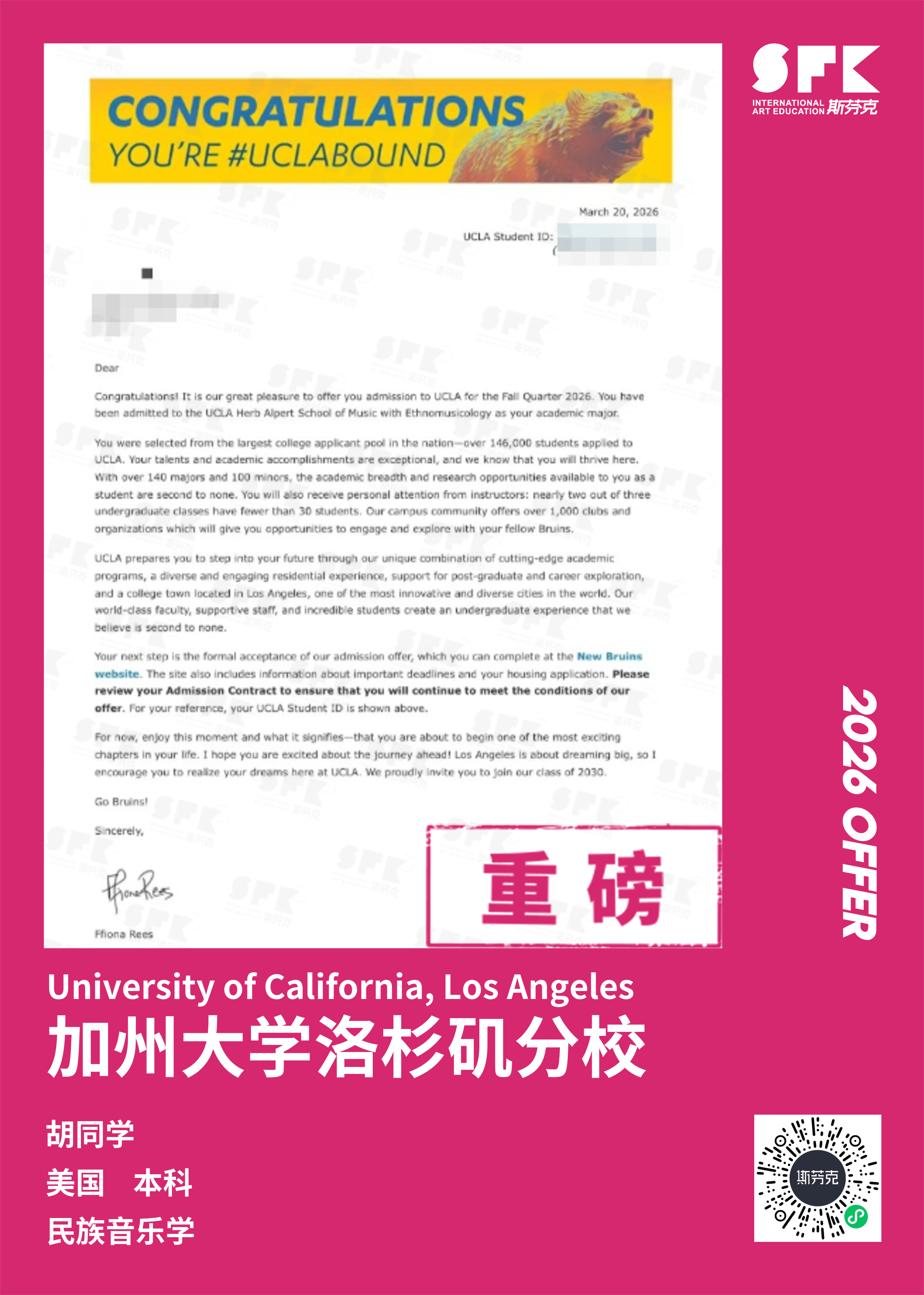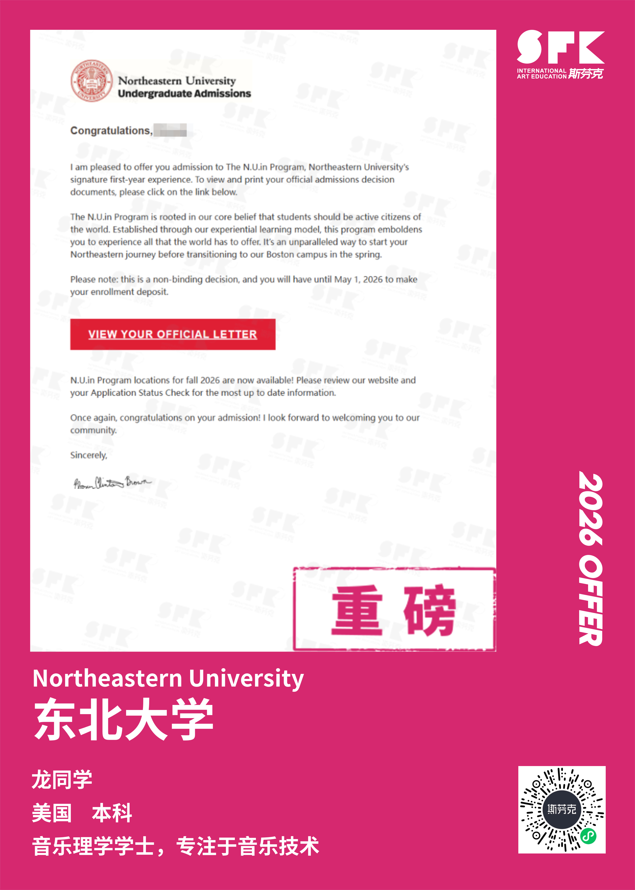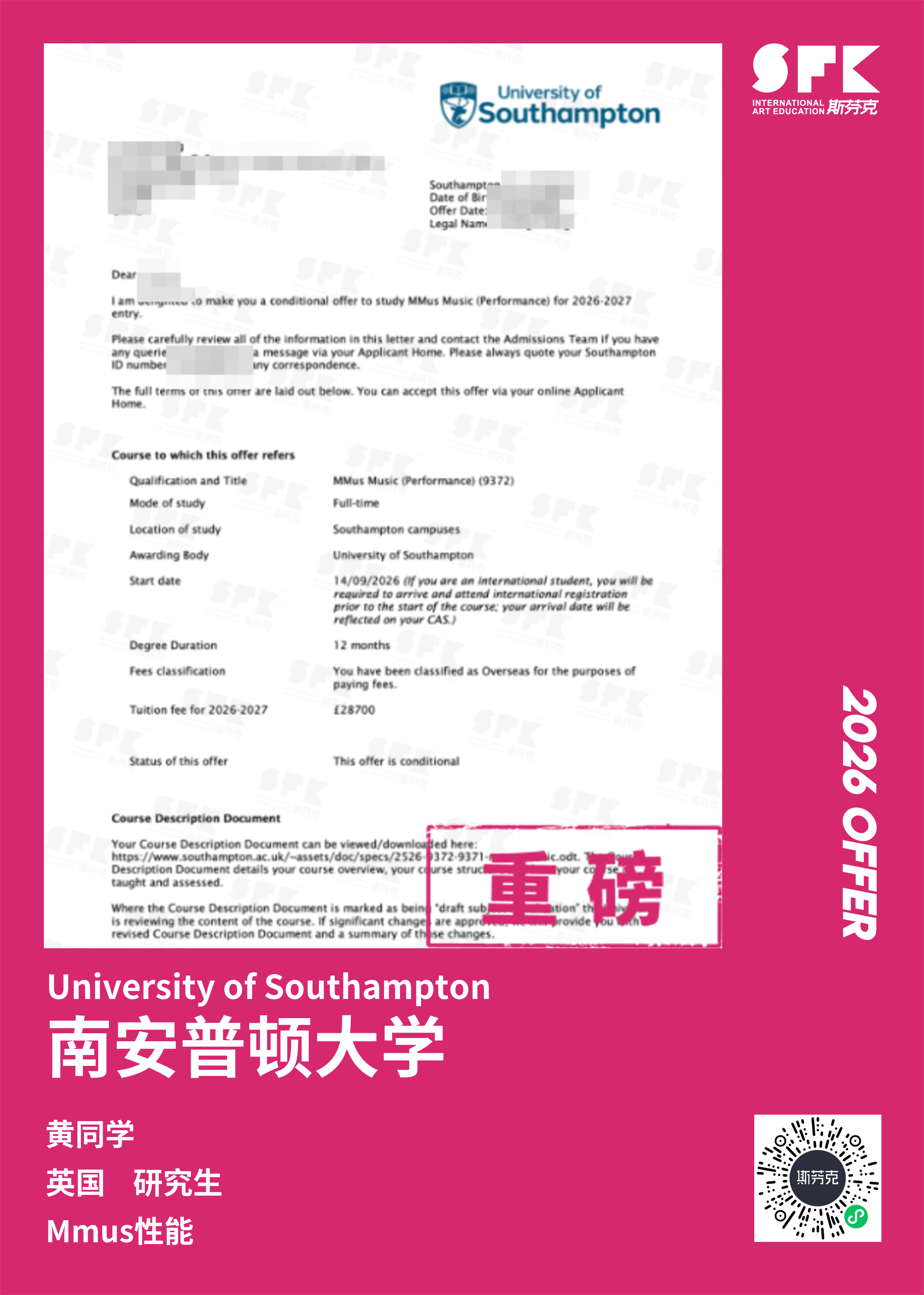 斯芬克音乐已帮助学员获得越来越多的国外音乐院校Offer