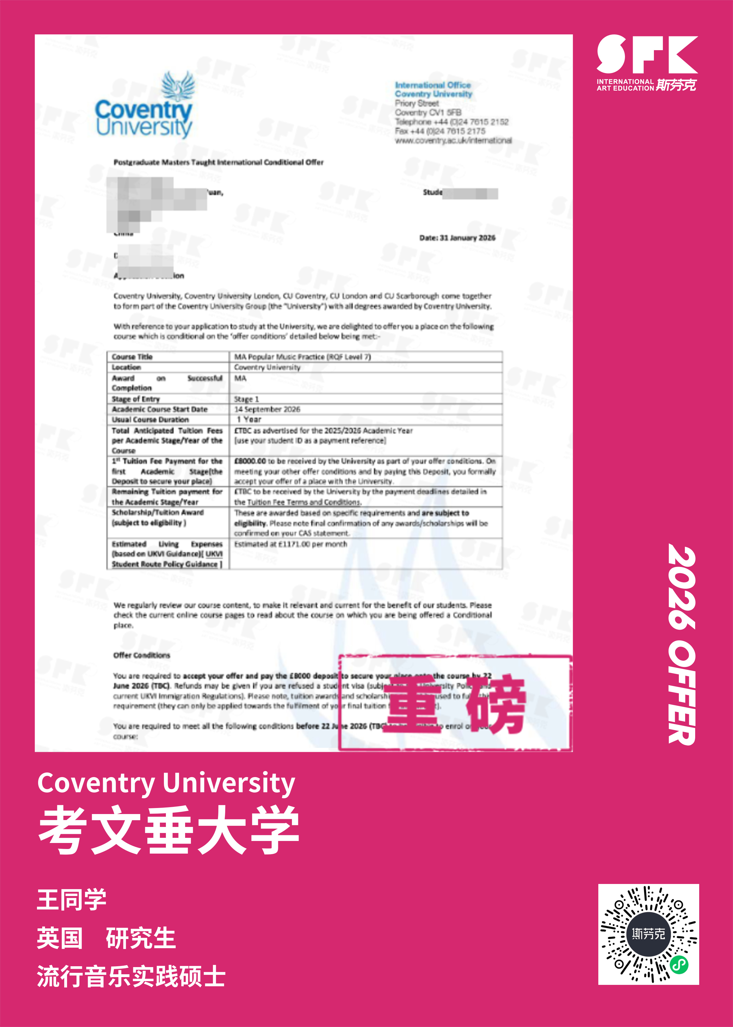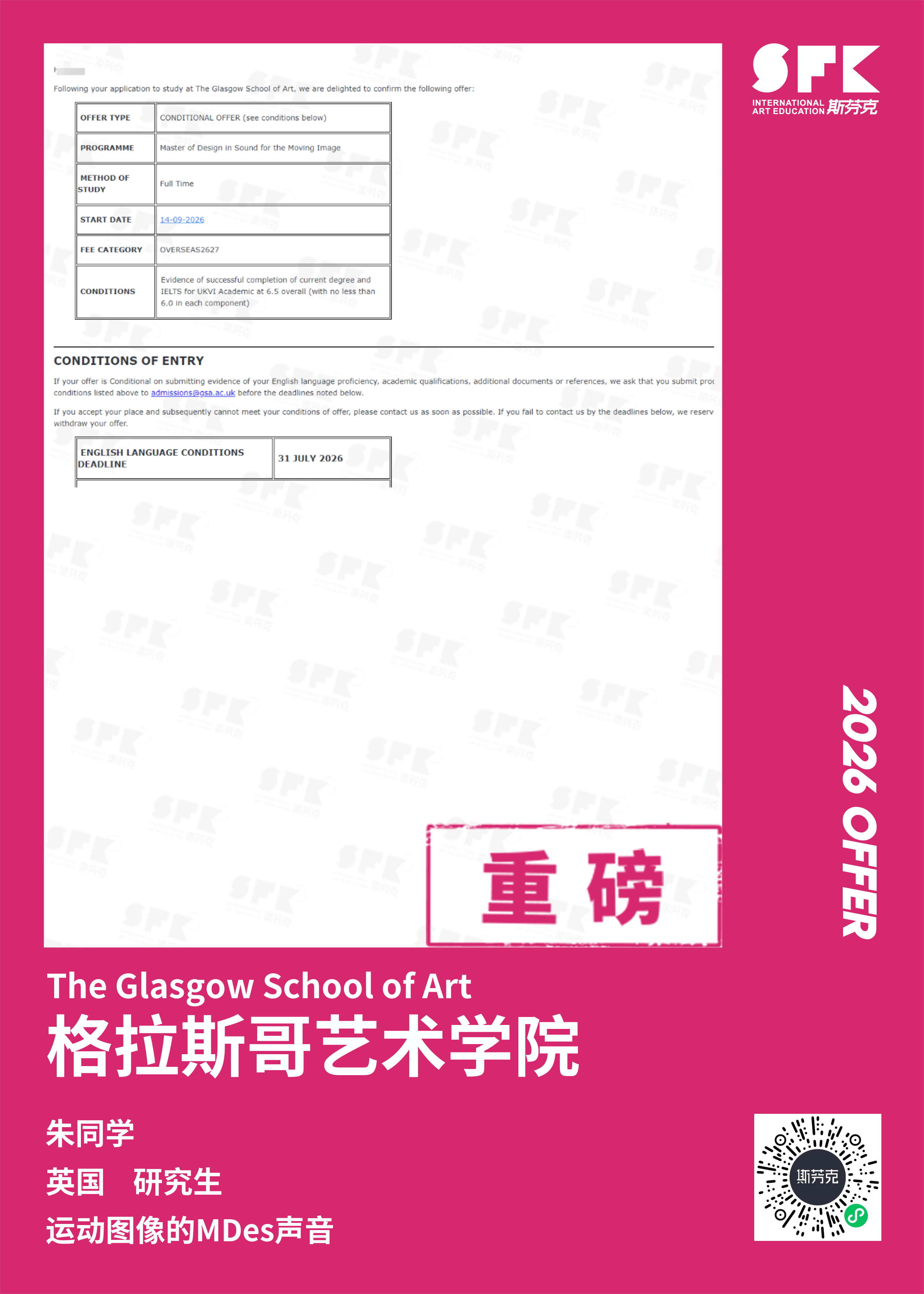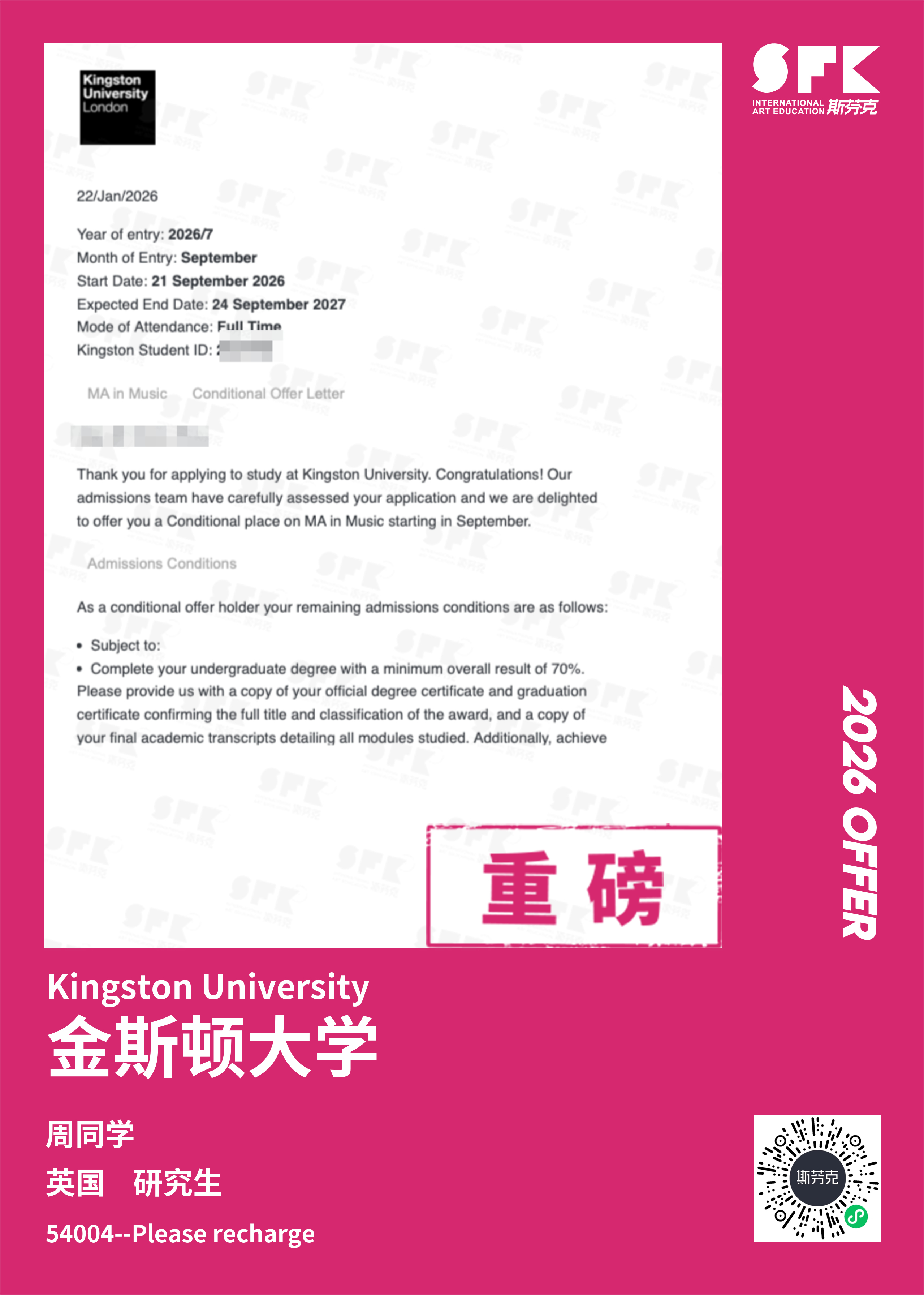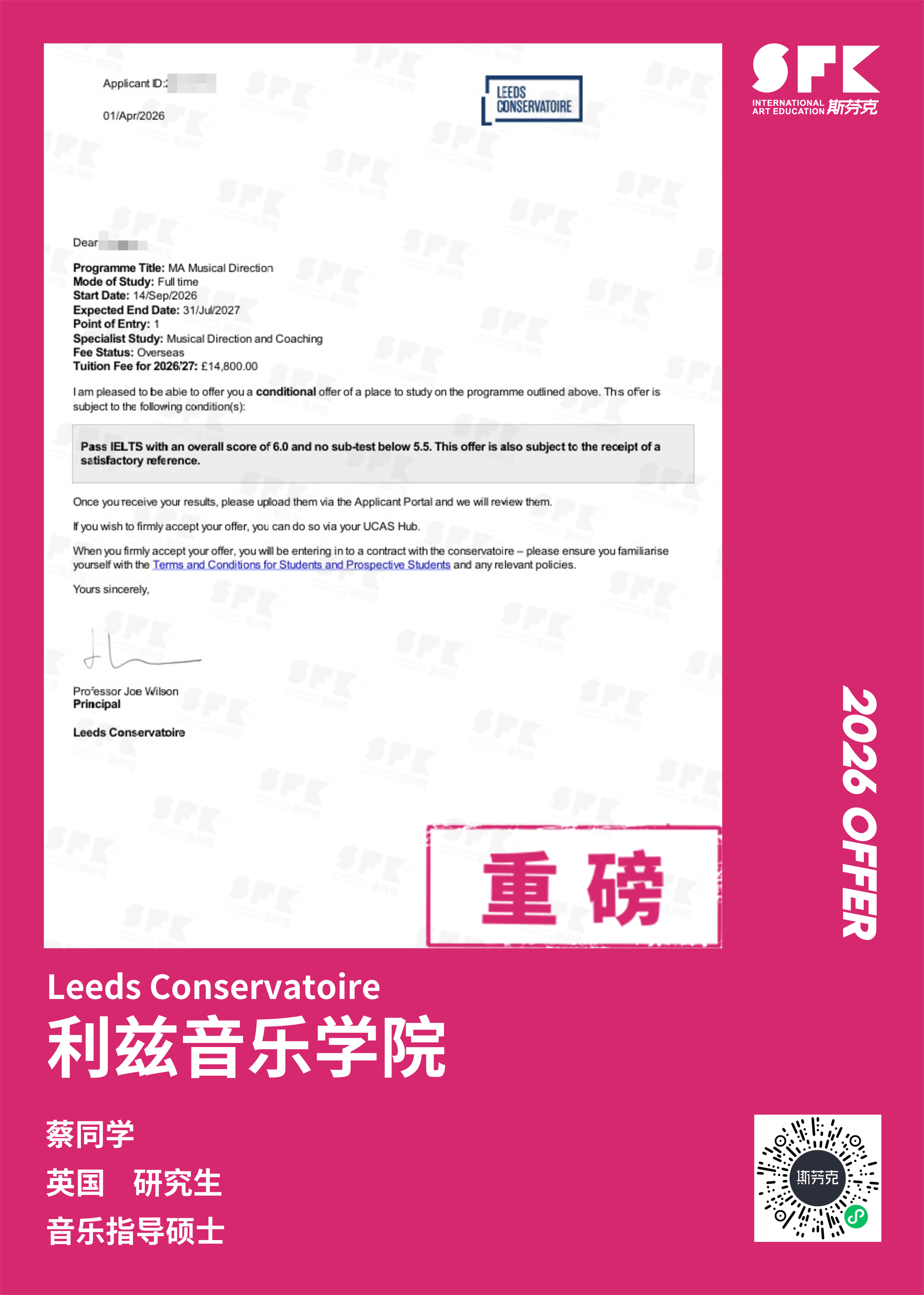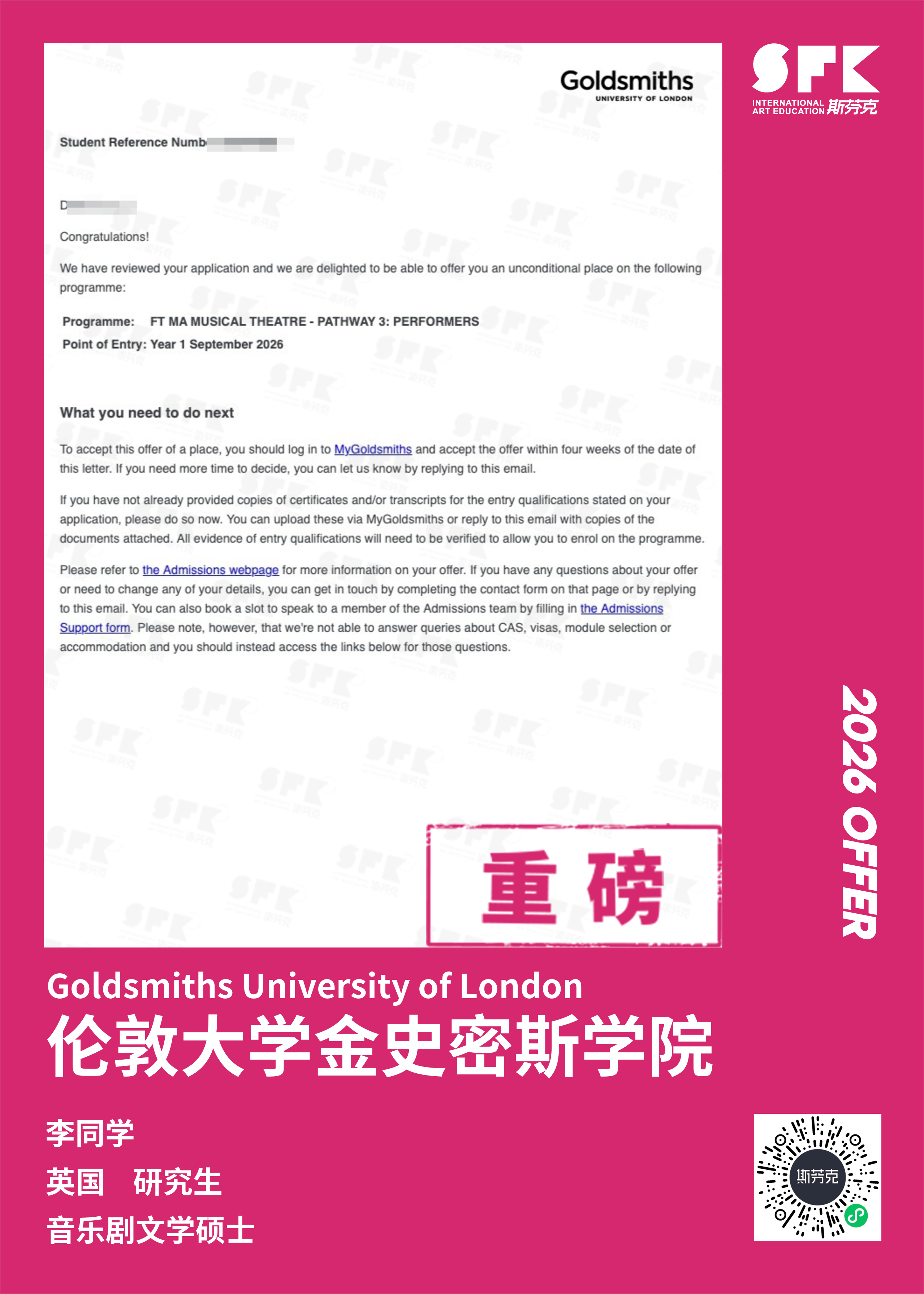 斯芬克音乐已帮助学员获得越来越多的国外音乐院校Offer