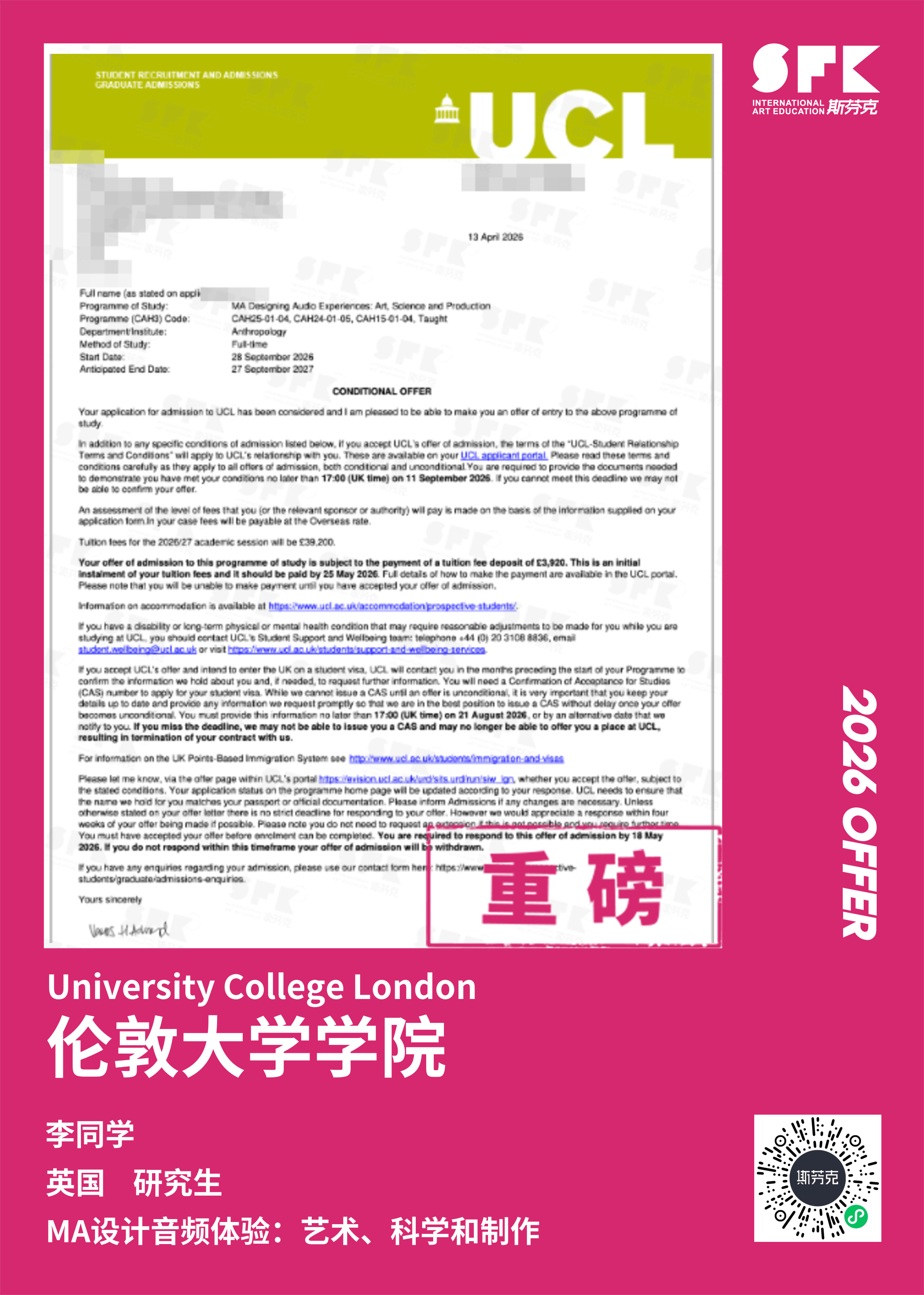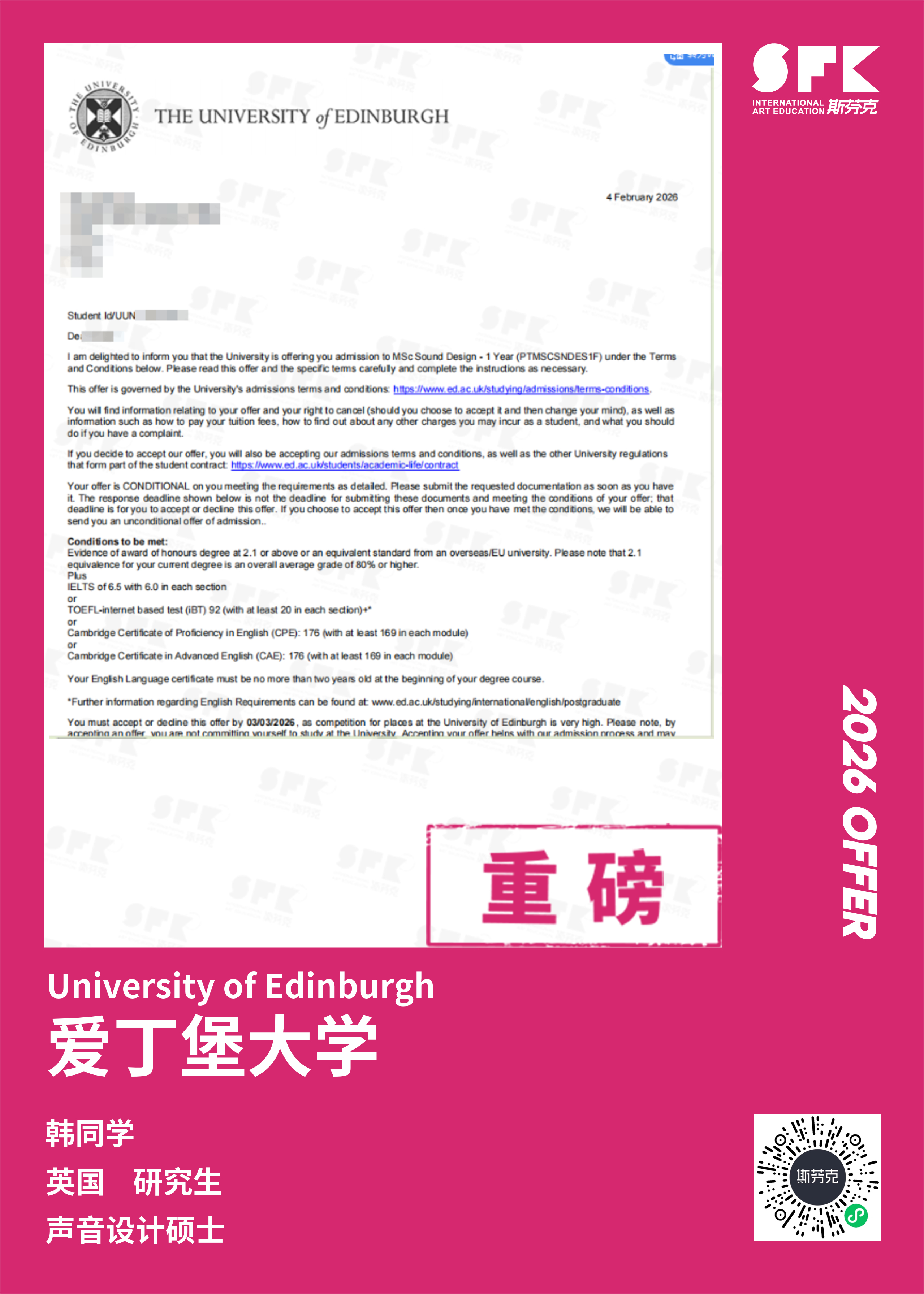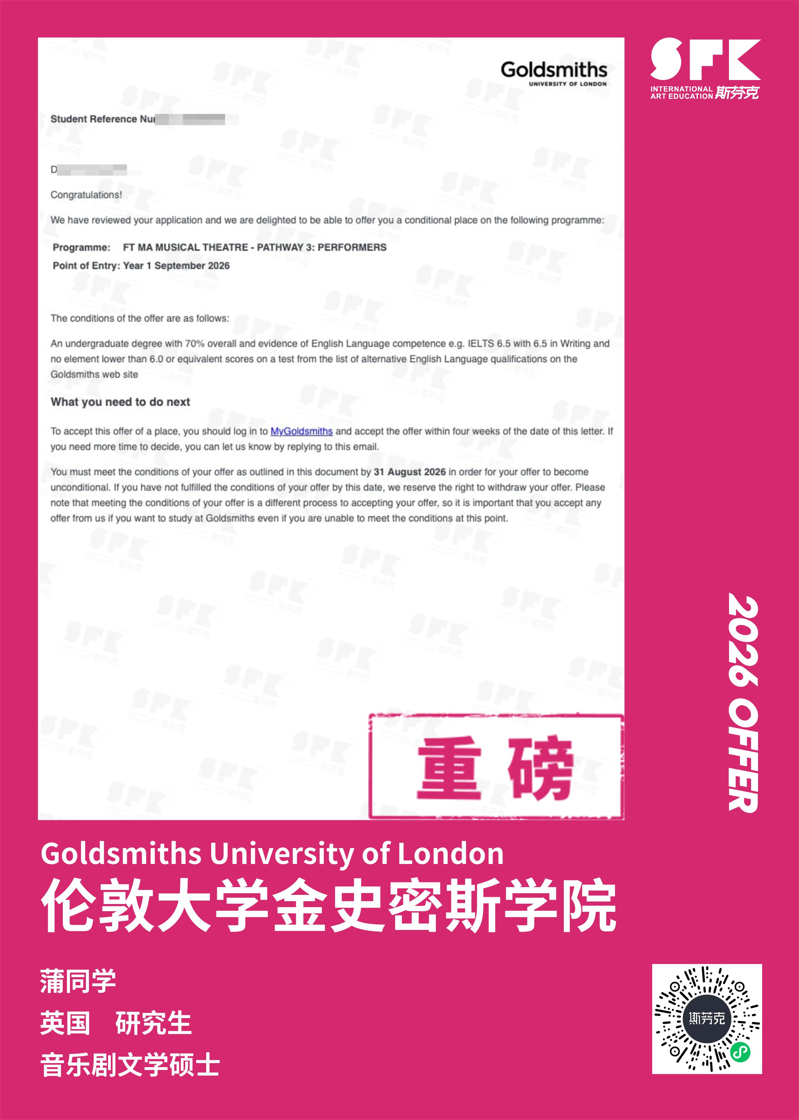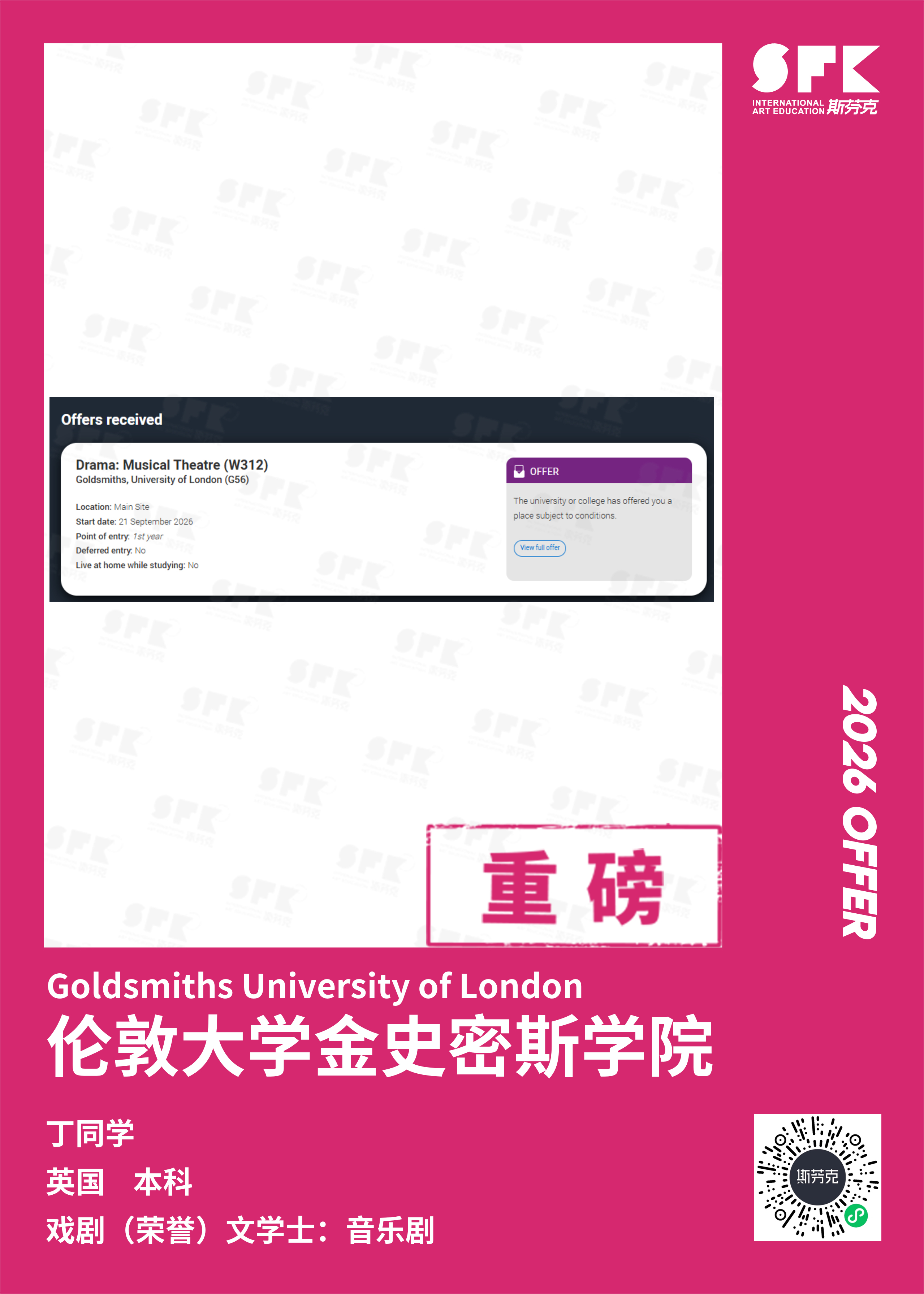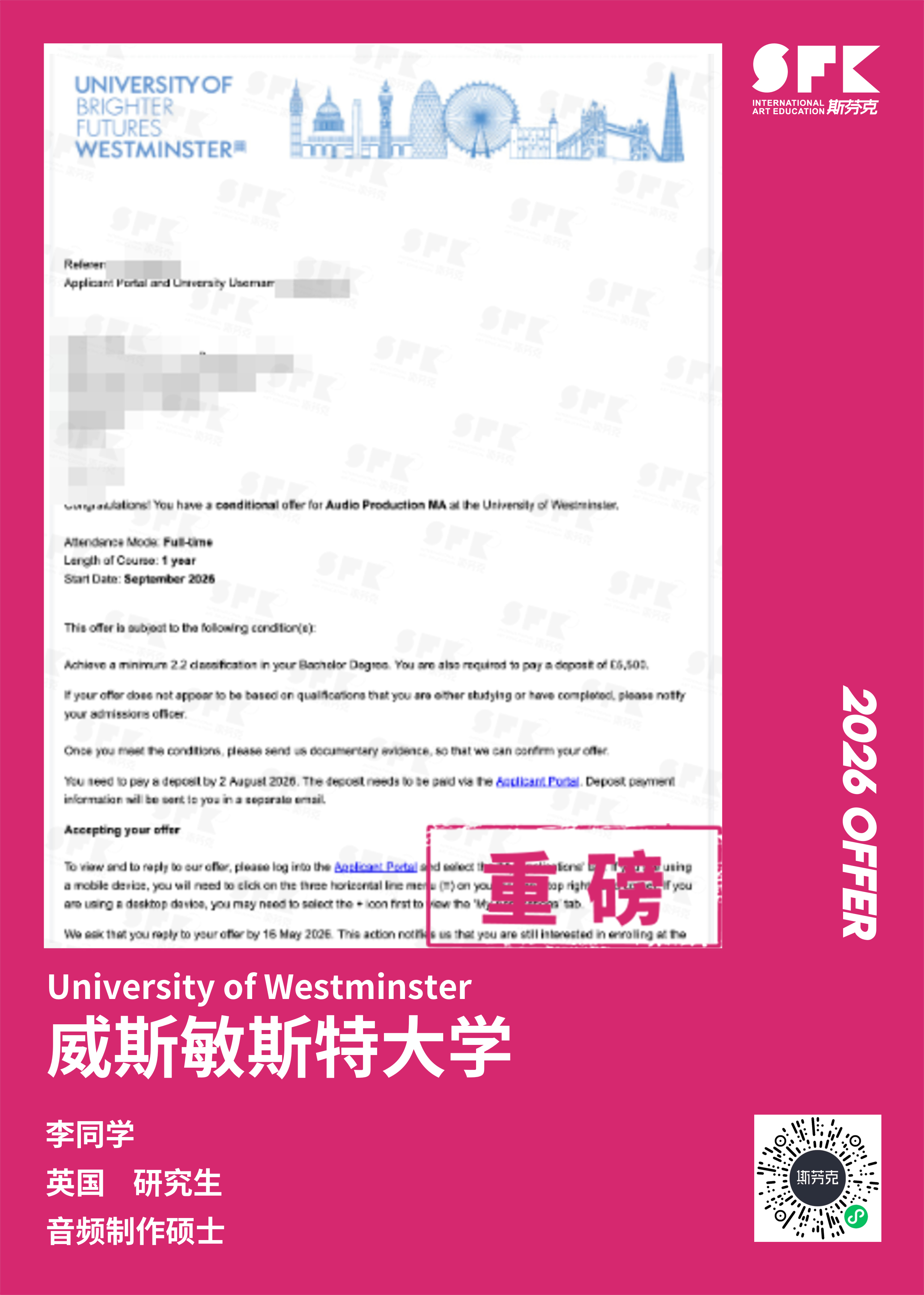 斯芬克音乐已帮助学员获得越来越多的国外音乐院校Offer