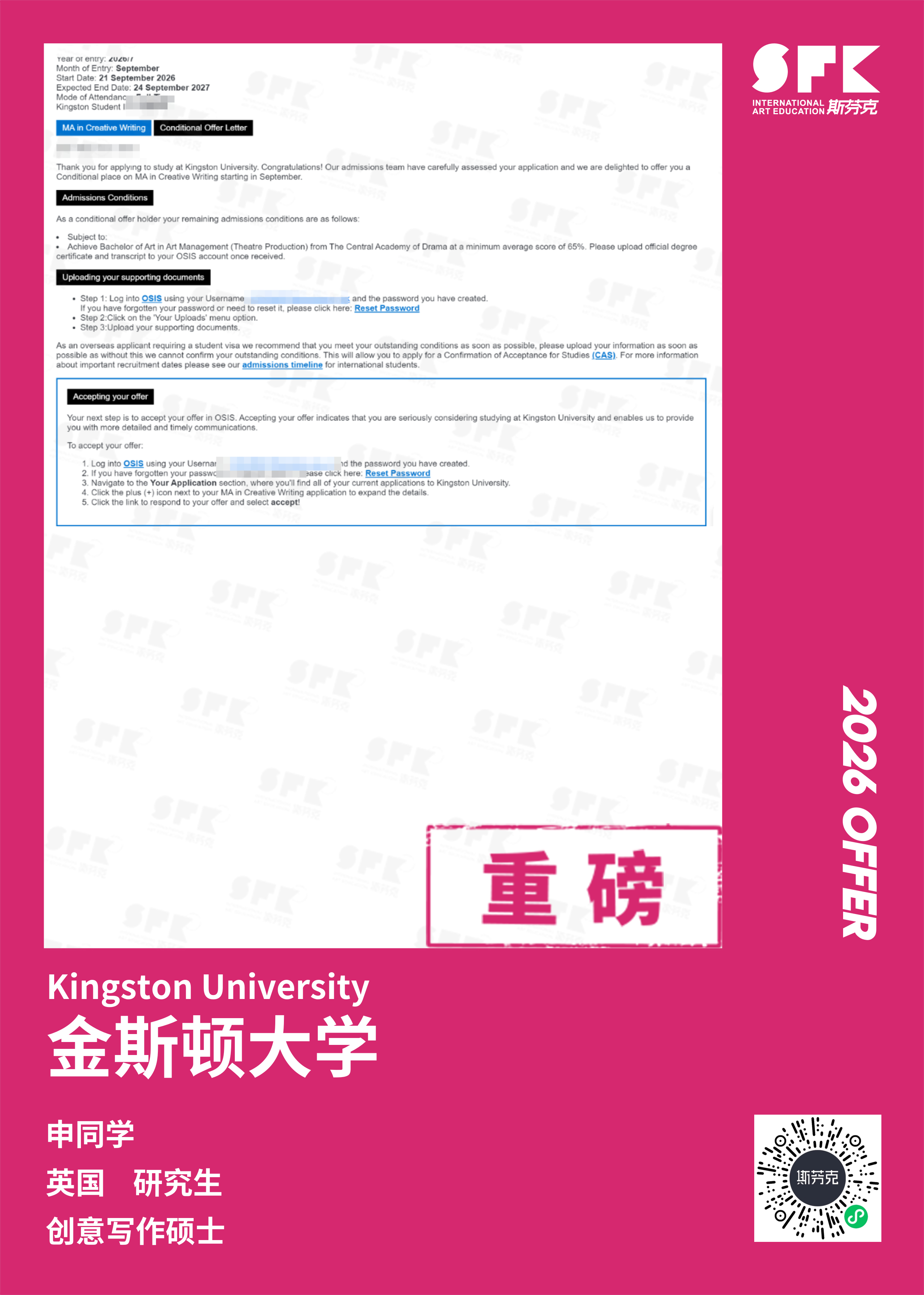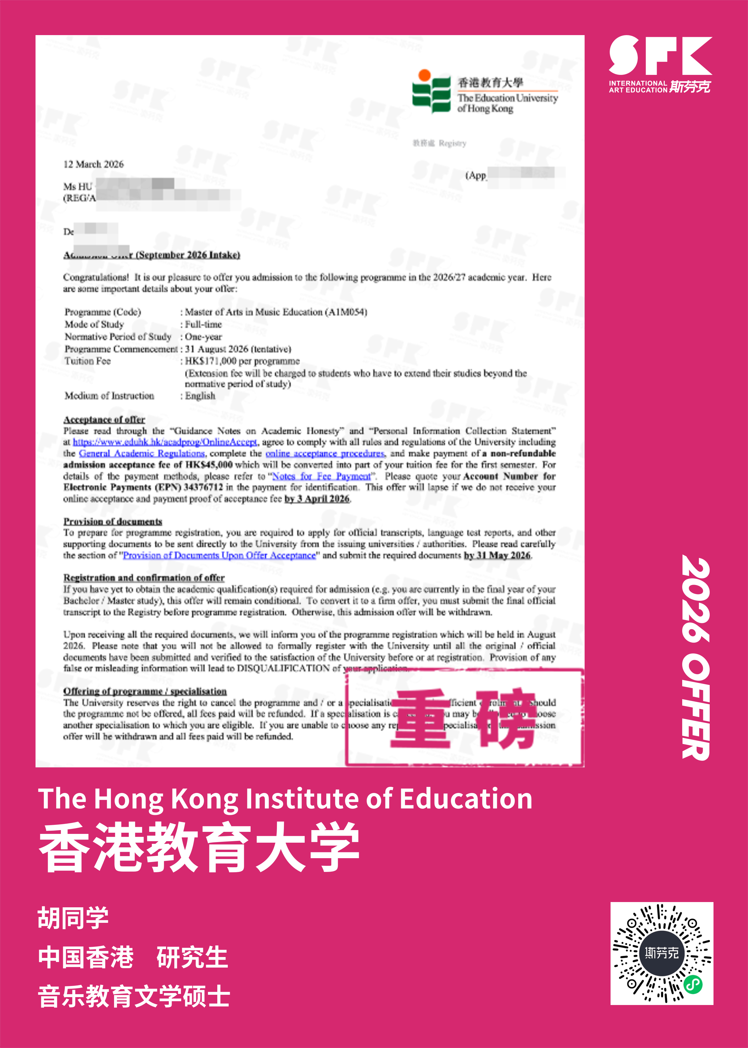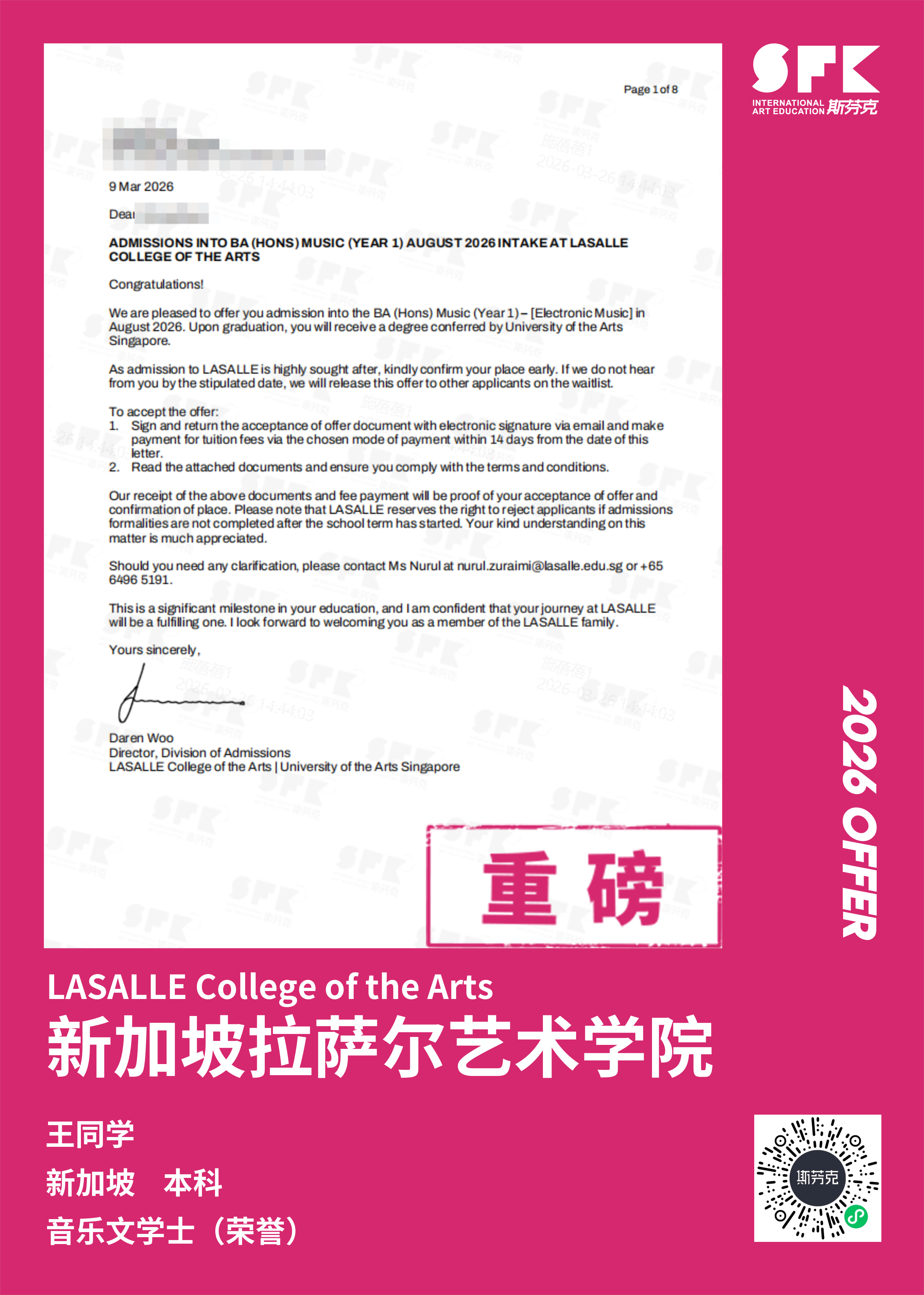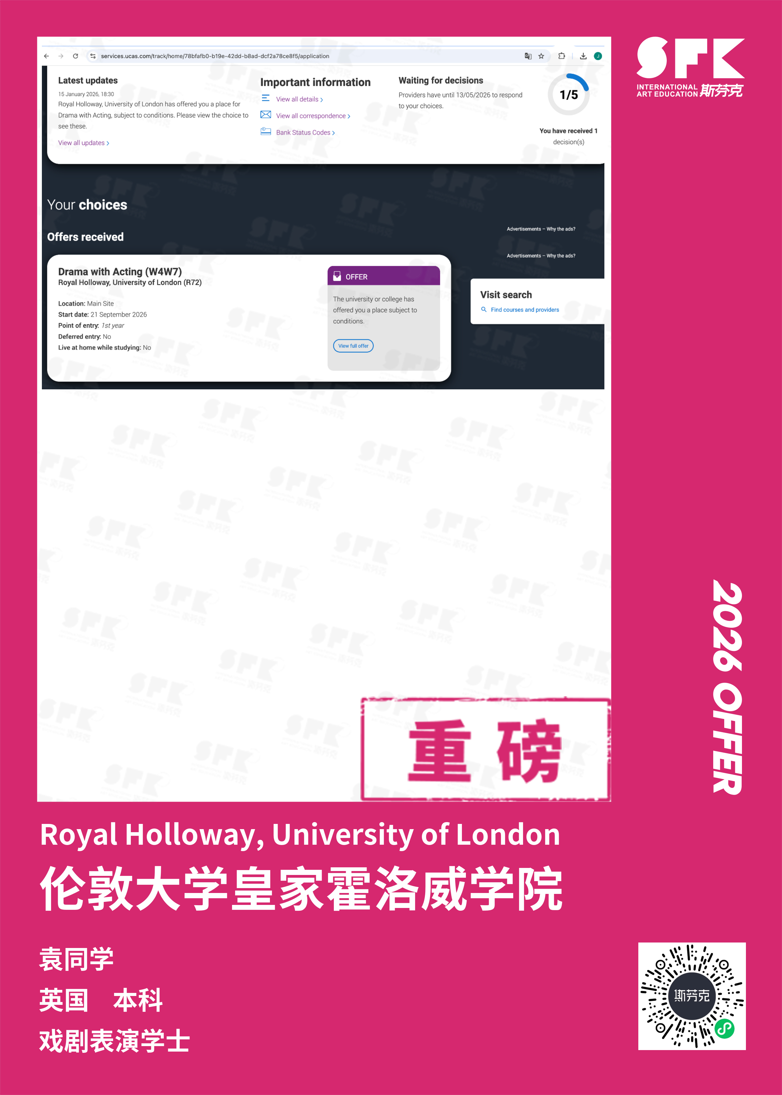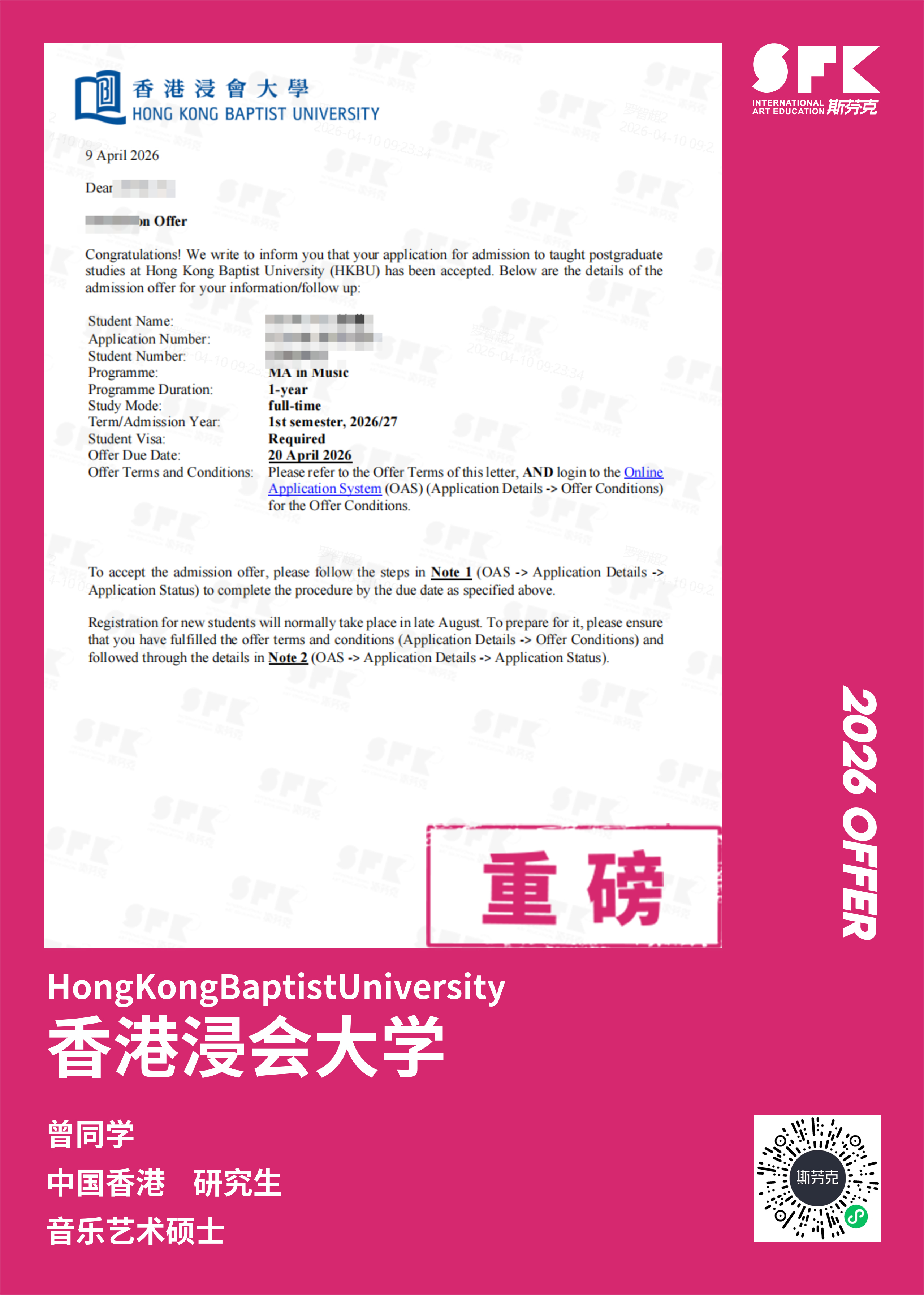 斯芬克音乐已帮助学员获得越来越多的国外音乐院校Offer