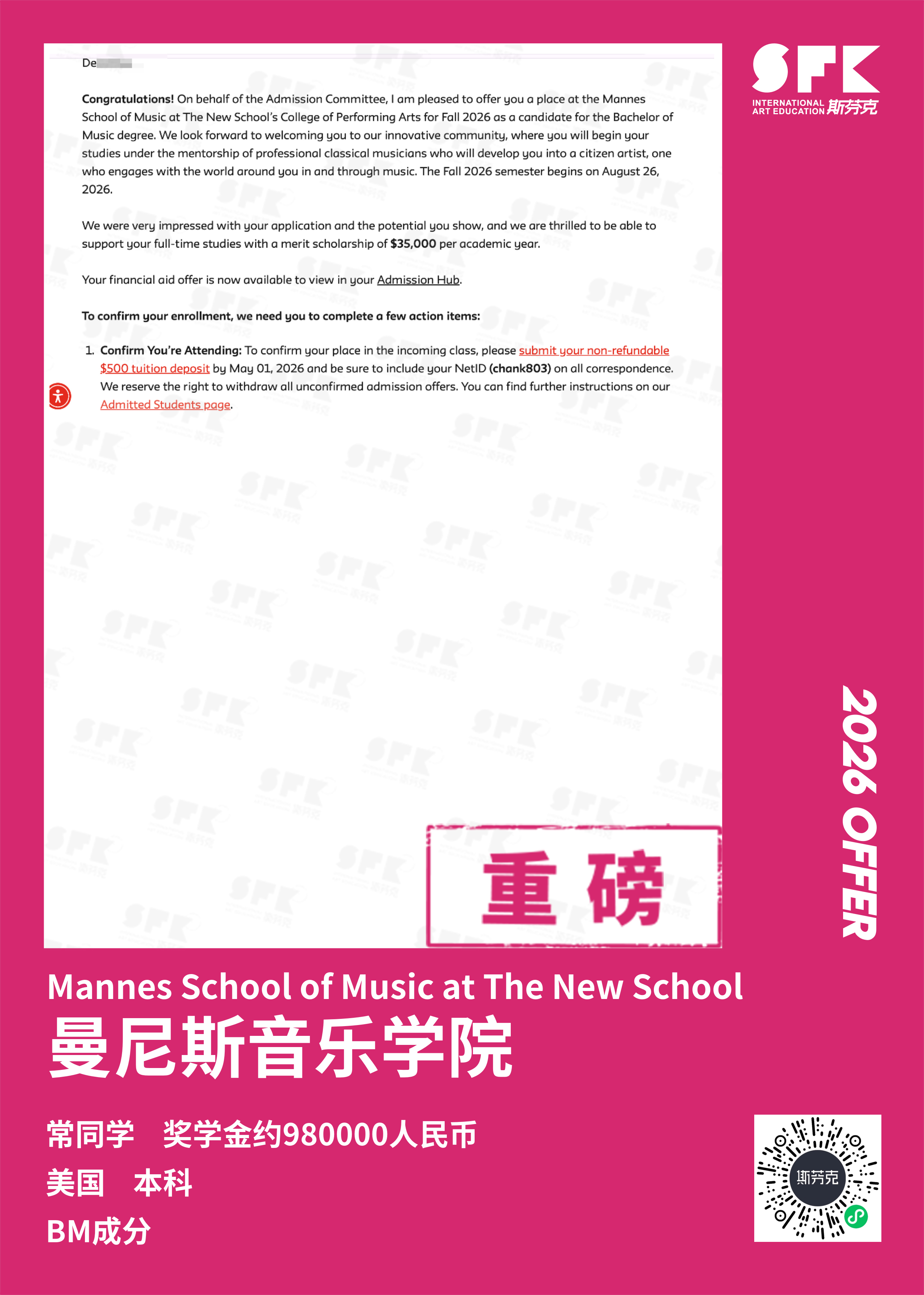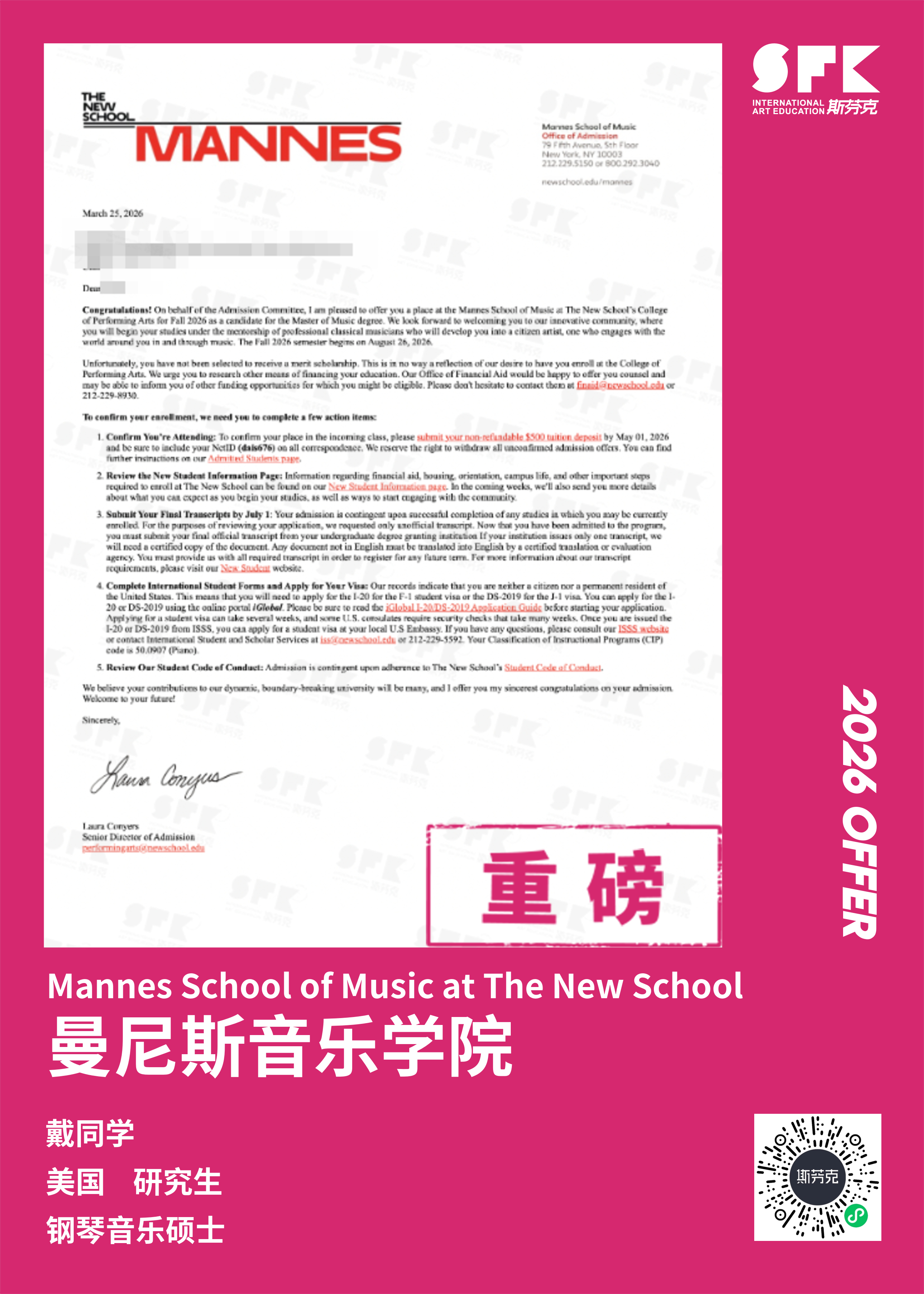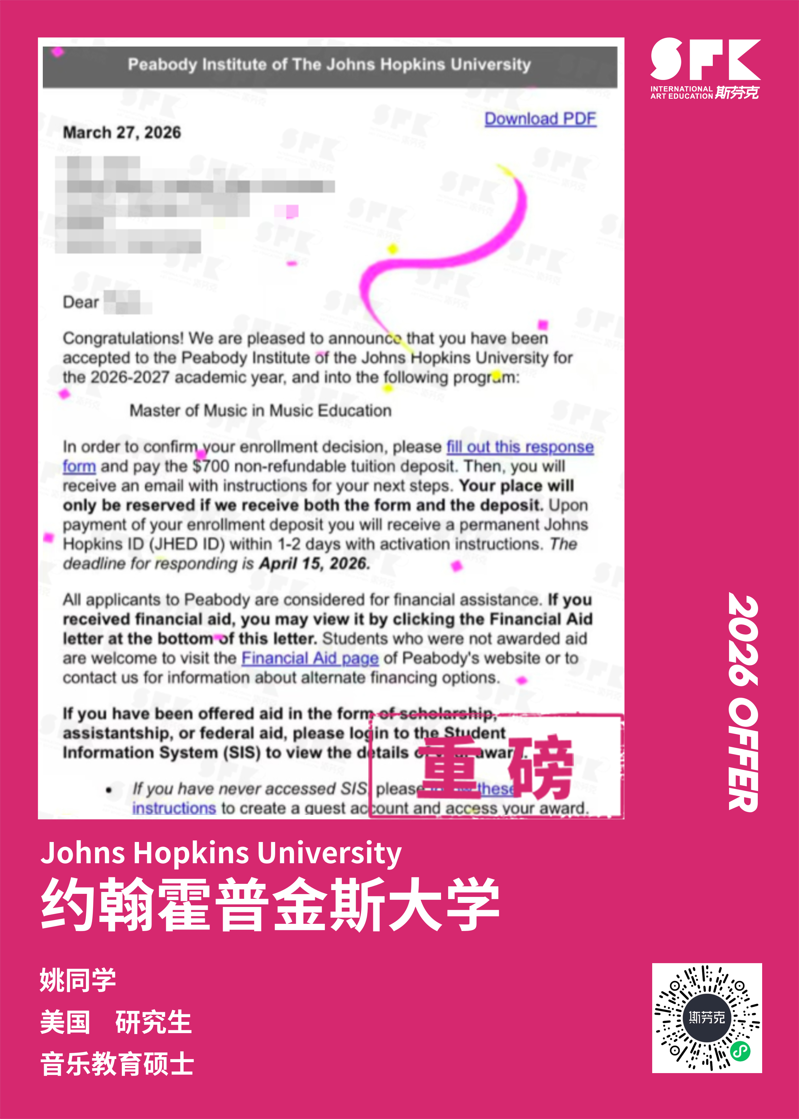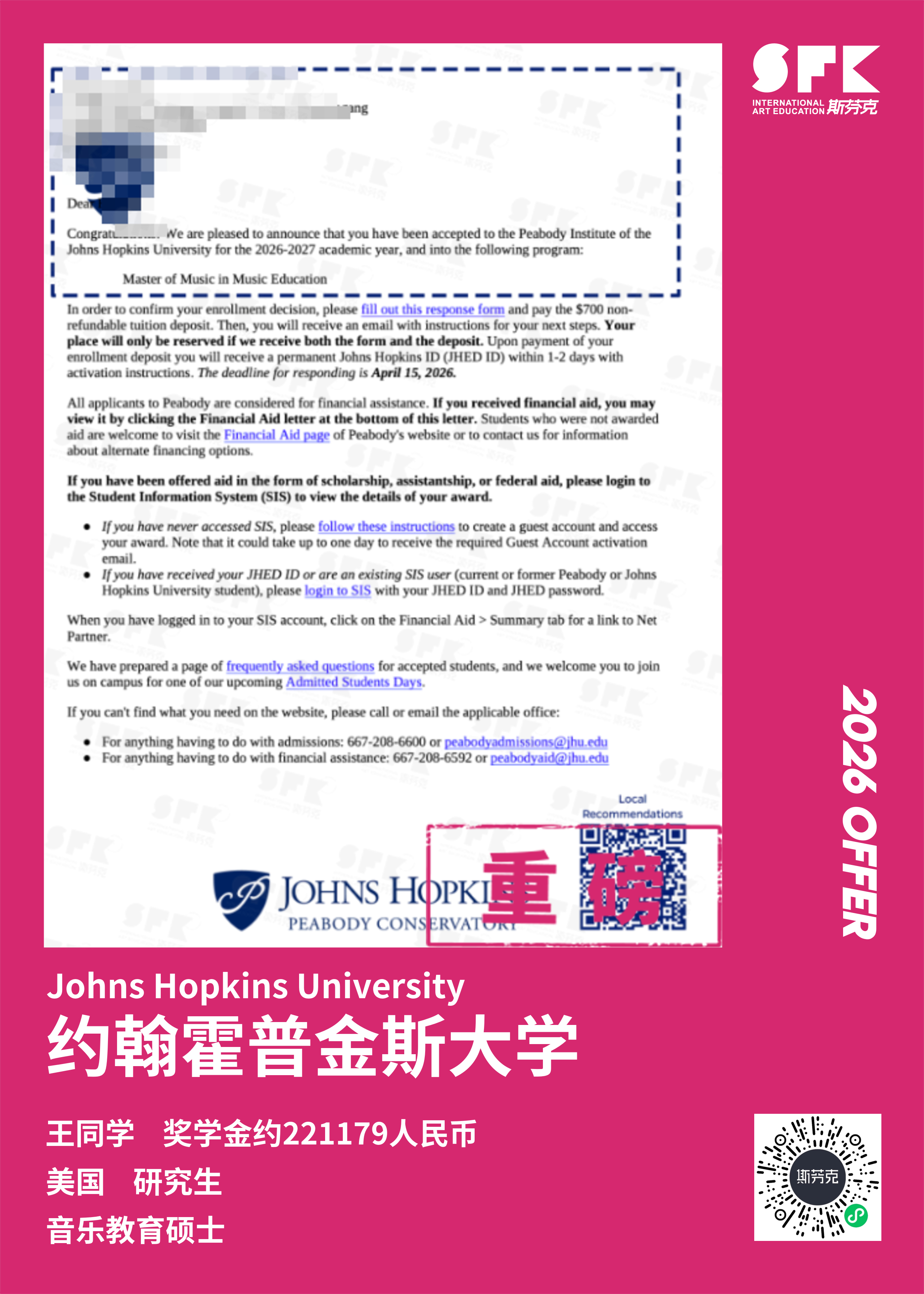 斩获约翰霍普金斯大学、耶鲁大学、西北大学、纽约大学等综合大U音乐学院Offer